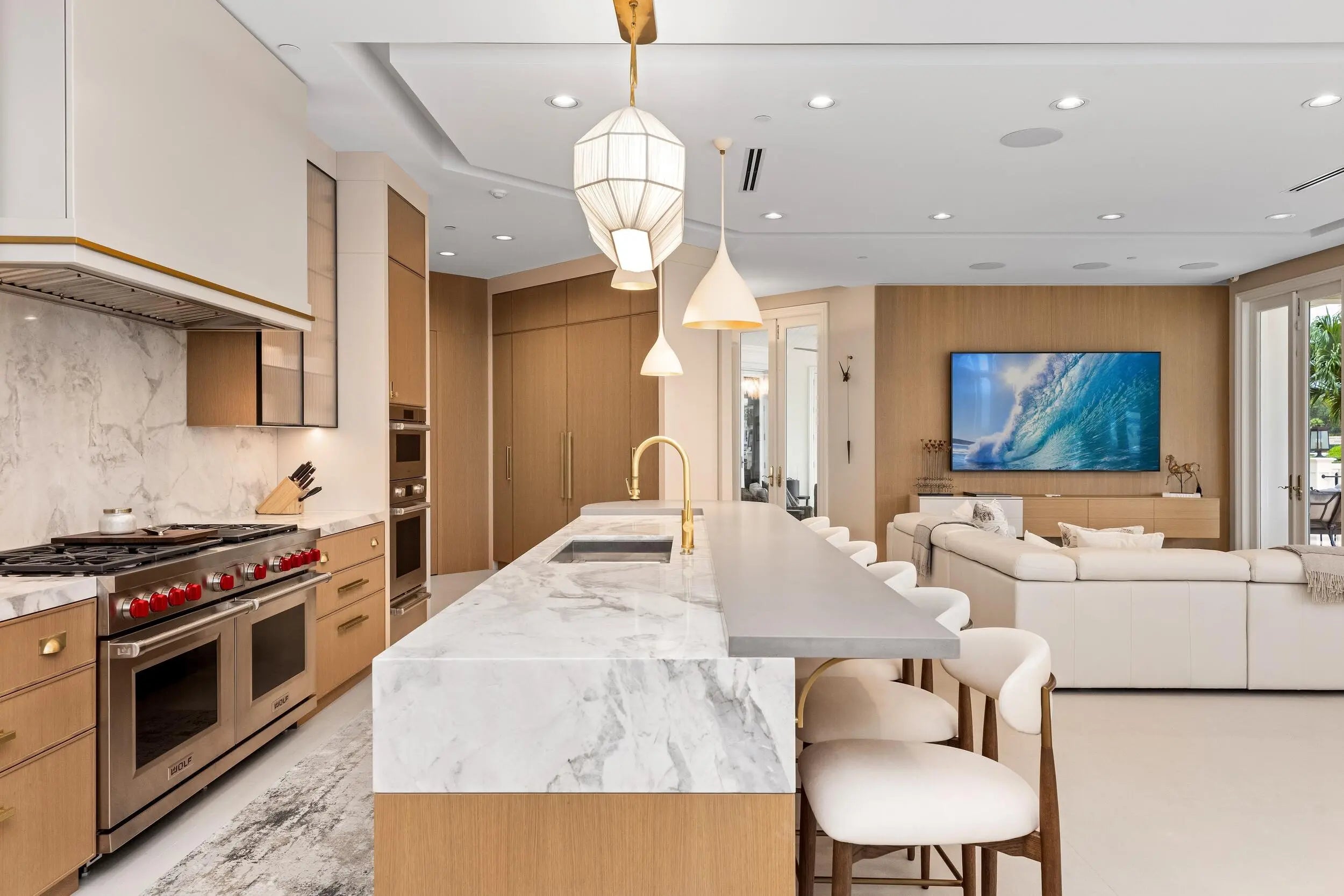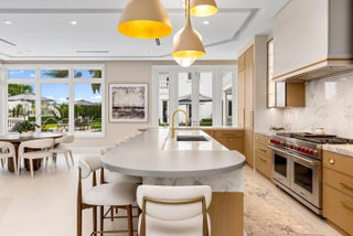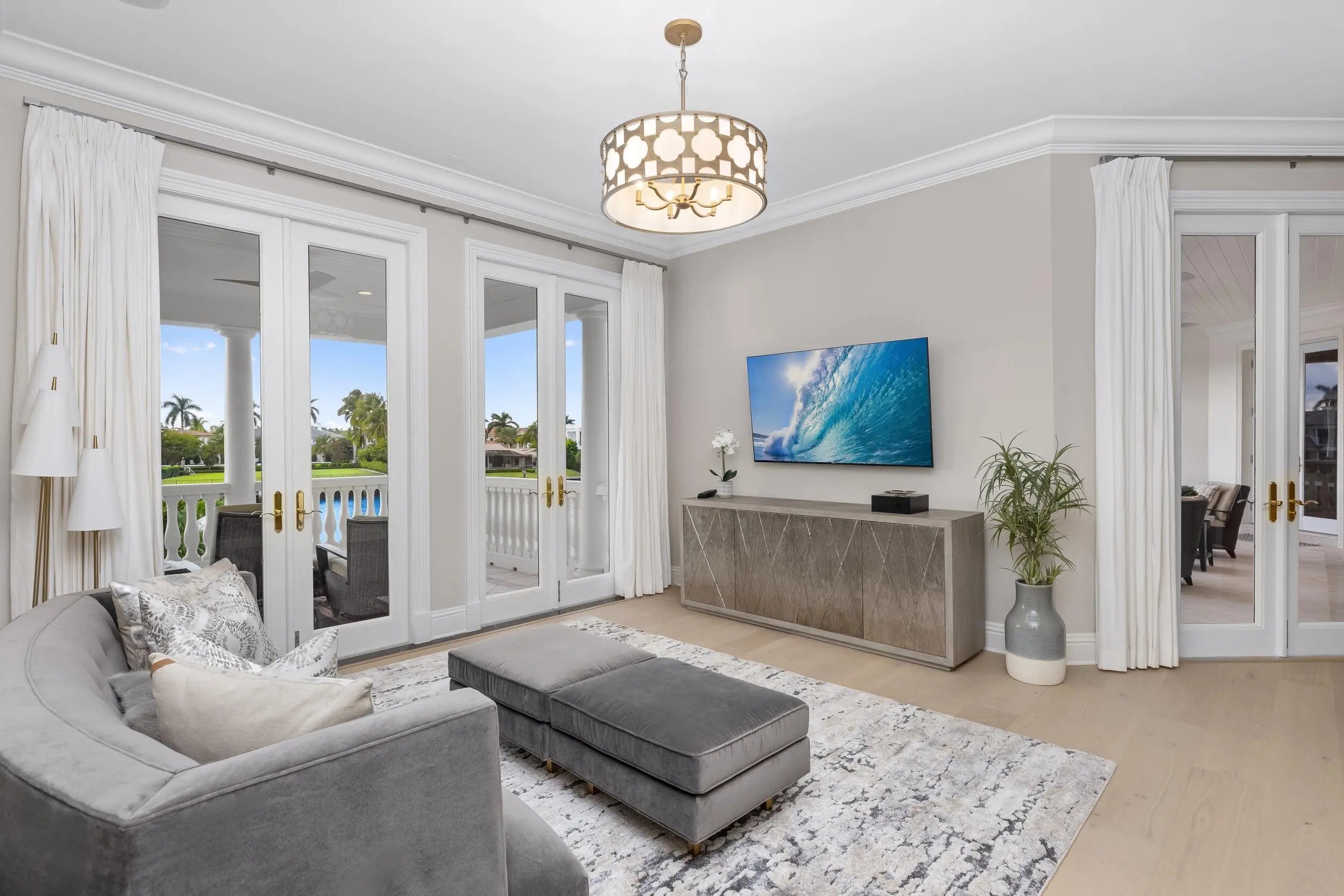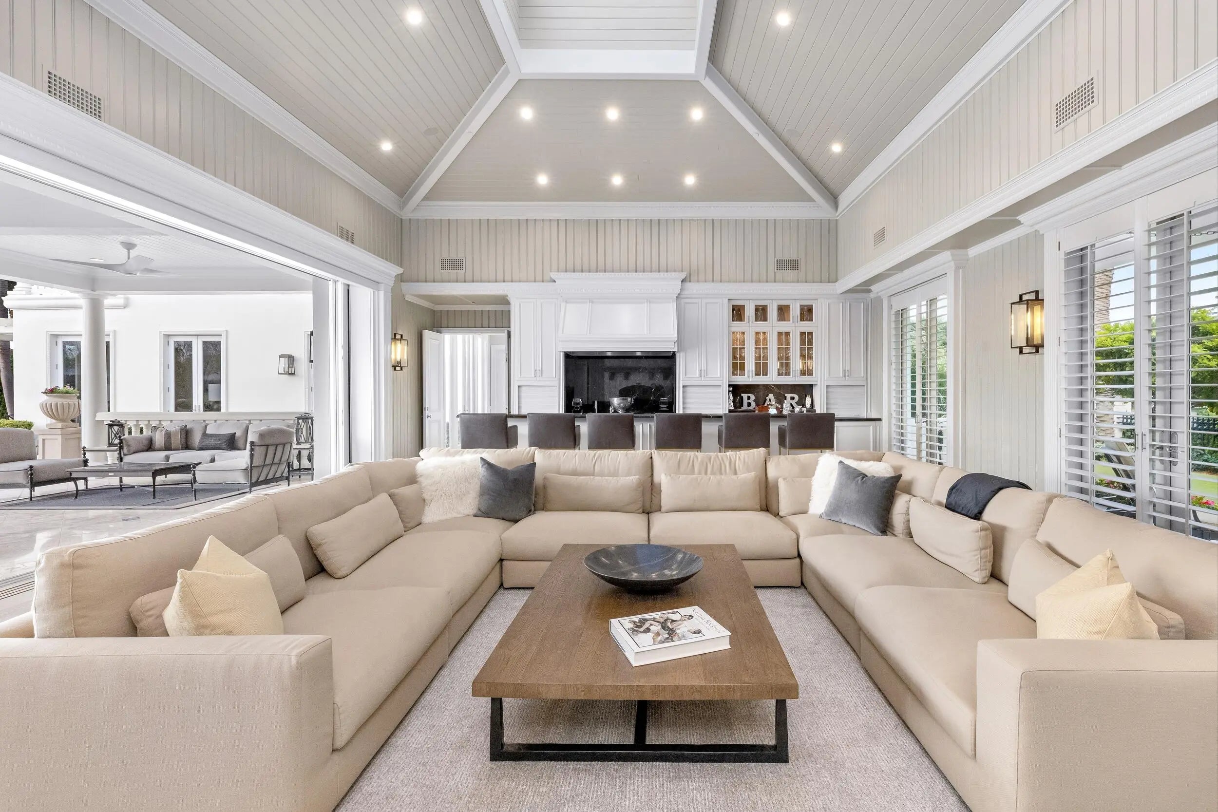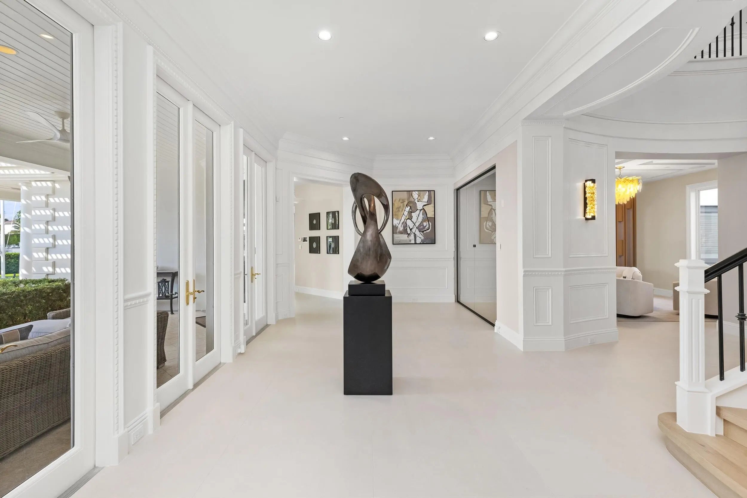 Rarely does an estate of this scale and distinction become available. Positioned on one of the largest Intracoastal lots in Boca Raton's prestigious Estate Section, this fully reimagined waterfront home offers 200 feet of frontage and showcases uncompromising quality, with exceptional materials and finishes selected throughout. Behind private gates, this expansive compound offers more than 12,000 square feet of refined interiors and over 17,000 total square feet across eight bedrooms, thoughtfully arranged between the main residence and a separate guest home. The layout is exceptional: the main residence features six beautifully appointed bedrooms, while the guest home includes two additional bedrooms, a full kitchen, a spacious living room, its own private entrance, and even an additiona 1-car garage dedicated to this suite a rare feature that enhances convenience, privacy, and long-term flexibility for guests, staff, or multigenerational living. A dramatic double-height clubroom serves as the architectural centerpiece, seamlessly connecting the main residence to the guest home. With soaring volume, natural light, and gallery-like presence, this grand space allows the property to function as one cohesive estate or as two private living environments depending on preference. At the heart of the home, a waterfront executive office captures serene Intracoastal views and includes a sophisticated adjacent lounge, creating a private, elevated environment ideal for work, meetings, relaxation, or quiet retreat. This wing stands out as one of the home's signature spacespairing functionality with an intimate, luxury atmosphere. From the moment you enter the grounds, the scale of the transformation becomes clear. The exterior has been completely elevated with a full repaint, a brand-new roof including all flat sections, and enhancements to the sea wall. The entire property has been upgraded with pet-friendly turf, lush new landscaping, mature trees, vibrant flower beds, layered plantings, and a serene Zen garden accented by sculptural rock elements. Landscape lighting illuminates every contour of the grounds and trees, while updated sconces, downlighting, and outdoor ceiling fans create a warm, inviting ambiance from sunrise to sunset. Both the main and guest house gates now feature upgraded motors and modernized controls, complementing major mechanical upgrades that include a new whole-home generator with transfer switch, new exterior electrical panels, and a comprehensive outdoor security and sound system. Designed for boating enthusiasts, the waterfront has been dramatically enhanced with a brand-new 200-foot dock and a 24,000-pound boat lift. The pool and spa area has also been elevated with new pool and spa tile, new coping, and upgraded equipment with full smart controls. Outdoor furniture features updated surfaces and all-new cushions, creating a polished, resort-style lounge environment ideal for entertaining or enjoying sunset views along the Intracoastal. Inside, both the main residence and guest home have undergone a sweeping transformation. New wooden and tile flooring, freshly painted rooms and trim, modern lighting, and a curated interior palette give the home a crisp, sophisticated aesthetic. Significant mechanical improvements include the replacement of ten of the twelve A/C units and handlers, installation of new wireless routers, and a fully integrated Control4 smart home system managing lighting, audio, video, security, thermostats, gates, and garage doors. Every switch, outlet, and wall covering has been replaced, and all in-ceiling lighting has been transitioned to high-efficiency LEDs. The main kitchen, redesigned by NEF Designs, showcases bespoke cabinetry, newly crafted counters, upgraded lighting, and premium Sub-Zero and Wolf appliancesincluding four additional refrigeration drawers. Two newly built, temperature-controlled wine roomsone featuring a lounge seating areaadd architectural drama and serve as sophisticated spaces for entertaining or showcasing curated collections. The bathrooms throughout the estate have been updated with new or modernized vanities and sleek plumbing fixtures, bringing a fresh, elevated feel to every room. The five-car garage servicing the main home has been enhanced with new cabinetry, improved surfaces, and new motors on all doors, further complemented by the additional 1-car garage at the guest home, bringing the total to six garages across the estate. Additional upgrades include new dining room windows and updated custom shade systems throughout, tying the interiors together with a polished, unified aesthetic. With its comprehensive transformation, thoughtful layout, fully furnished interiors, state-of-the-art smart home technology, resort-style outdoor living, and premier Intracoastal presence, this estate stands as one of Boca Raton's most exceptional turnkey opportunities. Every detail has been curated to deliver an effortless, elevated lifestylemaking this waterfront compound a true modern masterpiece.
