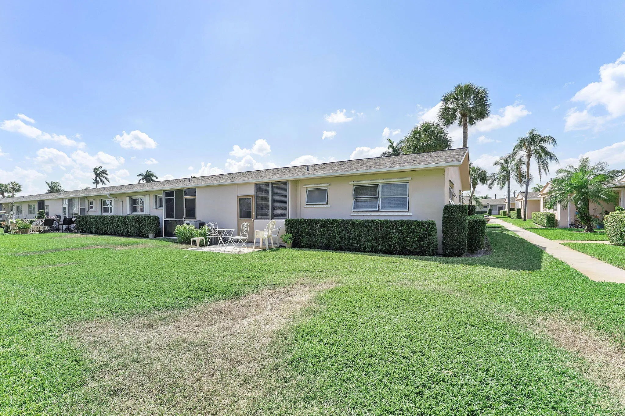 ** SELLER IS MOTIVATED** ** OPEN TO ALL OFFERS** Discover the potential of this spacious 2-bedroom, 2-bathroom corner villa located in a highly desirable 55+ community with resort-style amenities. The interior features a bright and open living area filled with natural light, flowing effortlessly into a large dining space perfect for entertaining. The cozy kitchen offers ample cabinetry and a layout ready for your personal reimagining. Retreat to the generously sized primary suite, complete with an en-suite bath, while a second full bathroom ensures comfort for guests. Enjoy your morning coffee on the private patio overlooking serene, lush green space, making this the perfect canvas for your dream retirement lifestyle.