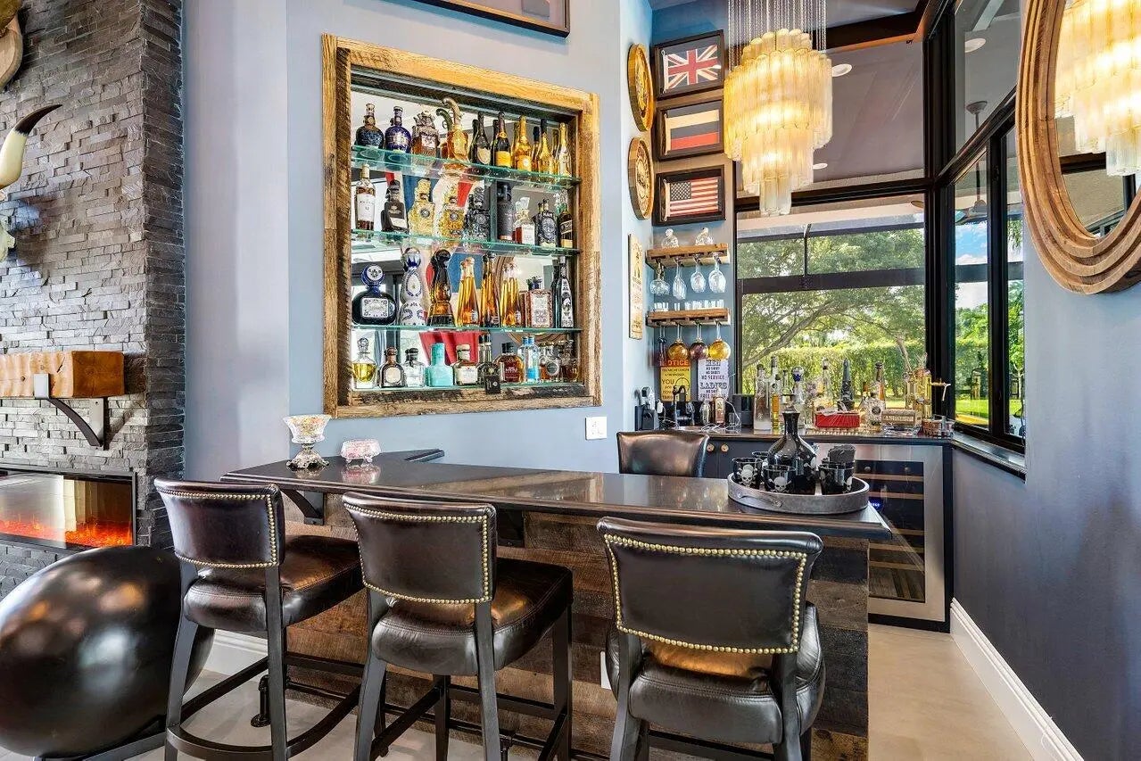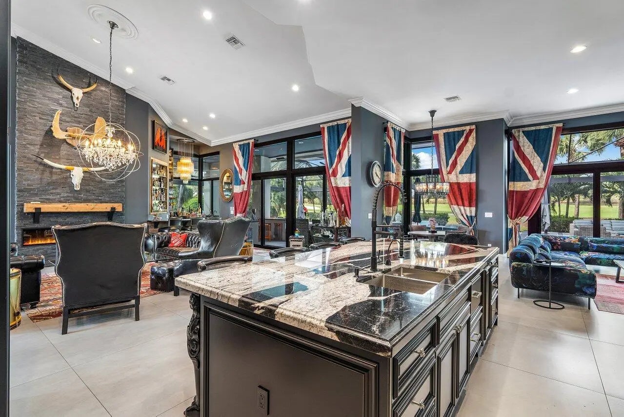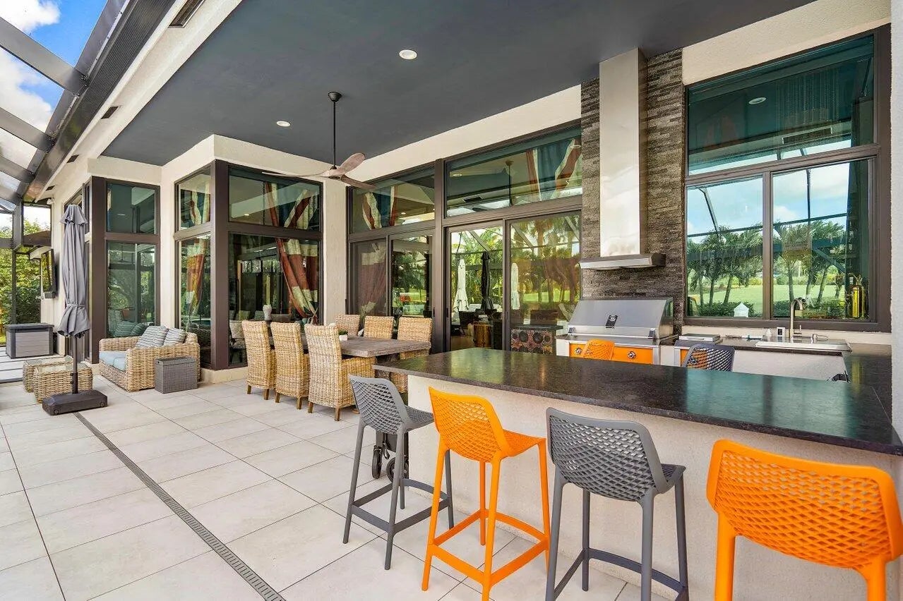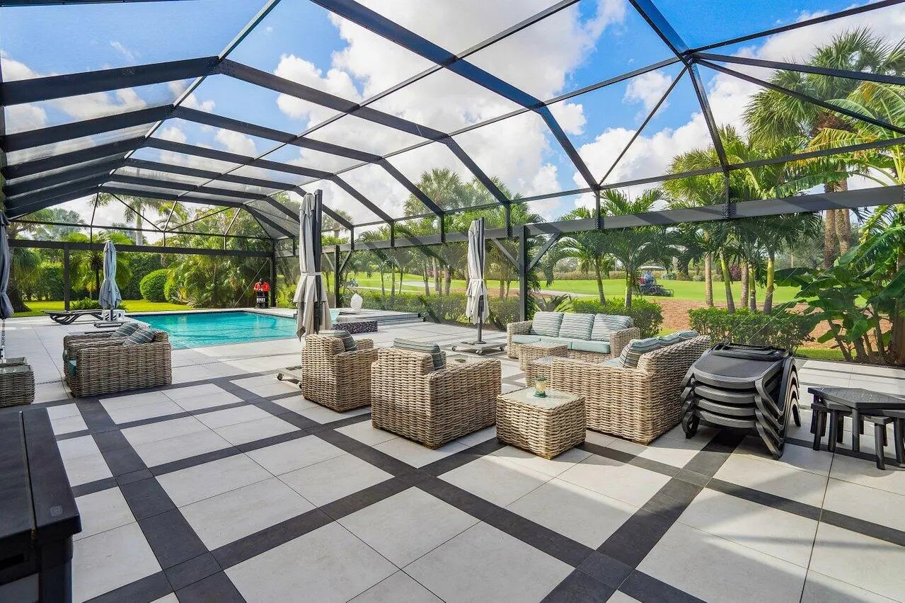 Elegant and high-end TURNKEY! Stylishly designed with Timothy Oulton furniture. On a quiet cul de sac, on A HALF ACRE in the desirable Bocaire Country Club, this welcoming home has cathedral ceilings & is flooded with natural light from floor to ceiling IMPACT windows. All one level! OPEN CONCEPT living area with 48x48 porcelain tiles, decorative fireplace & wet bar. Entertain at the large island in the chefs kitchen with AGA-Elise appliances, custom cabinetry, overlooking the spacious family room. Split bedroom layout, each BR boasts ensuite bath and built-out closets. Separate OFFICE! Huge resort-like oasis! NEW HEATED pool & spa, patio with large neutral tile, newly screened with covered & open seating, summer kitchen, pool table, grassy area for playing or pets, enchanting lighting through the landscaping makes the back feel like a five star resort. Garage is newly epoxied with tons of storage. Bocaire is a boutique Country Club with only 239 homes on one circle...no divided sections. It is an inclusive, friendly and active community, welcoming all! Parents, children and grandchildren included are in the membership. Renowned championship golf course, competitive and social golf, tennis & pickle ball programs & teams, resort-like aquatics center, 24 hour fitness center with diverse fitness classes, high-end dining and many fun social events. One of the most eastern country clubs in Boca Raton, Bocaire is in an A school district with many desirable public and private schools. Close to beaches, restaurants, entertainment and to both Atlantic Avenue in Delray Beach and Mizner Park Boca Raton.