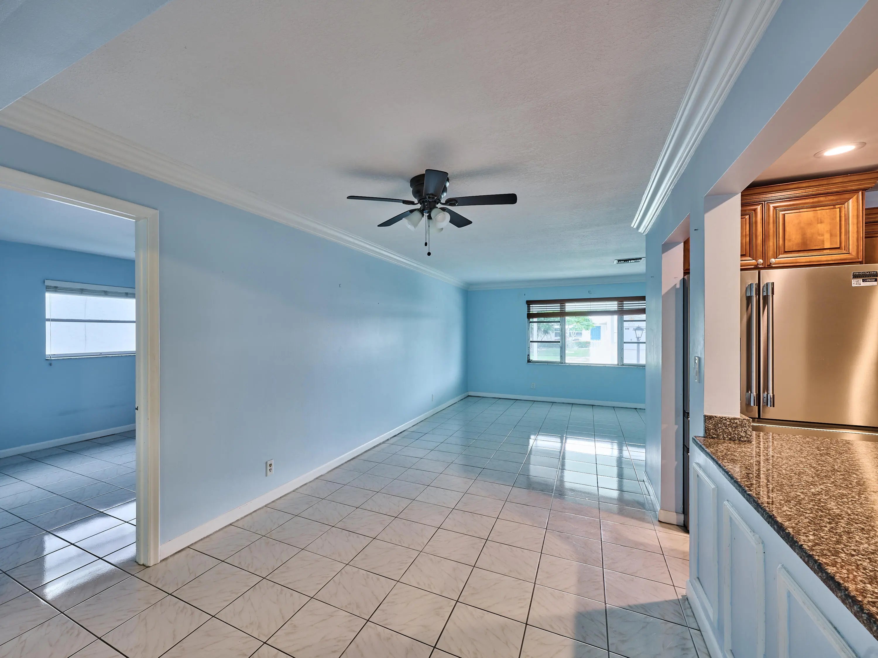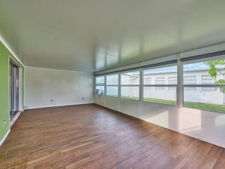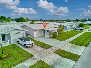 This is the largest 2/2/1 w/ the BONUS covered front porch, Double Driveway and enclosed patio! MOVE-IN READY! Pet Friendlyl! interior features crown molding in the living areas, plenty of storage, an updated kitchen boasting granite counter tops, SS appliances including a 2024 fridge and Bosch Dishwasher. The primary bedroom offers a walk-in closet, 2nd closet, remodeled bathroom featuring a renovated shower with subway tile base to match the backsplash over the dual sink vanity! 2015 enclosed patio has its own AC, blackout blinds, plank tile & impact windows. Home also boasts 2023 accordion shutters, 2020 roof. 2019 AC & Garage door, 2021 Water Heater. Boynton Leisureville offers an active lifestyle with a heated pool, clubhouse, gym, bocce ball, card room, 9 hole golf course & more Pet Friendly Leisureville offers the residents hot tub, heated/cooled pools, billiards, fitness center, card room, community room, bocce ball, shuffleboard, picnic tables and complimentary golf. The low HOA conveniently includes lawn care, sprinkler maintenance, pest control, cable & internet.The location is minutes to Oceanfront Park, the Boynton Beach Inlet and waterfront dining at the Boynton Harbor Marina. Enjoy easy access to nature preserves like the Green Cay Nature Center, and nearby I-95, close to both West Palm Beach and Delray Beach.