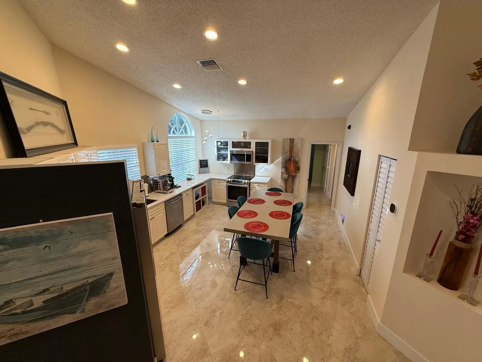 Modern east Boca Raton semi attached three bedrooms two bathrooms villa located in 39 villas, and townhouses, all age community. HOA fees include building insurance, basic cable and HBO, landscaping/irrigation, pool, and property management. Close to everything, beach, shopping, transportation and I95. Best school district with available schools like Calusa, Boca Middle, Boca High, Don Estridge, AD Henderson, FAU & Lynn Universities. Move in condition with soaring ceilings, tile floors throughout, stainless steel appliances, enclosed patio, paved outdoor backyard, and two parking spaces in front of the one car garage. Brand new $25K roof installed in 2025, and new Carrier central air conditioner unit.