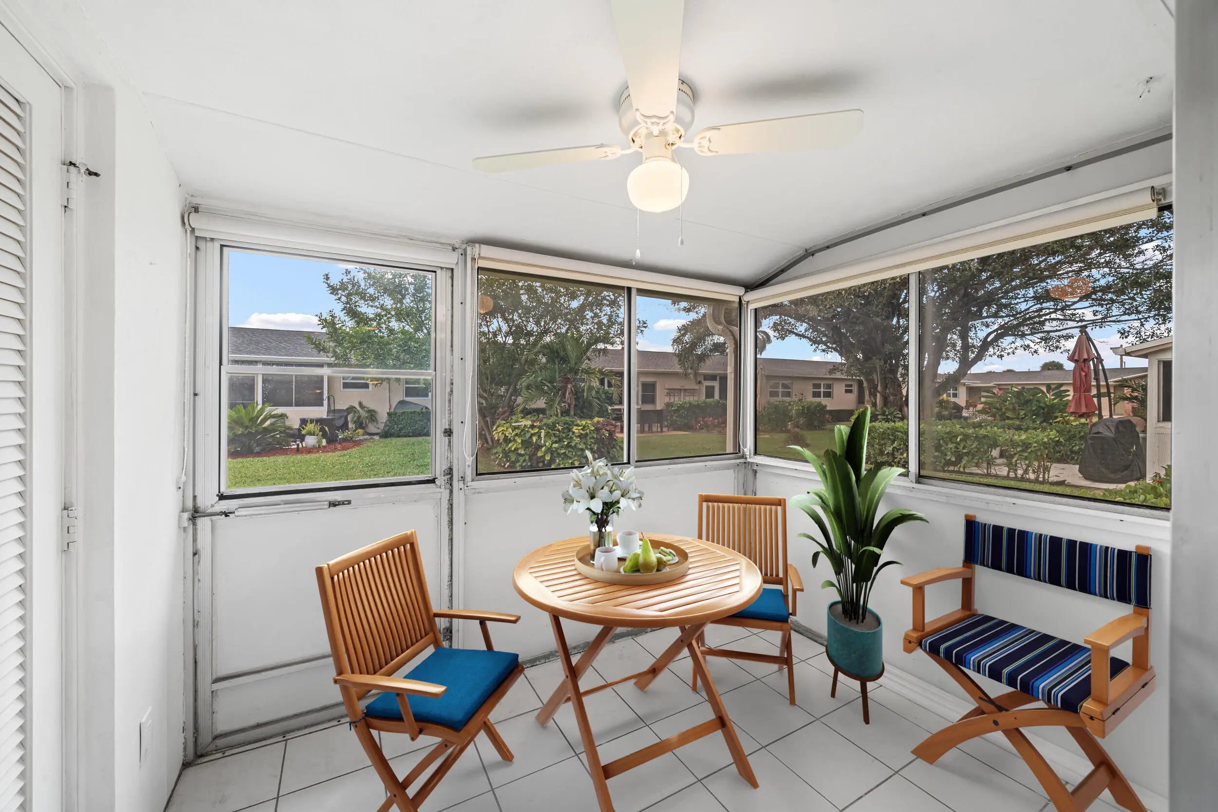Beautifully renovated 1-bedroom villa in the desirable 55+ Barkley Villas. Features new luxury vinyl flooring, fresh paint, modern lighting, white shaker kitchen with quartz countertops, new stainless appliances. Fully updated bathroom with a modern walk-in shower, new vanity,and fixtures. New water heater. Bright living area plus enclosed Florida room with garden views. Laundry building is steps away. Community offers clubhouse, pool, shuffleboard, and low fees. Move-in ready. Some photos virtually staged.