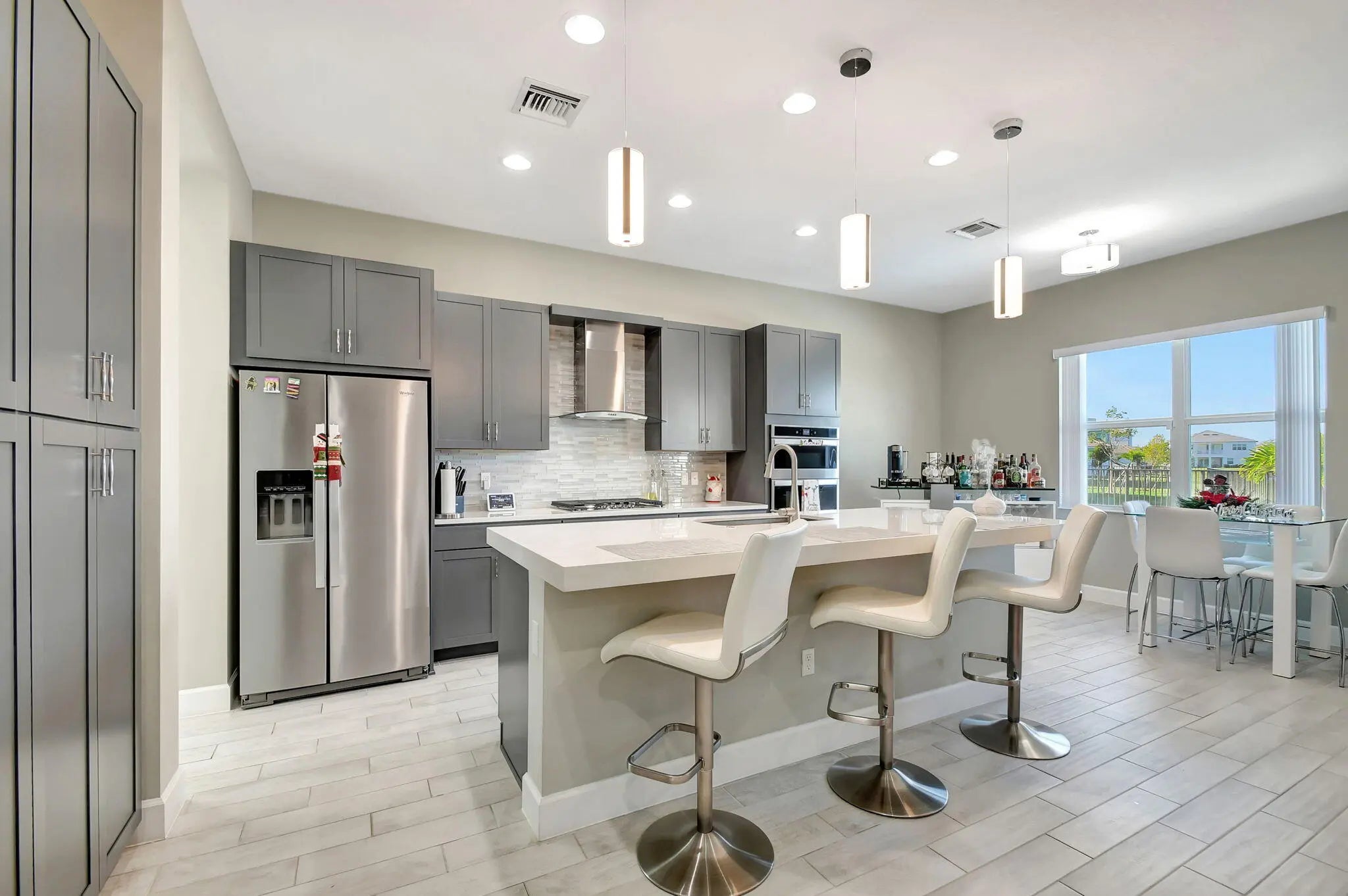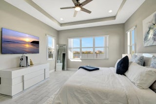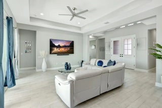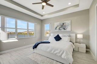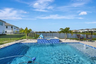 Single-story Contemporary Florida home with a transitional interior, set on one of the most desirable lakefront lots in The Orchards at Westlake! This Sandhill model offers approximately 100 feet of water frontage, a private heated pool, fully fenced backyard, and an oversized side yard! The open floor plan features porcelain tile flooring, a large kitchen island with pool and lake views, breakfast nook, and a formal dining room! Gas service supplies the kitchen range and water heater. The three-car garage includes a finished epoxy floor, with an indoor laundry room nearby. Three well-proportioned bedrooms + Den include a primary suite with lake views. A rare combination of lot size, water frontage, and functional single-story living! Set on a standout lakefront homesite in The Orchards, this Sandhill model delivers the kind of lot, layout, and outdoor living that rarely align in one package. With approximately 100 feet of lake frontage, a private pool, a fully fenced backyard, and an oversized side yard, you get space to actually livehost, unwind, let pets run, and enjoy wide-open water views that make everyday feel like a getaway. From the moment you arrive, the 3-car garage and crisp curb presence set the tone. Inside you find a bright, open interior finished with porcelain tile flooring and an easy, functional flow that works for both daily life and entertaining. The heart of the home is the kitchenanchored by a large center island and positioned to capture pool + lake views from the kitchen and breakfast nook. Whether you're making coffee in the morning or serving guests at night, the view is part of the experience! The home features a gas water heater and gas range, providing efficient performance and reliable everyday use. The floor plan offers flexibility and separation with a formal dining room for holidays and dinner parties, plus open living spaces that connect seamlessly to the outdoor area. The backyard is the showpiece: a heated pool with an extended deck designed for lounging, grilling, and sunset evenings by the waterwithout giving up privacy thanks to the fencing and the generous lot dimensions! Practical upgrades are here too, including a finished epoxy garage floor that looks sharp and stands up to real use. The indoor laundry room is thoughtfully placed near the garageexactly where you want it for backpacks, groceries, and day-to-day convenience. The bedroom layout features three generously sized bedrooms + a Den, highlighted by a primary suite that feels like a retreatcomplete with lake views to start and end your day on a calmer note. If you want a Westlake home that truly stands apart for lot size, lake frontage, pool lifestyle, and a clean, upgraded interior, this is the one to see in person!