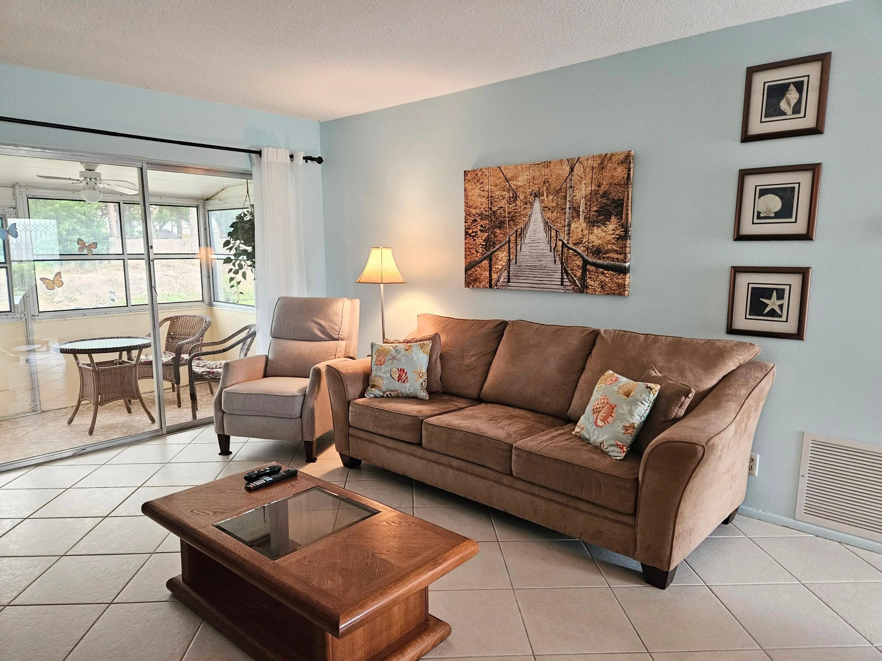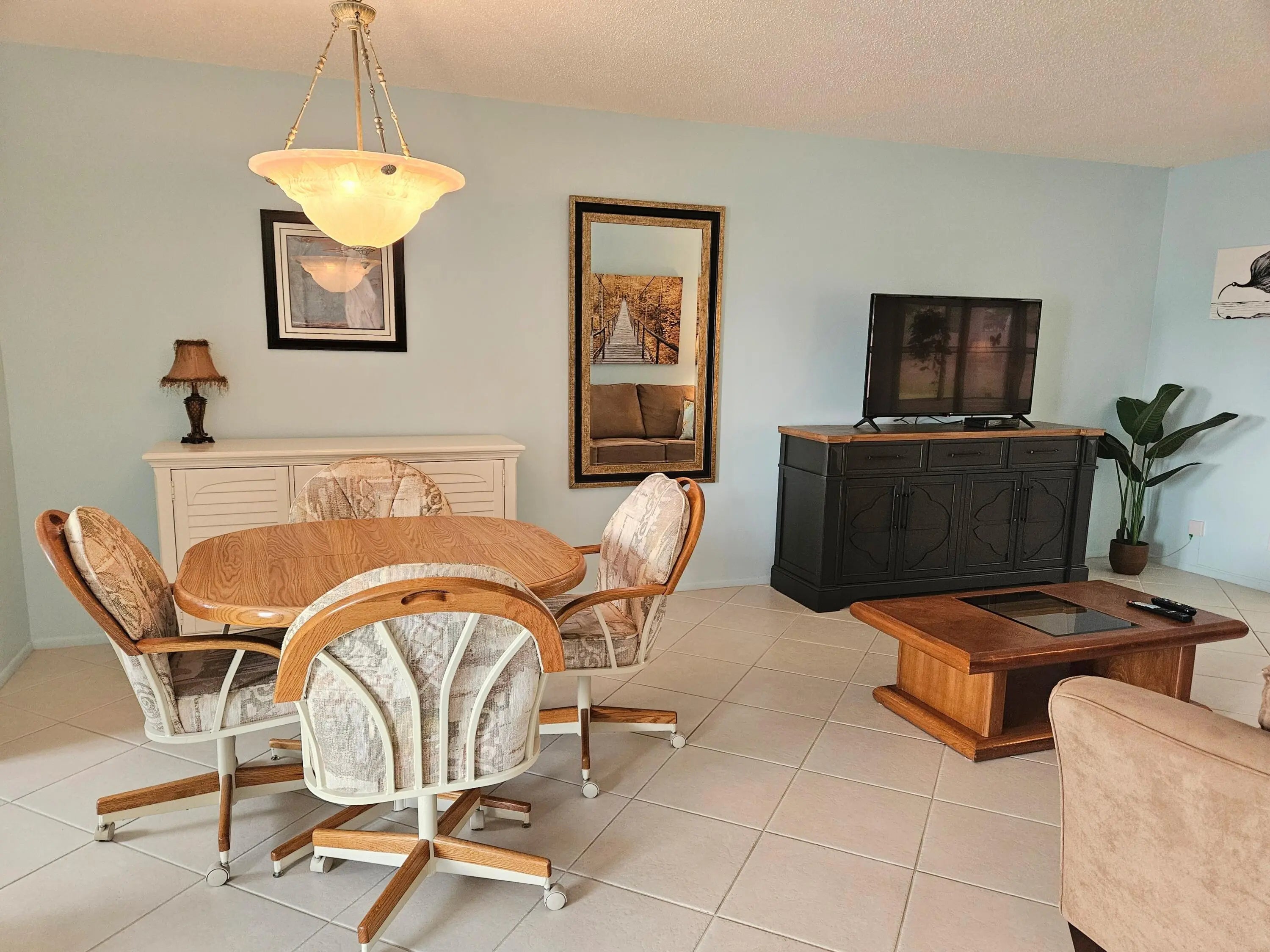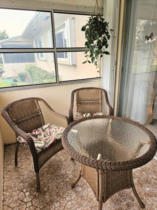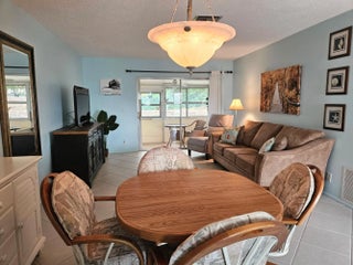 Waterfront view furnished 1/1/1 in 55+ active adult community of Dudley. Impact windows with accordion shutters. Updated electrical box 2021. Newer A/C 2022. Electric Hot Water heater 2017. Updated bathrooms. Dudley community offers wide sidewalk, heated pool, clubhouse with auditorium , fitness room, library, shuffleboard, woodshop and bocce court. It is located centrally close to shopping, restaurants, 15 mins from Palm Beach International airport and 20 mins from the beach.