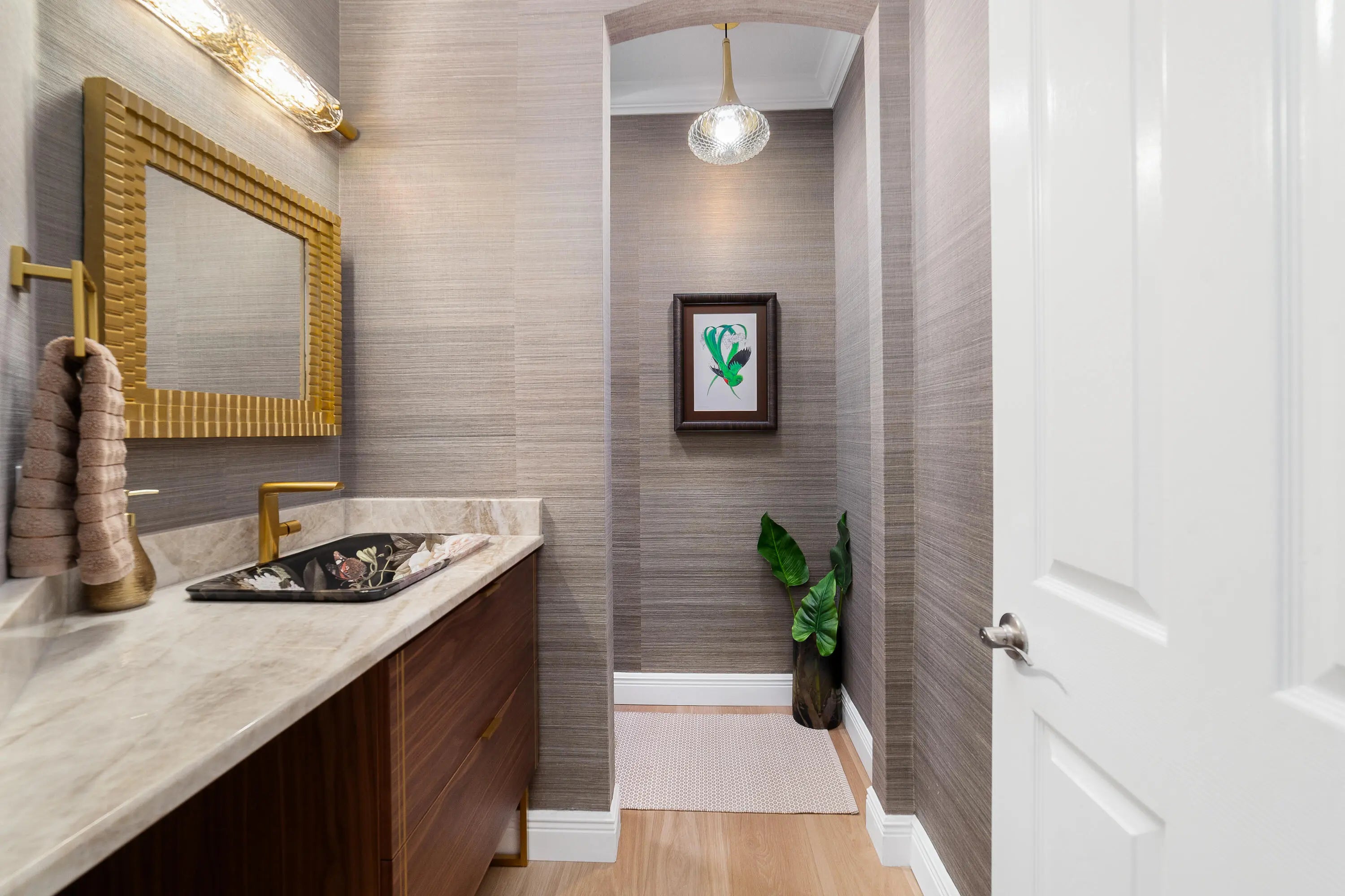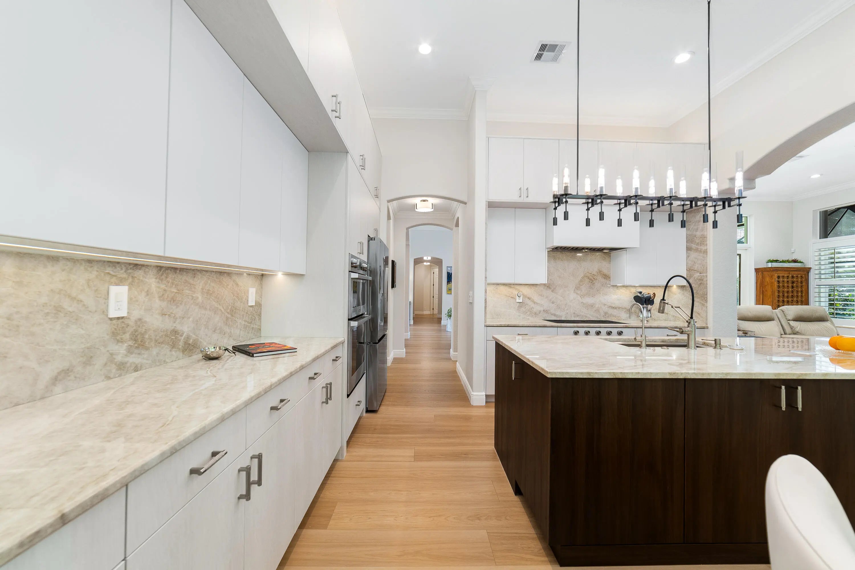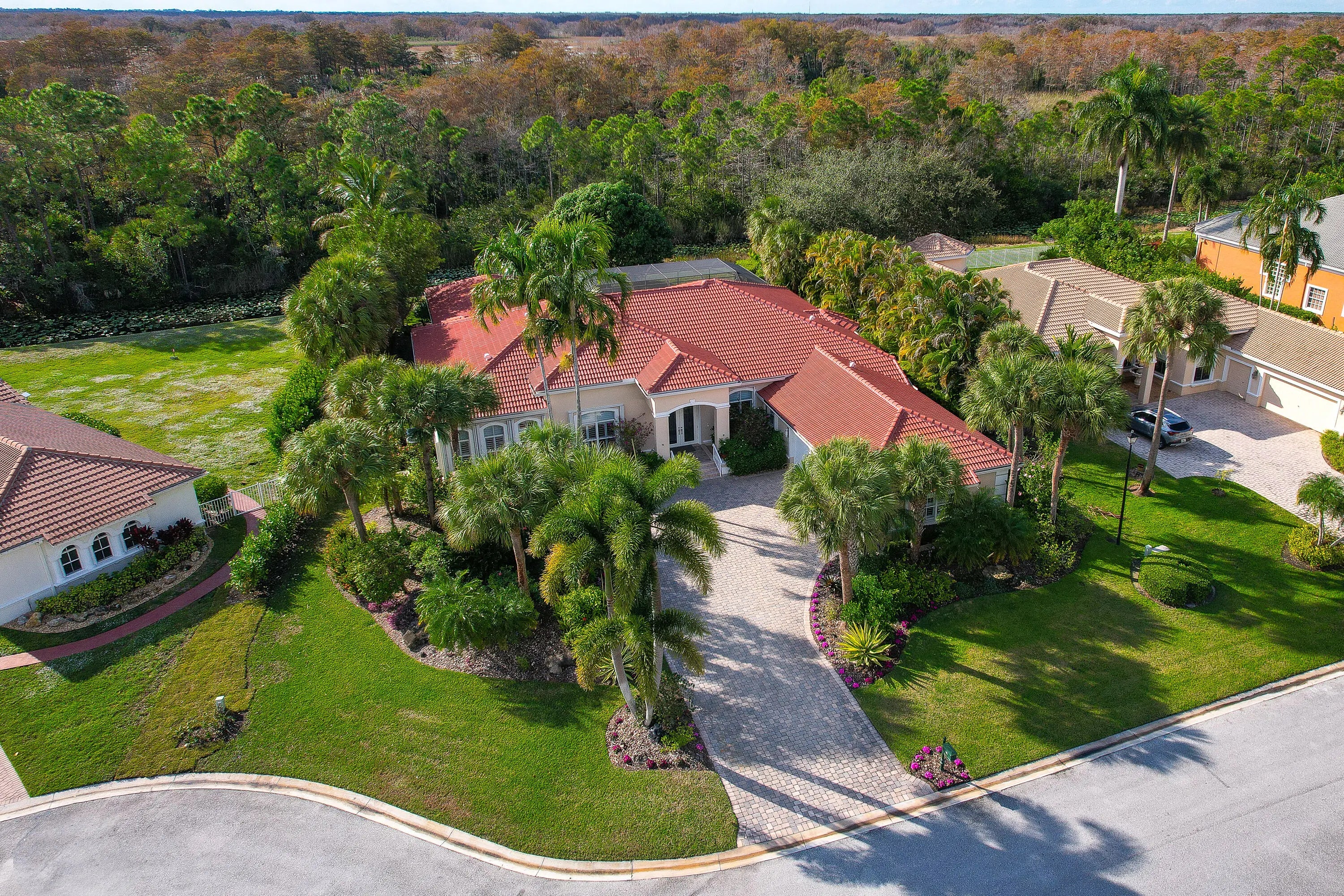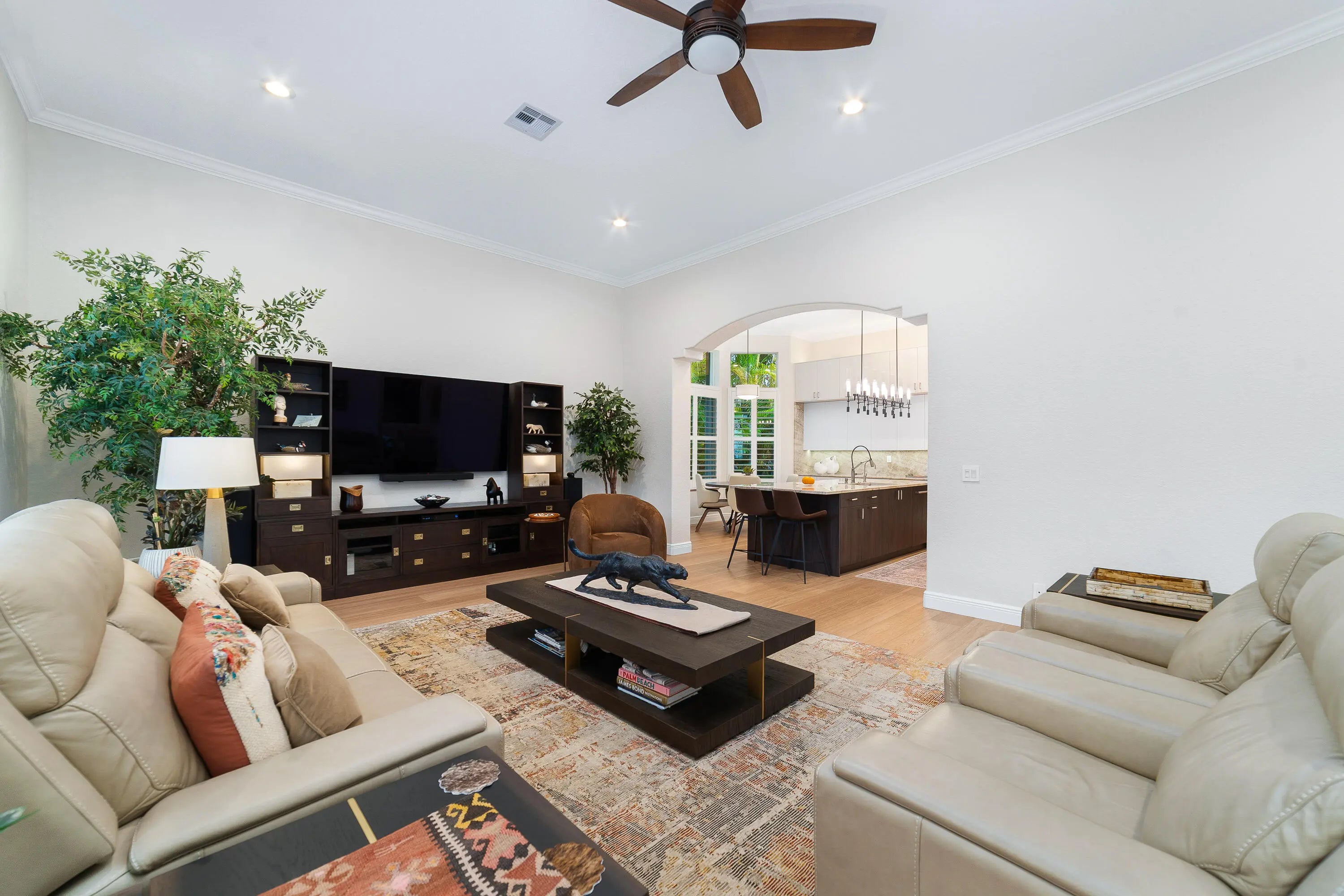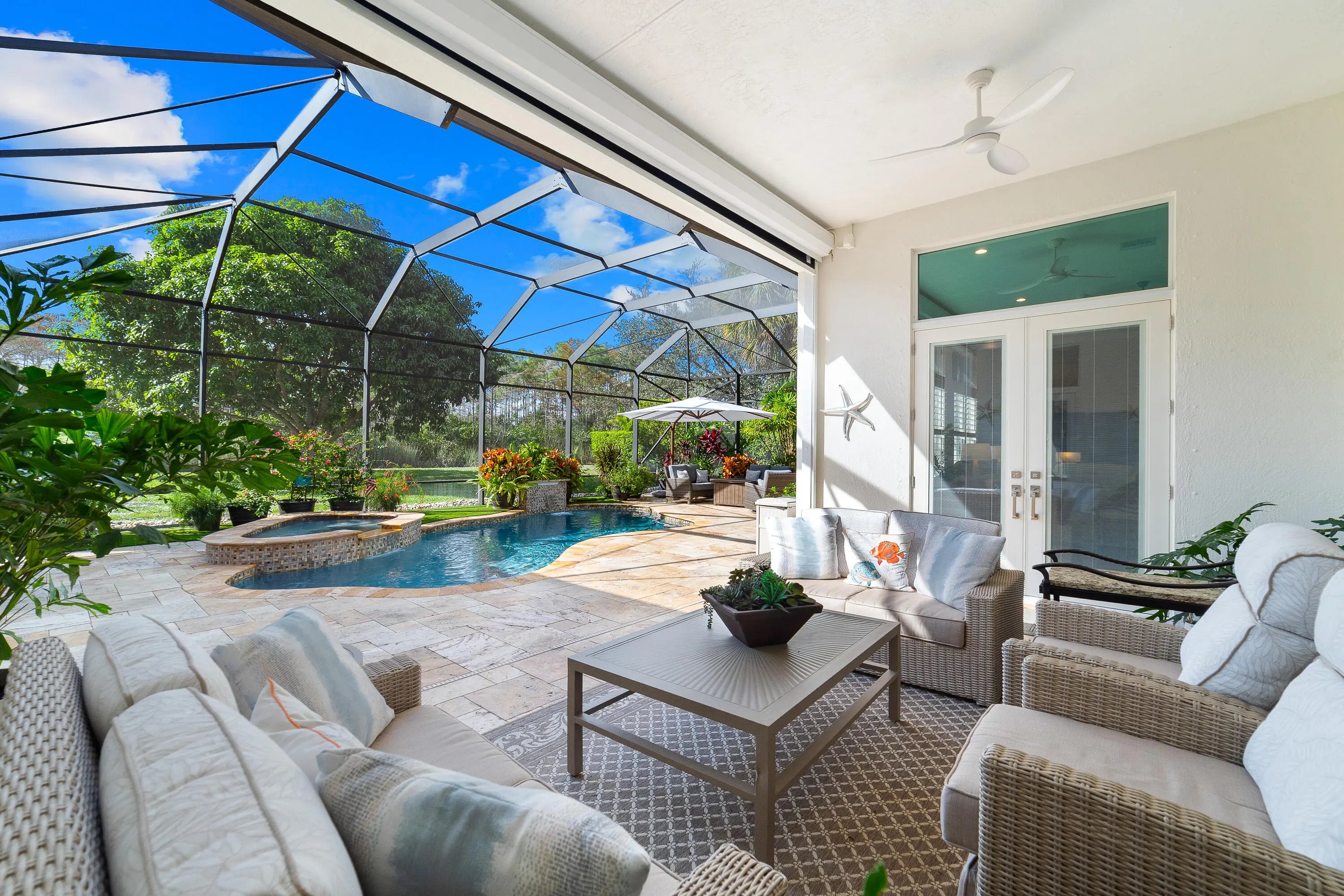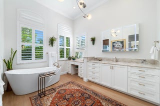 This home will take your breath away - from the exclusive, tasteful upgrades to the seamless blend of Florida's beautiful outdoor living. Fully renovated between 2023-2025, this 3-bedroom plus office, 3.5-bathroom, 3-car garage residence rests on a private, lushly landscaped 0.38-acre lot in the coveted Ironhorse community, offering non-mandatory golf membership options. Unparalleled quality and attention to detail make this property truly unique. Highlights include an IMPACT French front door, soaring 15' ceilings with elegant crown moldings, LED recessed lighting, gorgeous engineered wood flooring, plantation shutters, and a Whole House Gas Generator. The gourmet kitchen is a chef's dream, equipped with high-end appliances, a gas stove with vent, luxurious Taj Mahal quartzite counters, an oversized island, custom soft-close cabinetry, a butler's pantry, convenient pullouts, hidden USB outlets, and a walk-in pantry closet. The primary suite is a private retreat featuring three oversized, custom-built walk-in closets. The spa-like en-suite bath offers dual sinks, a stand-alone soaking tub, separate shower, two private water closets, and a dedicated makeup station. Additional features include a spacious laundry room with full-size washer and dryer, a roof replaced in 2023, and two newer AC units (2021 and 2022). Step outside to enjoy your serene oasis: a covered patio, screened-in heated pool and spa, and a fully equipped summer kitchenall surrounded by stunning landscaping. Roll-down storm-rated screens provide added protection. Ironhorse is an exclusive, gated community with phenomenal amenities and optional golf membership. It is conveniently located near shopping, dining, PBI airport, and countless activities. All measurements are approximate. Take a look at the 3D virtual walkthrough. Full list of upgrades is in the Document section.