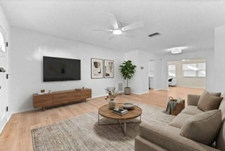 This move-in ready, newly renovated and spacious three bedroom, two bath home has wonderful surprises at every turn. There is 1800-square feet of gracious living, including new flooring throughout, as well as a completely updated galley style kitchen with bonus prep space, new wood laminate floors throughout, new A/C & tankless water heater, and new lighting and ceiling fans. Laundry room includes a full size washer and dryer, storage space and a folding station. The two primary bedrooms each have oversized closets and en-suite bathrooms with new tile, vanities, and walk-in showers. With the extra third bedroom and bonus family room this is the perfect home for entertaining and hosting family and friends. The private corner lot is a short walk to the pool and the free 9-hole executive golf course. Adjacent to the pool, the community center boasts many activities including mahjong, exercise classes and more. Low HOA fee of $298 includes, water, yard maintenance, golf, pool access and other amenities. Schedule your tour today.