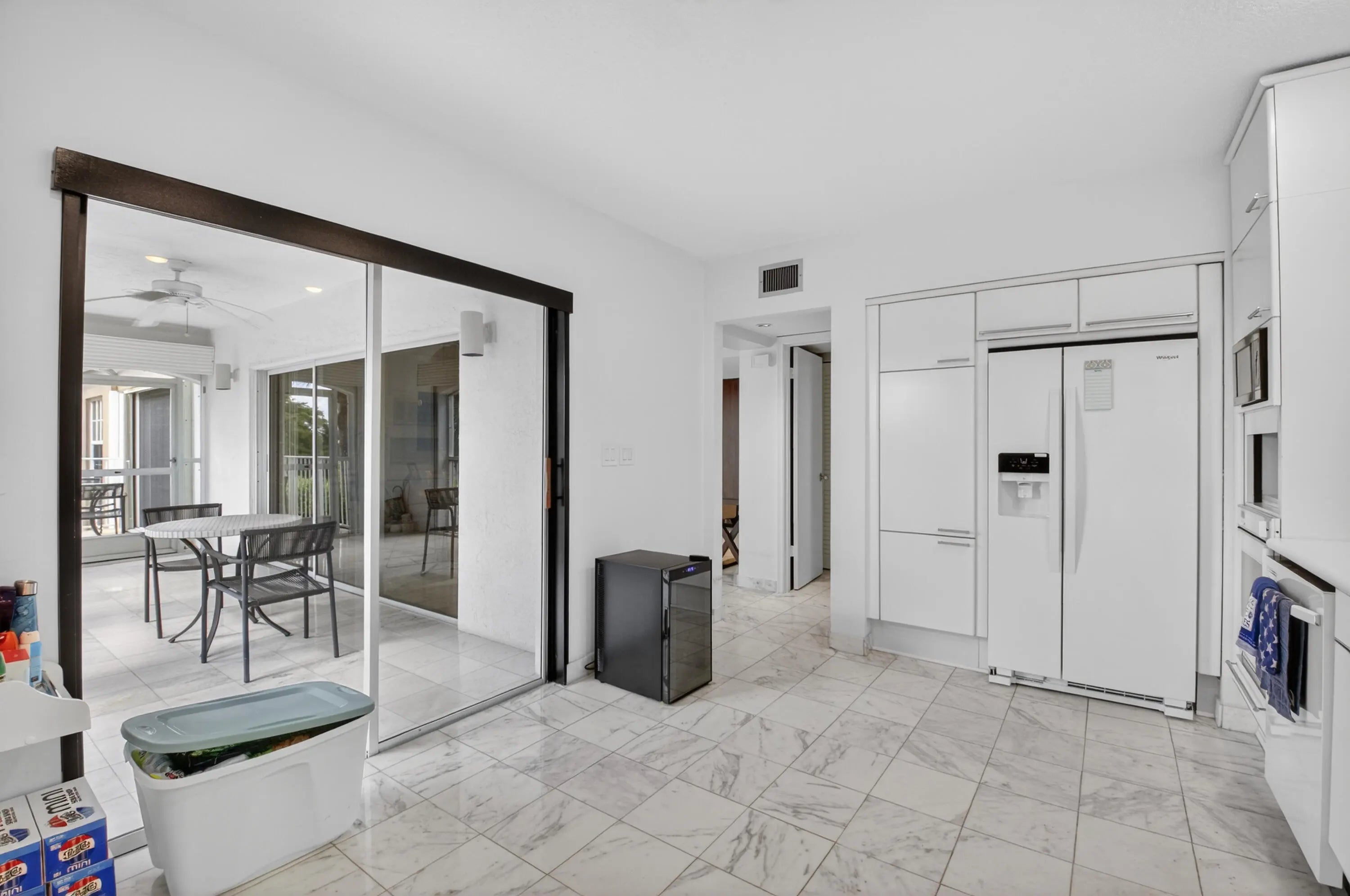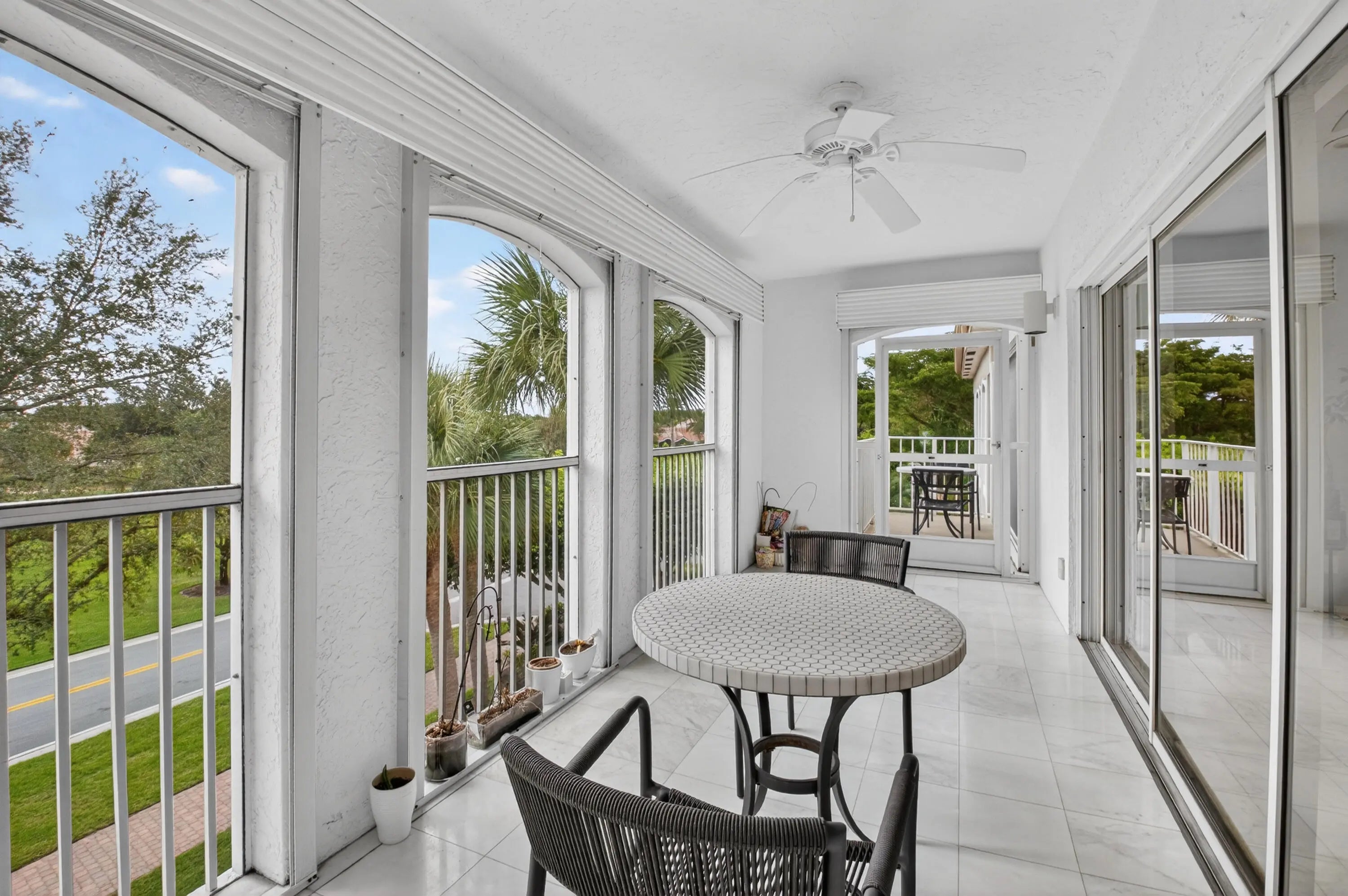 This beautiful 2-bedroom, 2-bath plus office condo offers magnificent golf course views. The unit features a spacious Great Room with vaulted ceilings and a wet bar, opening to a large screened-in balcony—perfect for relaxing or entertaining. The split-bedroom floor plan provides ideal privacy for guests. A charming breakfast area also opens to the balcony, enhancing the indoor-outdoor living experience. The primary bedroom is generously sized with ample closet space and an en-suite bath featuring a separate shower and soaking tub. The guest bedroom is both spacious and versatile. Ideally located within short walking distance to the Clubhouse and Pool/Lifestyle complex, as well as a nearby House of Worship. Come experience the Boca Grove Lifestyle.