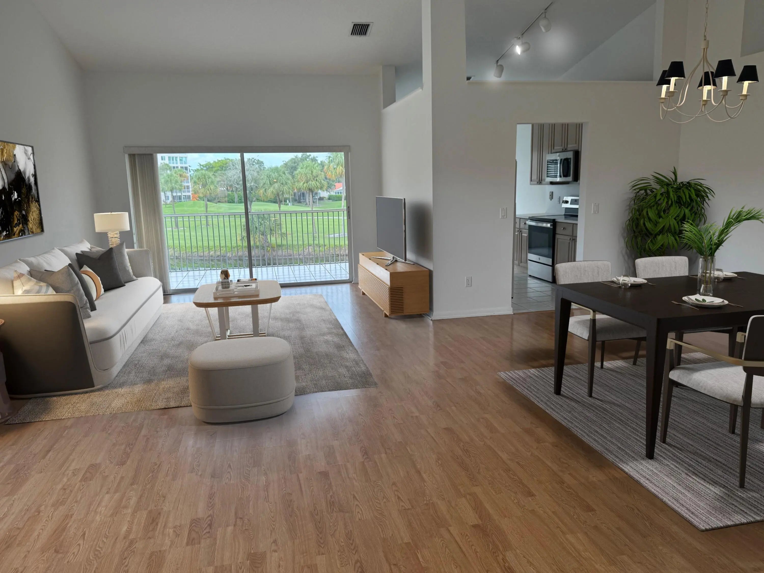 Gorgeous updated 3-bedroom second floor corner residence with spectacular golf course and lake views. 1 car garage, Open floor plan with dining area chandelier. New flooring throughout. No carpet. Newer full-size washer and dryer in laundry room. Spacious screened in balcony. Newly painted. Community pool for Eastbrooke. 24-hour guard gated community, surrounded by the municipal golf course. East access to downtown Boca Raton and Delray Beach, shopping, dining and the beaches.