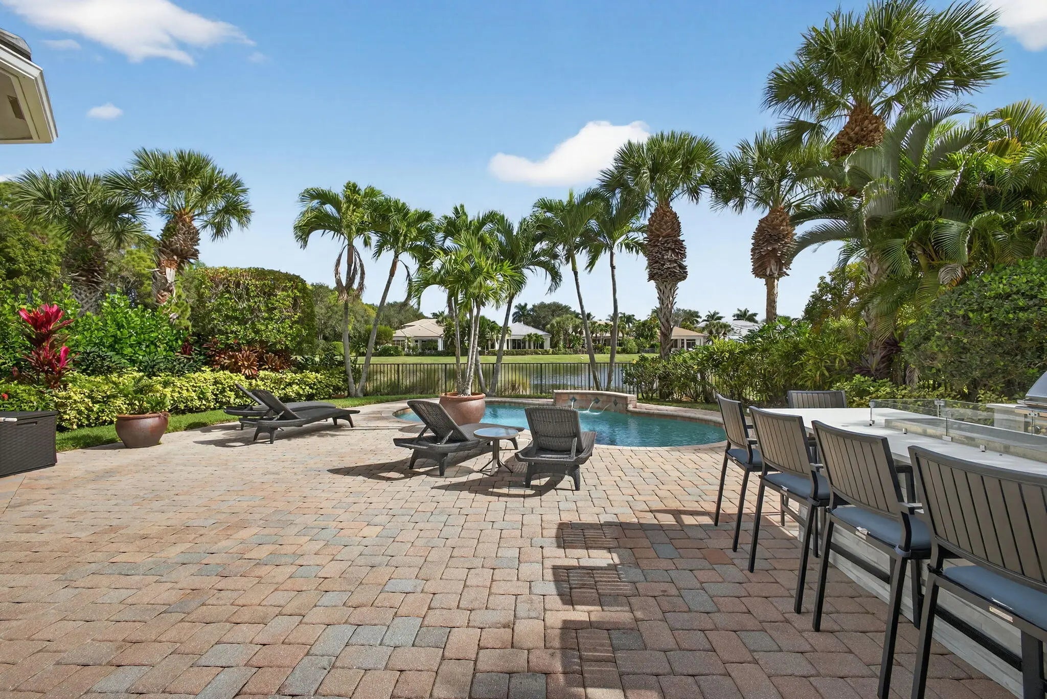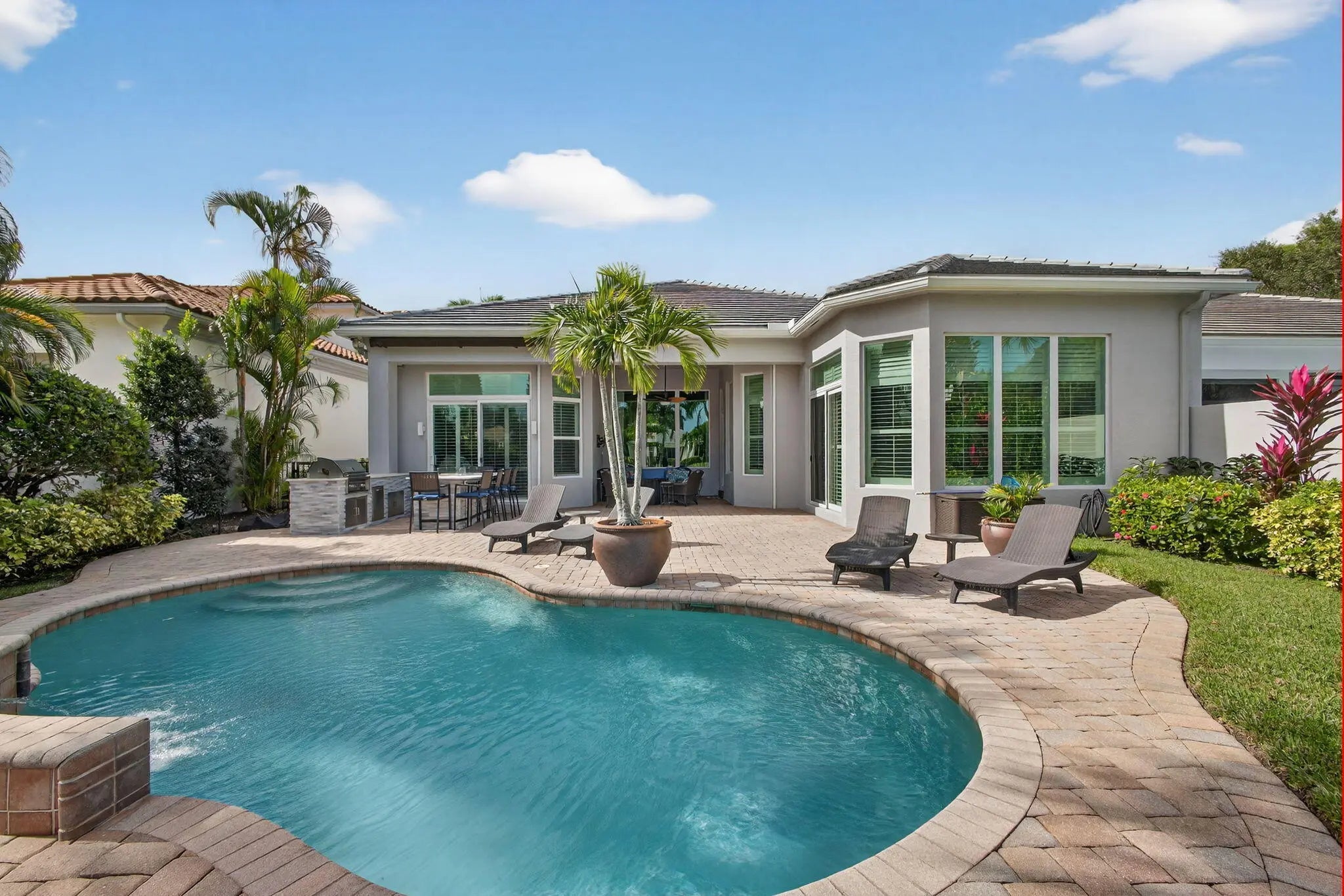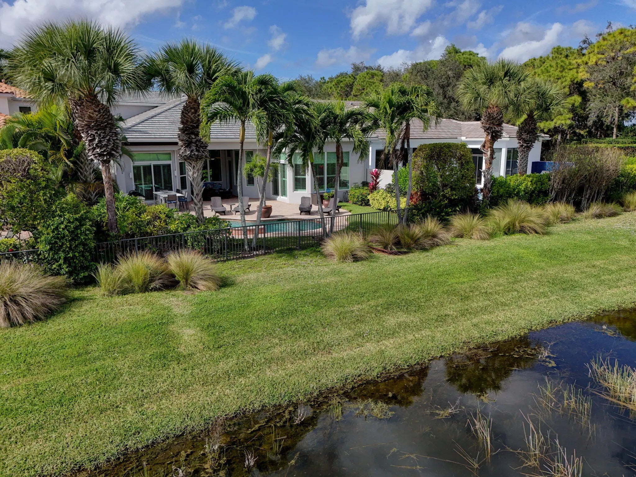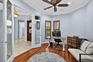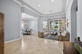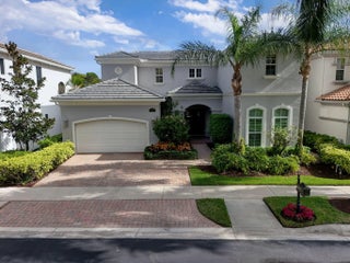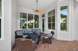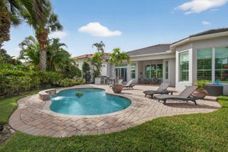 Located in the prestigious Country Club at Mirasol, this exceptional residence offers a coveted golf membership, five spacious bedroom suites plus a dedicated office, and over 4,000 square feet of refined living space. Thoughtfully updated with a new roof, fresh exterior paint, full impact windows, and enhanced by plantation shutters throughout most of the home, this property offers both peace of mind and timeless elegance. Interior details include custom closet built-ins, crown moldings, and central vacuum, adding everyday convenience and polished finishes throughout home. See additional comments Designed for effortless entertaining, the expansive outdoor living area showcases a serene water view and features a large covered patio with a motorized screen enclosure, fire pit seating area, summer kitchen with bar, and a freeform heated pool, ideal for year-round enjoyment. This home seamlessly blends space, comfort, and lifestyle in one of Mirasol's most sought-after settingsan outstanding opportunity to enjoy luxury golf-course living at its finest.