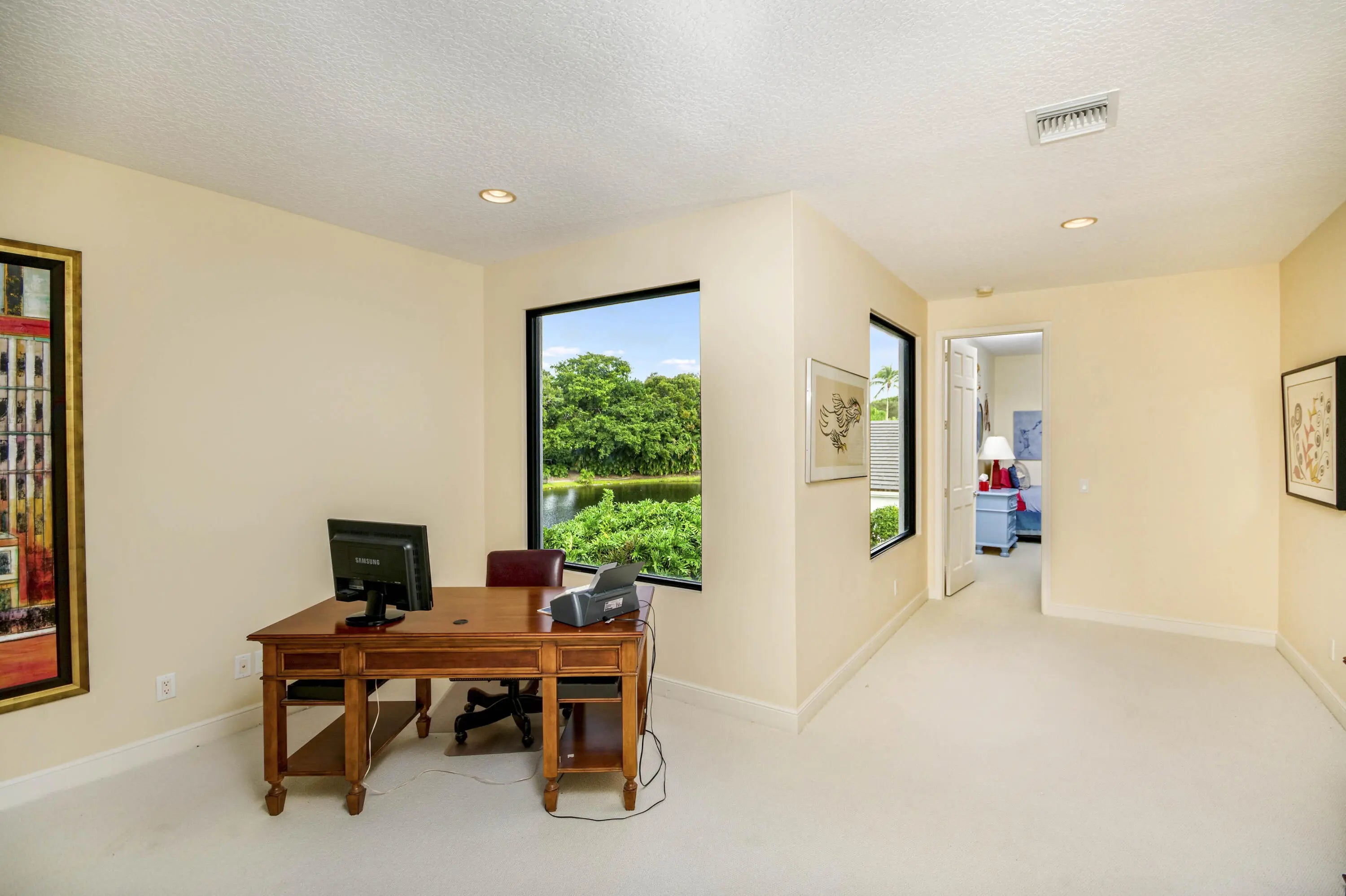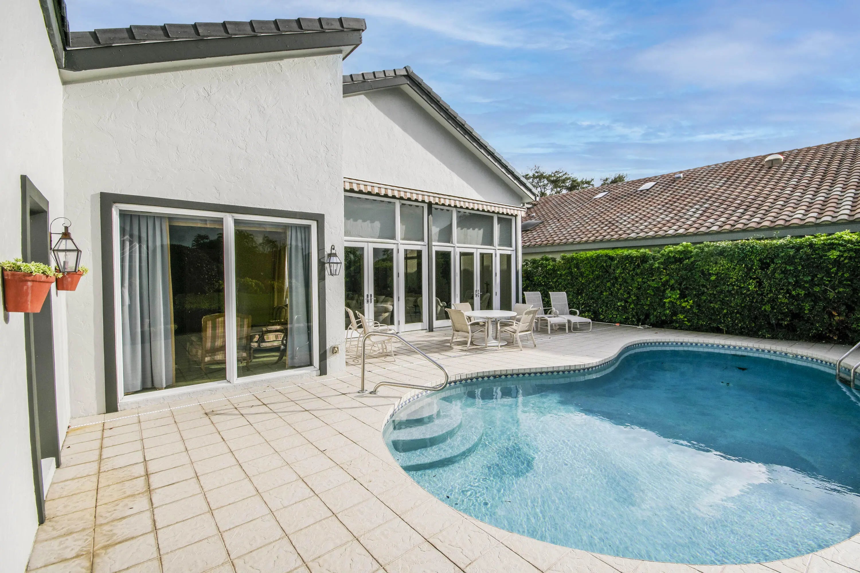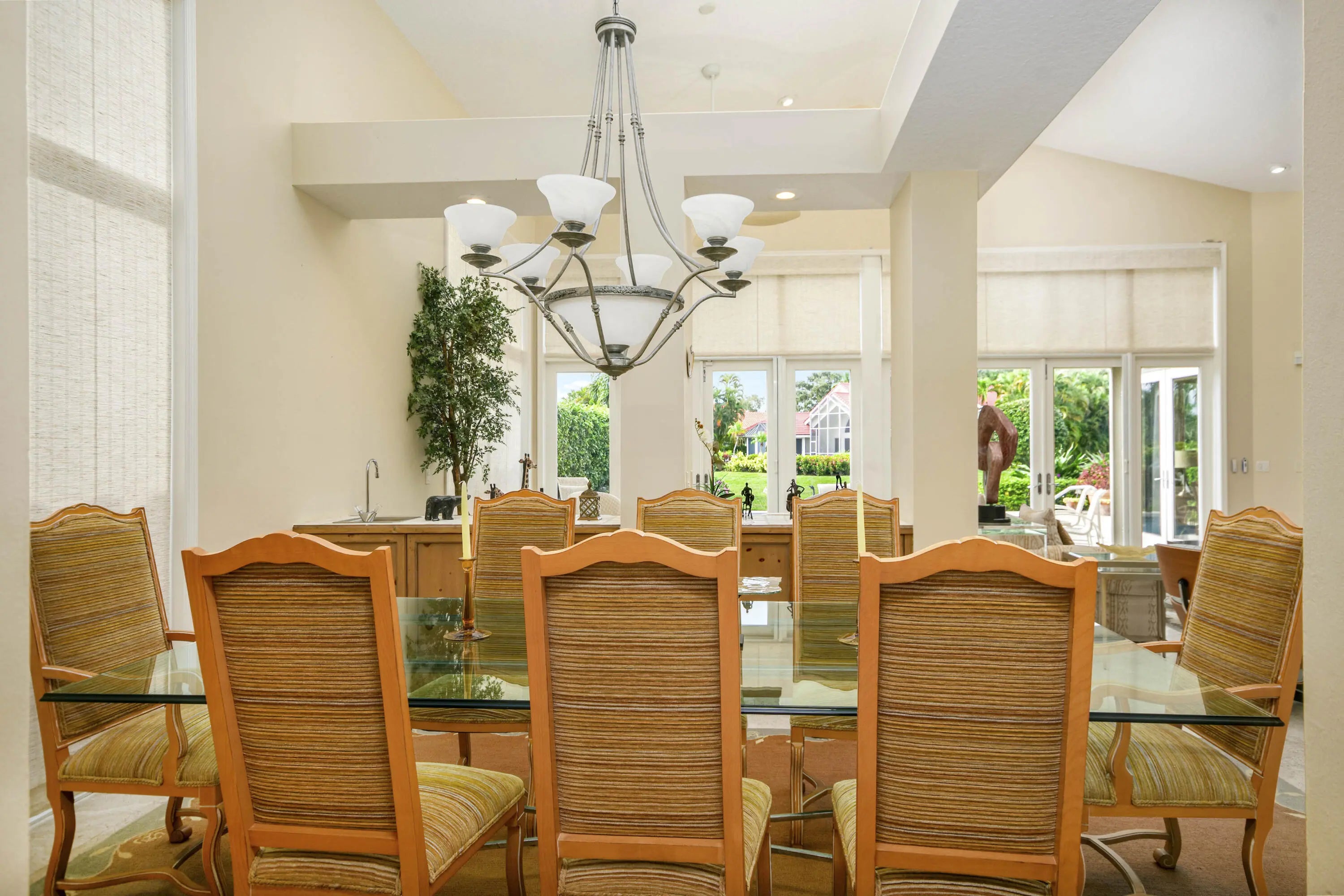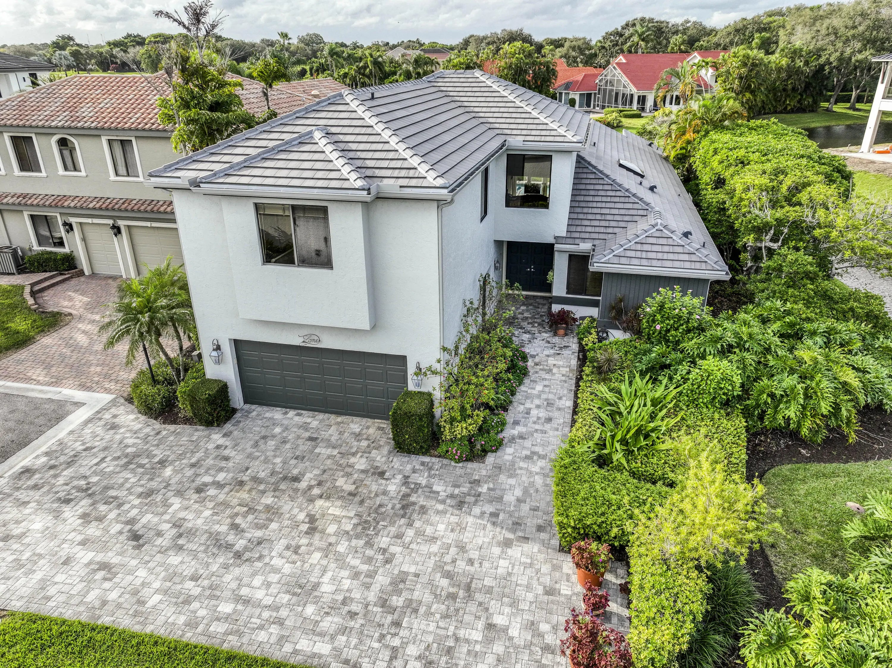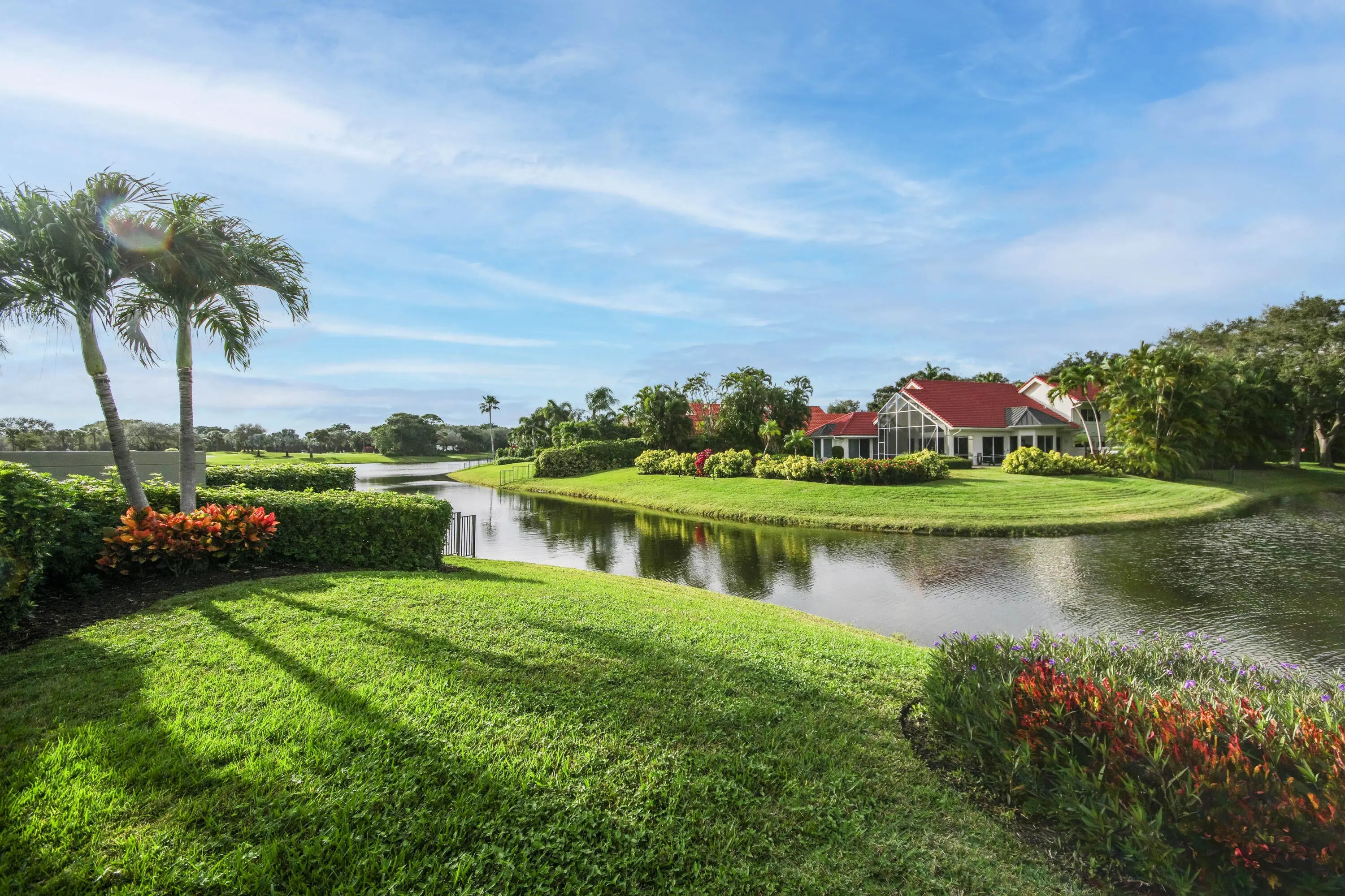Well-Maintained, Zen-Like Oasis in Prestigious Frenchman's Creek! This 5-bedroom estate offers the perfect blend of privacy, space, and peaceful elegance. Set on a quiet street with a western exposure and water views, this spacious 3,626 sq ft home (4,150 total) features an open floorplan with vaulted ceilings, tile and carpet flooring, and large impact glass doors throughout. The living and dining areas are cozy yet bright, with overhead lighting and ample storage. The traditional kitchen includes wood cabinetry, granite countertops, and electric appliances, while the dining room comfortably seats 12 with views of the backyard and water. The primary suite features dual walk-in closets and two separate en-suite bathrooms, one with a tub and both with oversized showers. Upstairs, two guest bedrooms share a Jack-and-Jill half bath, while the other two are full en-suites. A spacious den/office offers flexibility and natural light. Outside, a super-private backyard provides sunset views, an electric awning, and quiet retreat potential. Recent updates include a 2024 roof, 3-zone A/C (one new in 2023), and all impact glass. This is a rare opportunity for peaceful, spacious living with unmatched access to everything Palm Beach Gardens has to offer.