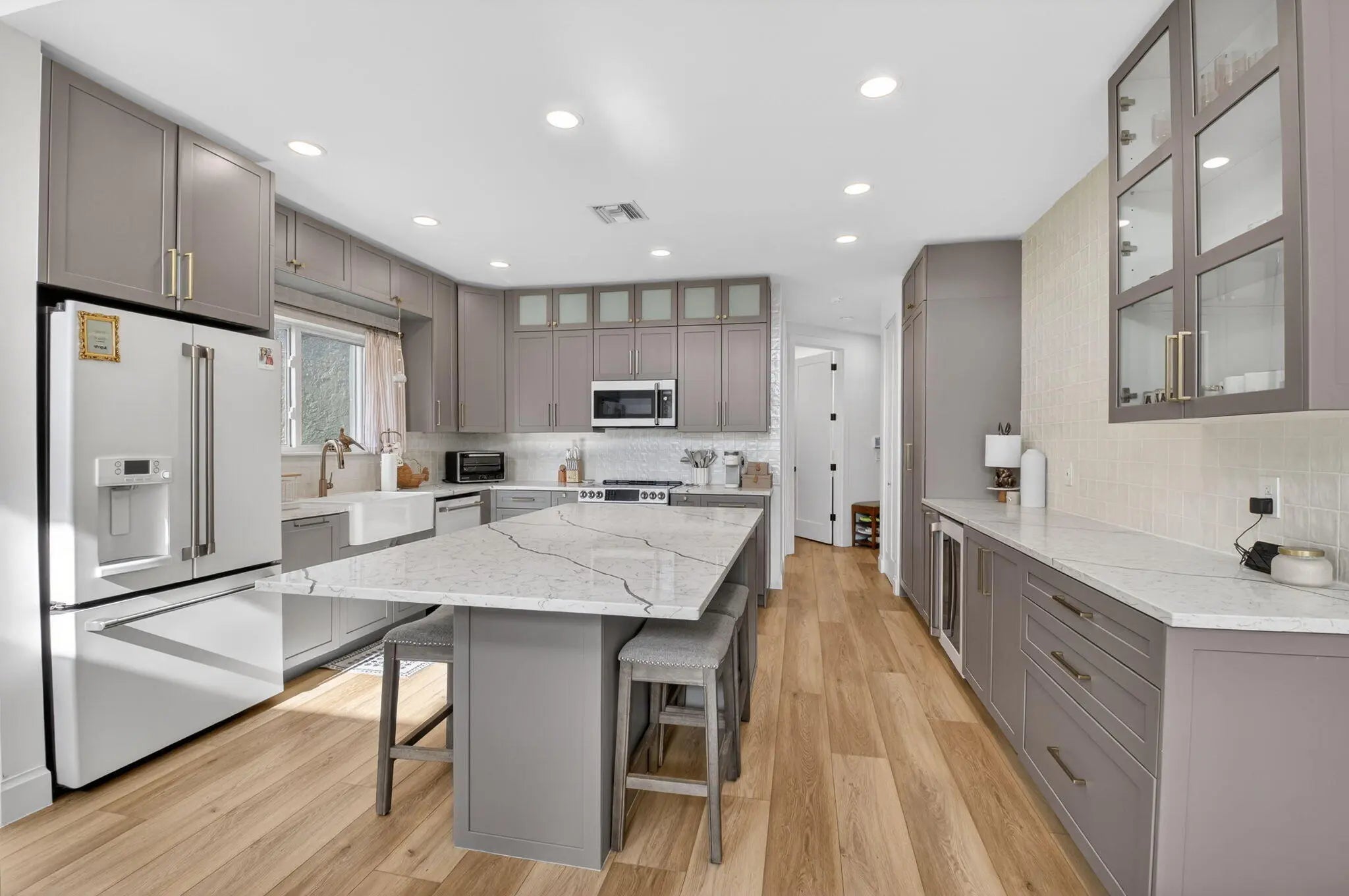 Welcome to this four bedroom, three full bath residence located in the heart of central Boca Raton, along a prestigious stretch of Jog Rd., often referred to as ''Millionaires Row'' surrounded by multimillion-dollar communities. Situated within one of the areas most desirable 24 hour guard-gated neighborhoods, this home offers an exceptional combination of location, security and quality of life. Set on a picturesque lakefront lot, the home features a thoughtfully designed split floor plan with spacious rooms, ample storage and walk-in closets. The chef's kitchen is a standout, showcasing top of the line Cafe appliances, a large center island with quartz counter tops, a wine and beverage cooler and high-quality hardwood cabinetry. The primary suite is an elegant retreat, offering a spa inspired bathroom with separate shower, freestanding soaking tub, dual sink vanity with generous space, plus two spacious closets- one walk-in. Additional highlights include an air conditioned oversized 2 car garage, a new water heater, and hurricane impact windows and door plus accordion hurricane shutters. The screened lanai with plenty of room for seating and dining, offers great long lake views. The HOA provides exceptional value, currently covering landscaping, mulching, exterior painting, cable and internet services. This move-in ready home presents a rare opportunity to enjoy refined living in one of Boca Raton's most sought-after communities. Newport Bay Club offers 4 pickleball courts, plus tennis courts, a resort style pool area, exercise room, fitness room, locker room, clubhouse, meeting room and basketball.