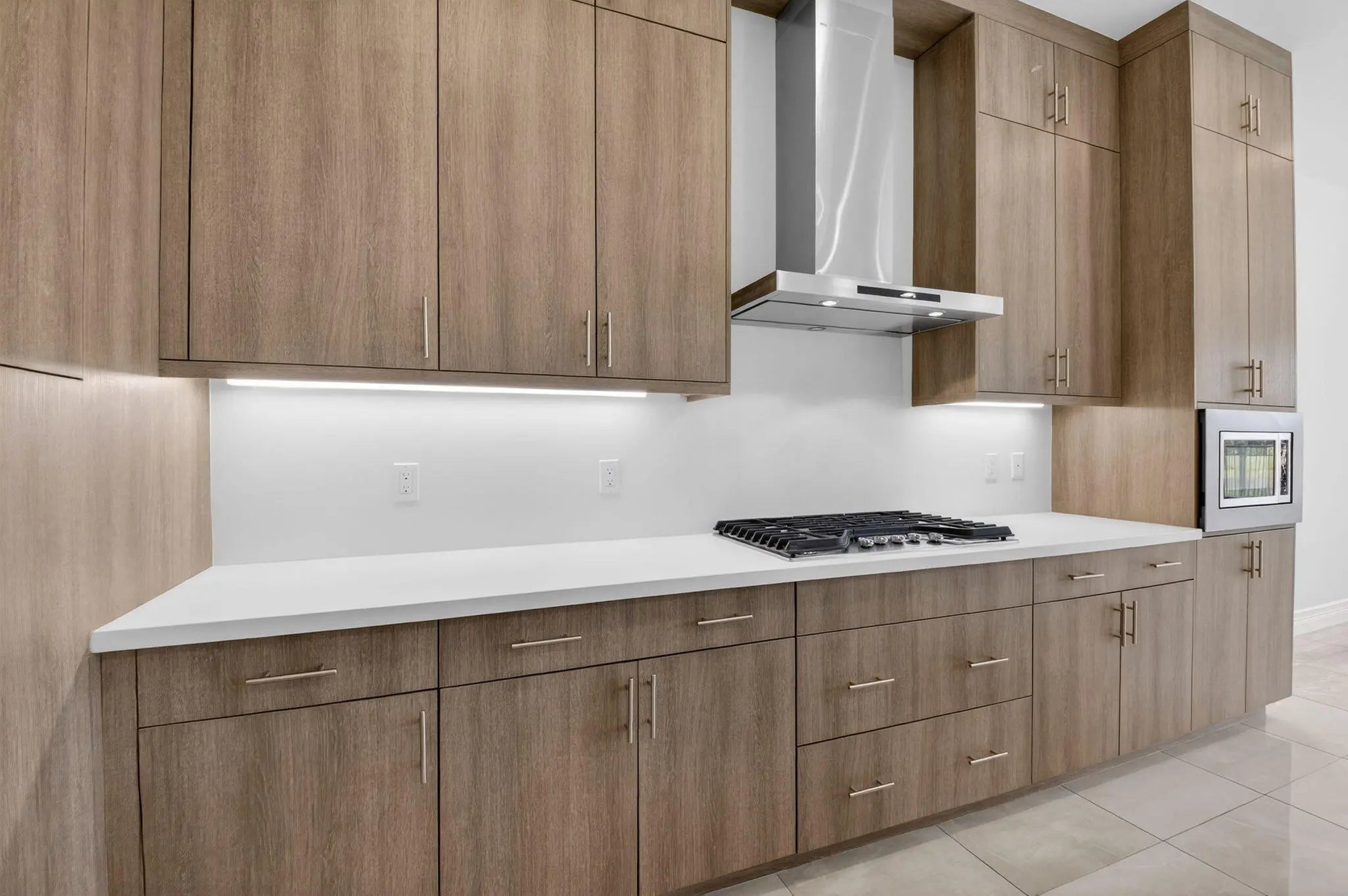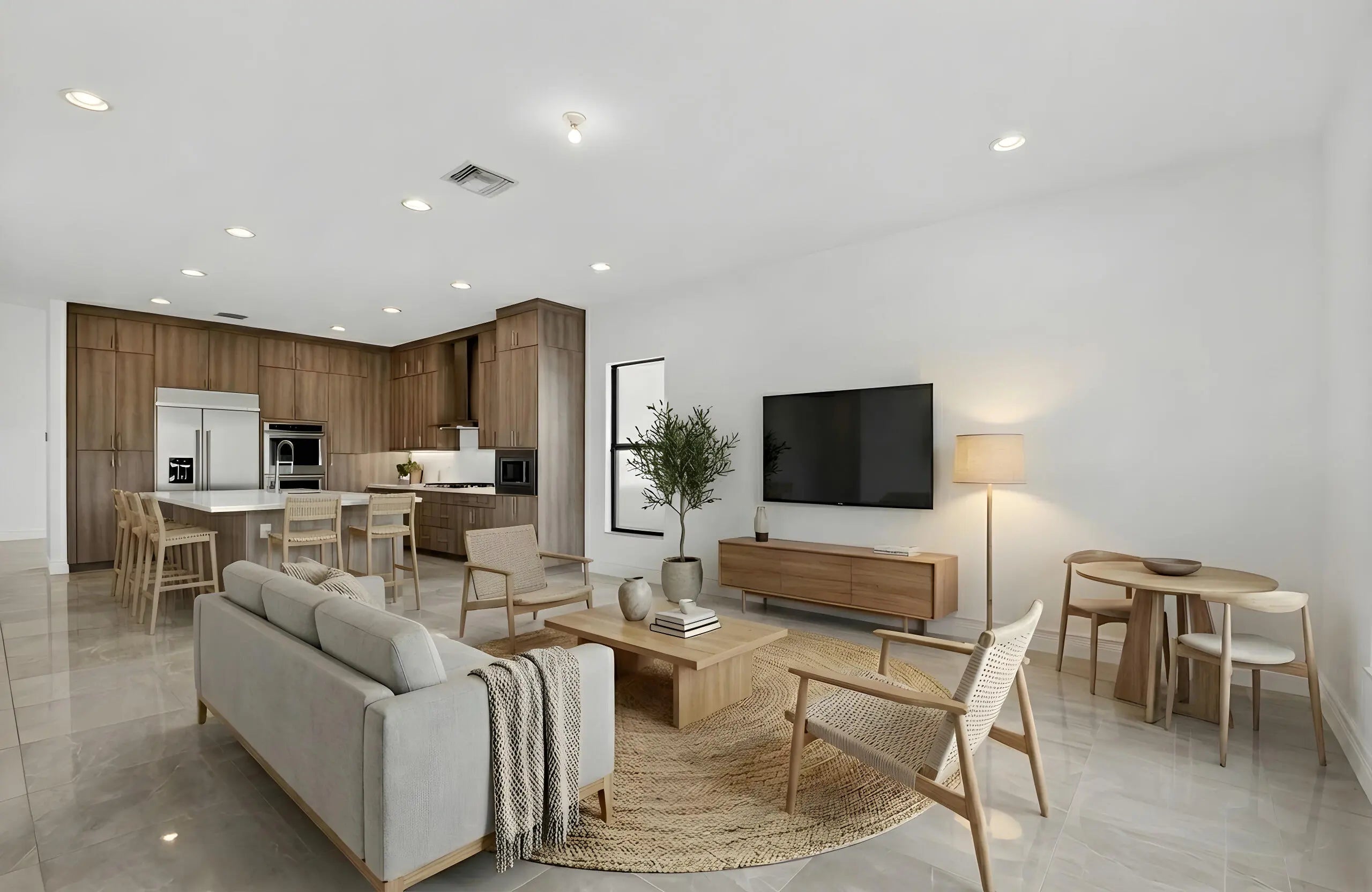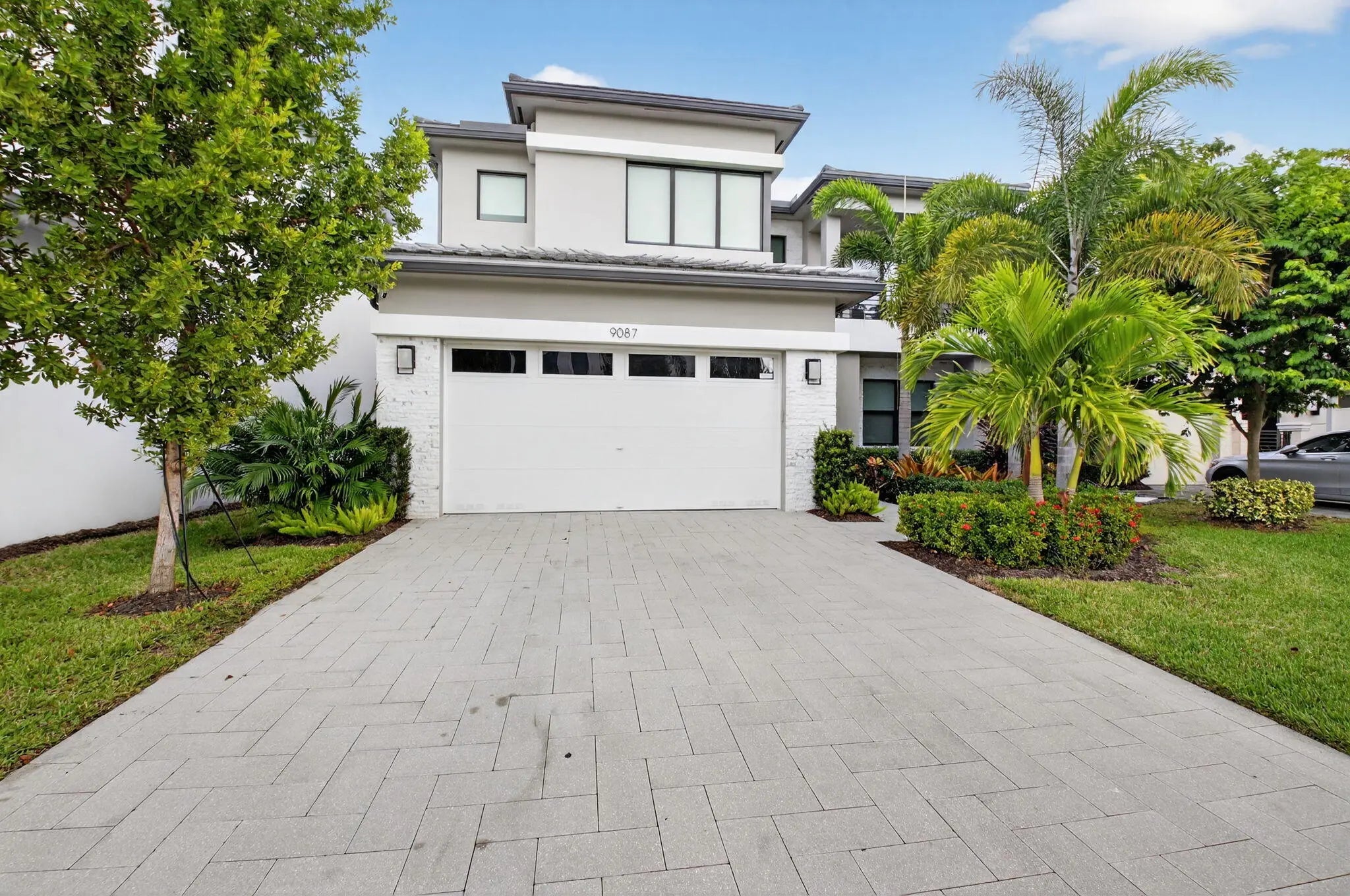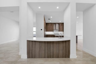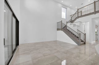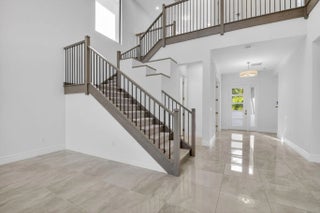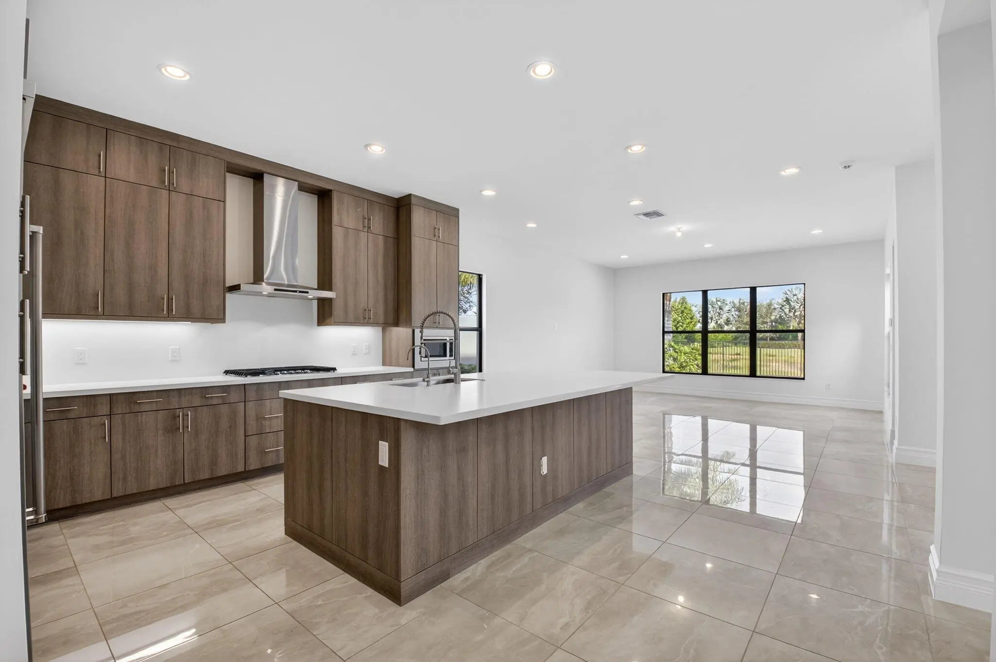 Experience refined contemporary living in this stunning residence with a sleek a contemporary look, striking white stone & soft taupe exterior finishes, perfectly positioned on a north-facing waterfront lot offering tranquil water views & exceptional natural light. The well designed home offers 4 bdrms with an optional 5th bdrm, 4 full bths, & 1 powder bath, providing flexibility for family, guests, or a home office. Porcelain tile flooring flows throughout the main level, while plush carpeting adds comfort to the bedrooms. The gourmet kitchen is appointed with quartz countertops, premium KitchenAid appliances, & open family & living rooms-ideal for both everyday living & entertaining. A stylish wet bar adds to the home's entertainment appeal. Upstairs, a spacious loft area & private balcony create inviting spaces to relax & unwind. Enjoy Florida living at its finest with a summer kitchen, heated pool, & fenced yard, all overlooking the serene water backdrop. Additional highlights include a 2-car garage with epoxy flooring, UV-light enhanced air conditioning systems, frog fence, & a well-proportioned 7,484-square-foot lot. This exceptional residence blends modern elegance, thoughtful upgrades, & resort-style livingan opportunity to truly love where you live.