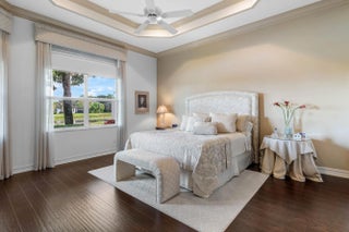 *New Beautiful Clubhouse Renovation* This popular Julia model sits on a lovely lakefront lot. The home (3/3.1+den+3cg) features lush landscaping, screened portico entrance, glass double door entry, transom windows, tile on diagonal, solid core doors, crown moldings, designer window treatments & light fixtures, hi-hats, fans, upgraded baths & more! The gourmet kitchen features wood cabinets, granite countertops with full height backsplash, snack bar with tile apron, breakfast nook and all the bells & whistles! Formal dining room. The primary suite has luxury vinyl plank flooring, two walk-in custom closets and a luxurious bath. There are two ensuite guest bedrooms and a den with pocket doors and built-in desk unit. The covered extended patio with ''birdcage'' screen overlooks the lake! ***You'll love the newly and beautifully renovated clubhouse that just reopened in December 2025!*** Valencia Reserve is a premier 55+ lifestyle community with a full-time Lifestyle Director. The community offers activities, trips, shows and clubs of all types. The 14 acre waterfront recreation center includes a newly renovated (December 2025) 41,000 square feet clubhouse with expansive foyer and lobby, grand ballroom with raised stage and dance floor, catering kitchen/cooking studio, arts and crafts center, four card rooms, internet/billiards room, fully equipped fitness center, two aerobics studios, men's and women's locker rooms with steam rooms and massage room, indoor/outdoor café and more! There are three pools - a beautiful resort style pool, resistance pool, swimmer's pool with lap lanes - and a whirlpool spa. There are nine har-tru tennis courts with shade pavilions and lighting for night play, tennis pro shop and league play and walking/jogging/biking paths outside the community. There are four pickleball courts and league play. Valencia Reserve is conveniently located near shopping, restaurants, hospitals, houses of worship and major highways!