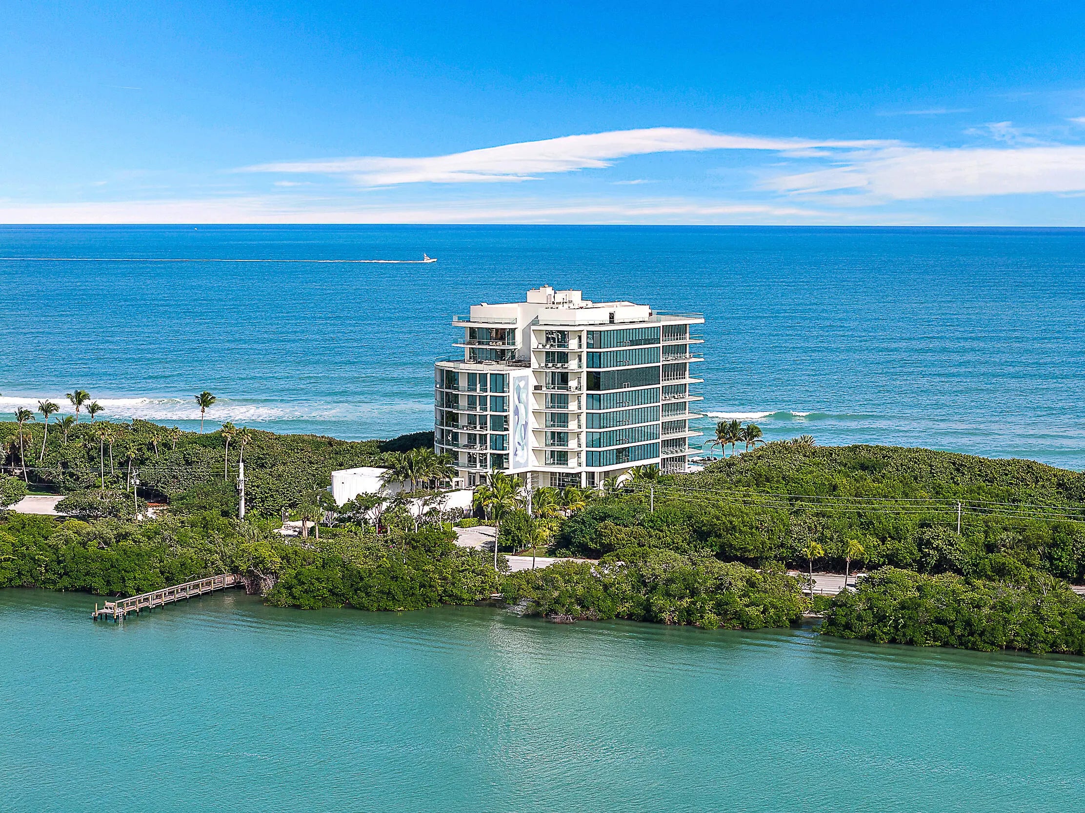 Welcome to SeaGlass on Jupiter Island, an ultra-luxury oceanfront residence offers sweeping Atlantic views and exceptional privacy. With only 21 exclusive residences, SeaGlass offers 24/7 security, resort-style living, and dedicated concierge services. This refined home features an open layout with floor-to-ceiling windows, marble flooring throughout, 3 ensuite bedrooms, club room, oversized terrace with summer kitchen, and a private 2 car garage. The gourmet kitchen is appointed with top-tier appliances, a Miele wine column, dual dishwashers, and custom Snaidero cabinetry. The primary suite offers terrace access, multiple closets, and his and her baths. Amenities include a 24-hour staffed lobby, infinity-edge pool, day dock, fitness center, yoga lawn, club room, fire pit, and pet areas.