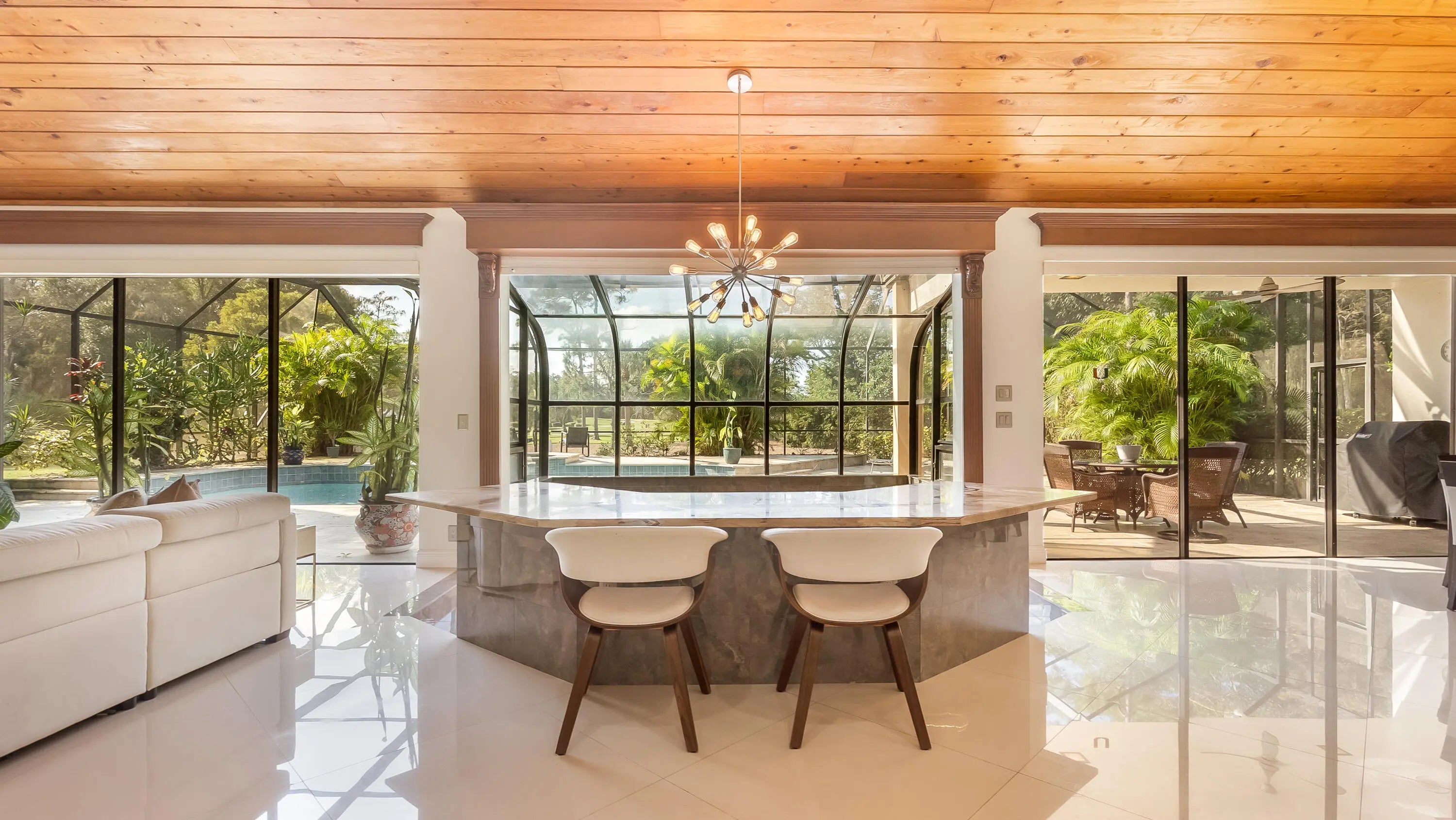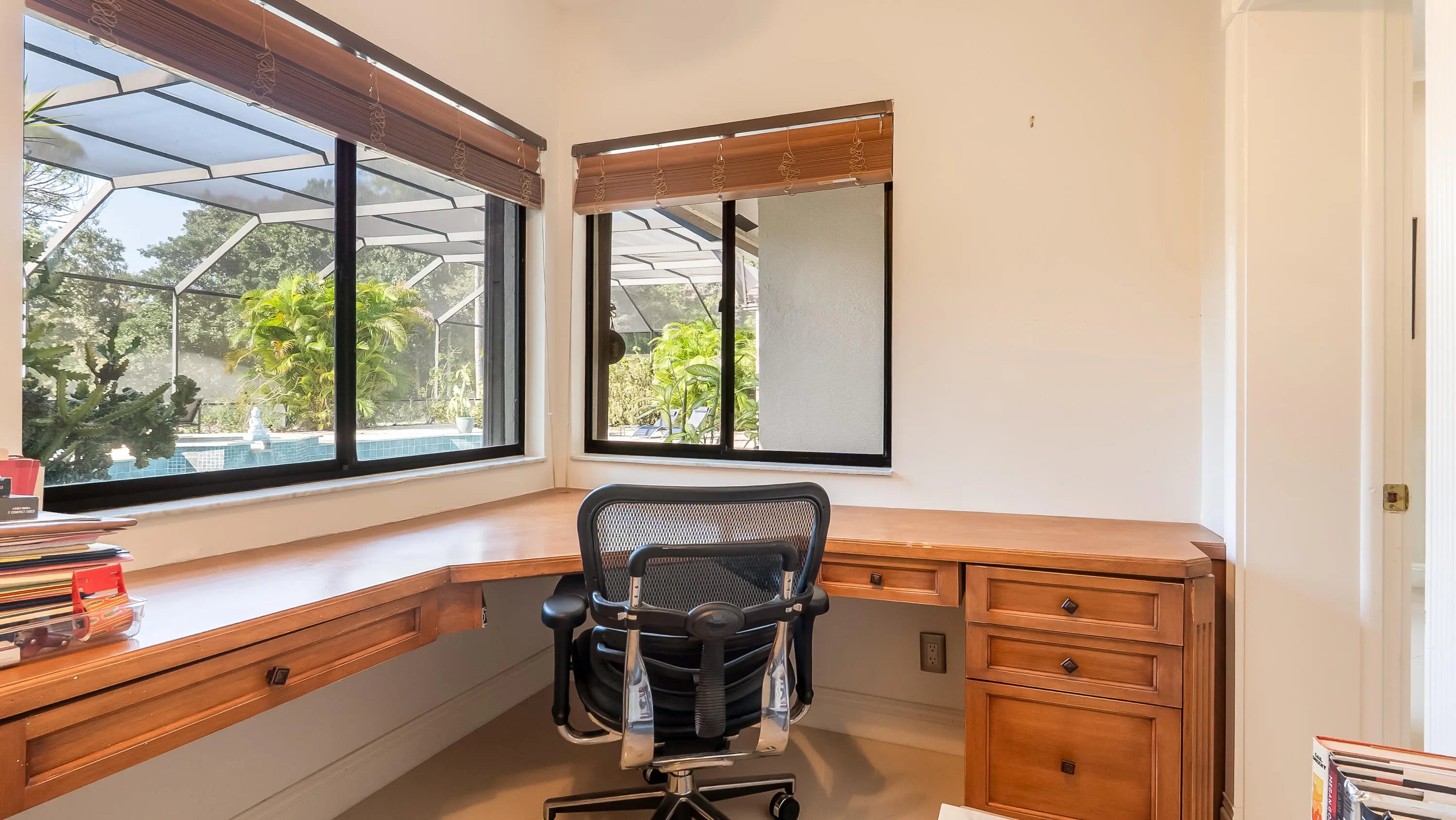 Your private retreat awaits in the heart of Boca Raton on a quiet lot offering exceptional privacy. Enjoy stunning golf course views from your pool and host evenings on the oversized screened patio. Space is never a problem in this 3,168 sq ft home, with open, light-filled rooms, a dine-in kitchen, formal dining room, seating bar, high ceilings, and a spacious living room. The luxurious primary suite features a private office, dual walk-in closets, and spa-style bath. With three bedrooms, a two-car garage plus golf cart parking, and close to clubhouse, this home is perfect for living and the ultimate Boca Woods lifestyle. *Mandatory Golf Membership*.