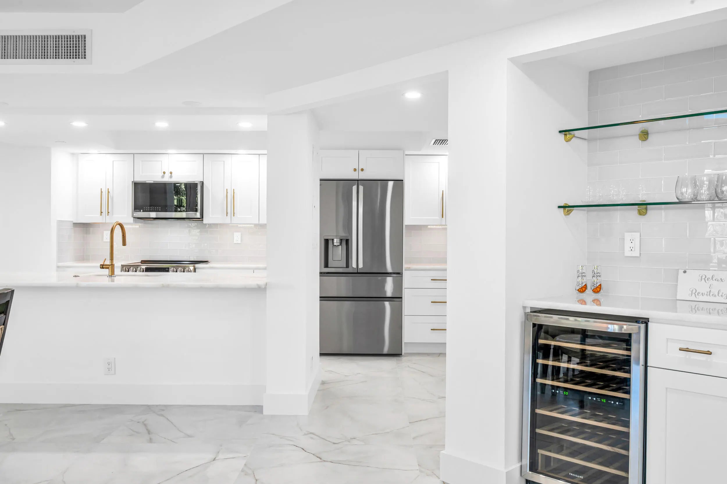 Located within Mizner Village on the exclusive grounds of The Boca Raton, this newly price reduced, fully renovated Mizner Court residence allows you to enjoy the 2026 season immediately. Priced $100,000s below other renovated offerings in this Intracoastal waterfront community, this move-in ready 2BR 2BA 1,785 SF pet friendly condominium allows you to enjoy the lifestyle now without the time, cost, or uncertainty of a post purchase construction project. Modern interior finishes include Duvall white porcelain flooring, a Cristallo quartzite kitchen with glass backsplash, white shaker cabinetry, Brizo Luxe Gold fixtures, Honey Bronze hardware, and new LG appliances. A custom wine bar with quartzite countertop, wine cooler, and glass shelving enhances everyday living and entertaining, while new impact windows and doors provide added quiet comfort and security. Enjoy peaceful private tree lined balcony views within one of East Boca Raton's most desirable waterfront communities. Optional 35-foot boat slip available at additional cost. Mizner Court residents benefit from 800' of bulkhead and 13 waterfront acres of resort style amenities including two heated pools, four spas, Har Tru tennis courts, 2 fitness centers, 24-slip marina with guest dockage, EV charging, garage parking, and 24 hour security all moments from Lake Boca, on the Intracoastal Waterway, beaches, dining, shopping, and The Boca Raton. Optional resort membership available. Take advantage of one of the lowest priced renovated opportunities in the community and enjoy ownership immediately.