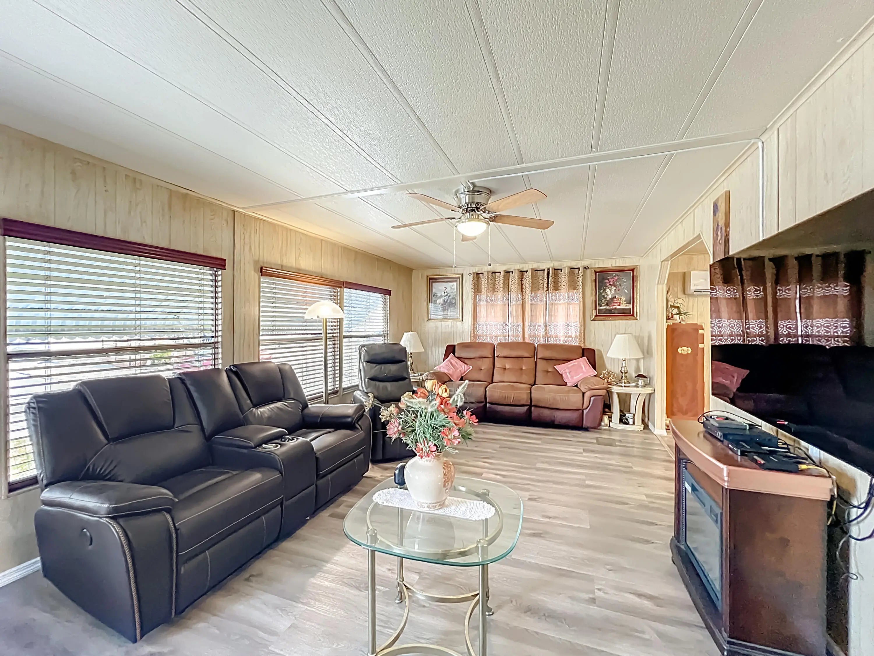 Discover comfortable living in this charming 2-bedroom, 2-bath manufactured home located in a 55+ community in Ponderosa Park. Low HOA. Situated in a no-flood zone, this property is ideal for downsizing or first-time homebuyers seeking affordability and peace of mind. The open floor plan creates a warm, inviting atmosphere that's perfect for entertaining or relaxing. Both bedrooms are spacious, complemented by two full bathrooms for added convenience. To maximize comfort and efficiency, the home includes three brand-new mini split A/C units strategically placed throughout—helping you save on electricity by reducing the need for central HVAC use. With low-maintenance living in a desirable location, this home is a wonderful opportunity you won't want to miss!