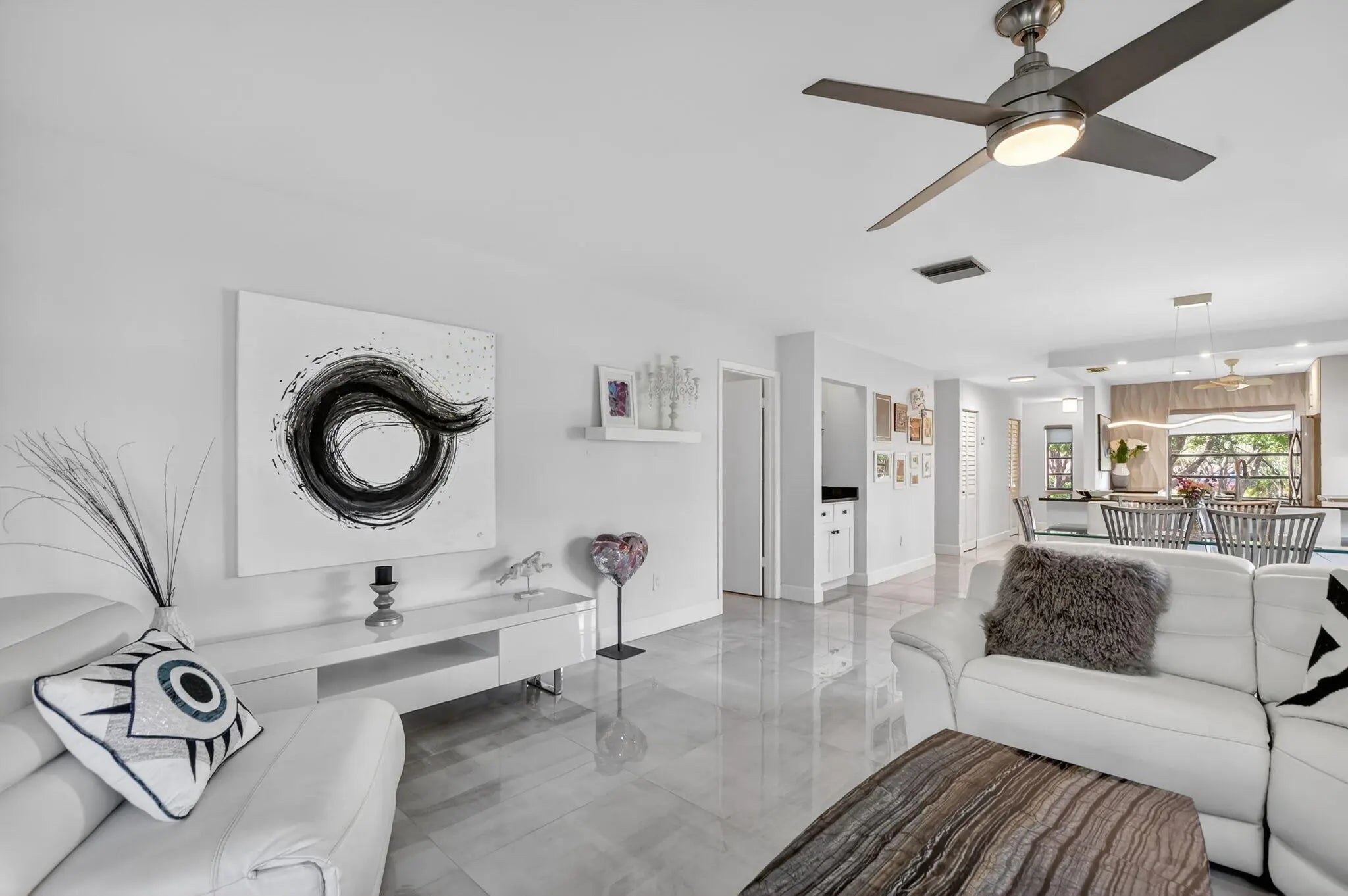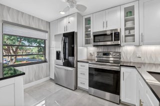 OWNER SAYS BRING OFFERS! Beautifully updated 2-bedroom, 2-bath end-unit condo w/ NEW ROOF located in the active Boca Lago Country Club community. Can be sold furnished or unfurnished. This end unit allows abundant natural light to cascade throughout, enhancing the open & airy layout. The home features oversized porcelain flooring throughout the main living areas, creating a seamless & elegant aesthetic. The renovated kitchen is both stylish & functional, showcasing shaker cabinetry, granite countertops, a chic tile backsplash, a large island, along w/ a butler's cabinet for additional storage and a new refrigerator perfect for entertaining or everyday living. The unit has been elegantly & thoughtfully upgraded, including sophisticated modern light fixtures throughout, & features a ... custom bar cabinet ideal for hosting guests. The primary suite features a fully renovated en-suite bath with modern cabinetry, beautiful contemporary fixtures, and a walk-in shower with frameless glass doors. The guest bathroom has also been updated with new cabinetry, granite countertops, updated fixtures, and flooring, providing a cohesive and modern design throughout. Enjoy indoor-outdoor living in the spacious screened lanai, offering serene lake and golf course views, creating a tranquil setting for morning coffee or evening relaxation. Additional features include: New roof (2025) Samsung front-load washer & dryer (approx. 5 years old) Boca Lago is a gated, beautifully landscaped active community offering resort-style amenities, including an 18-hole championship golf course (Membership OPTIONAL), clubhouse, fitness center, tennis, bocce courts, and multiple swimming pools. You'll enjoy an active clubhouse acroos the street from this unit ... offering many activiities such as water aerobics, Mahjong, card games, bingo, book club and a pool tabe table just to name a few. Conveniently located close to shopping, dining, major highways, and Boca Raton's renowned beaches.