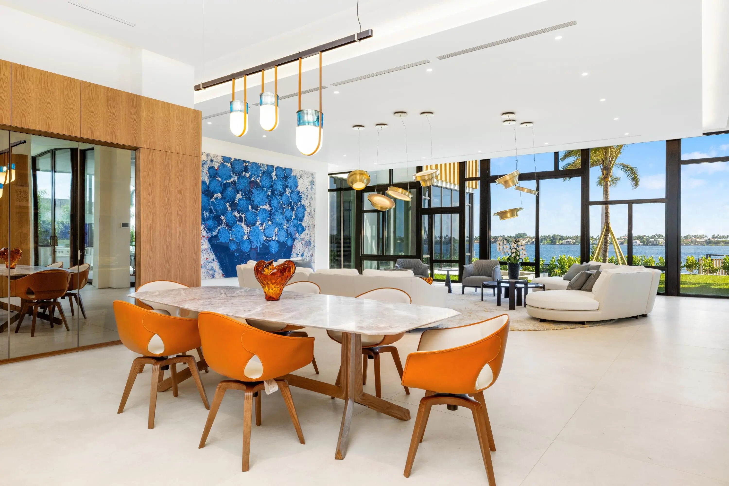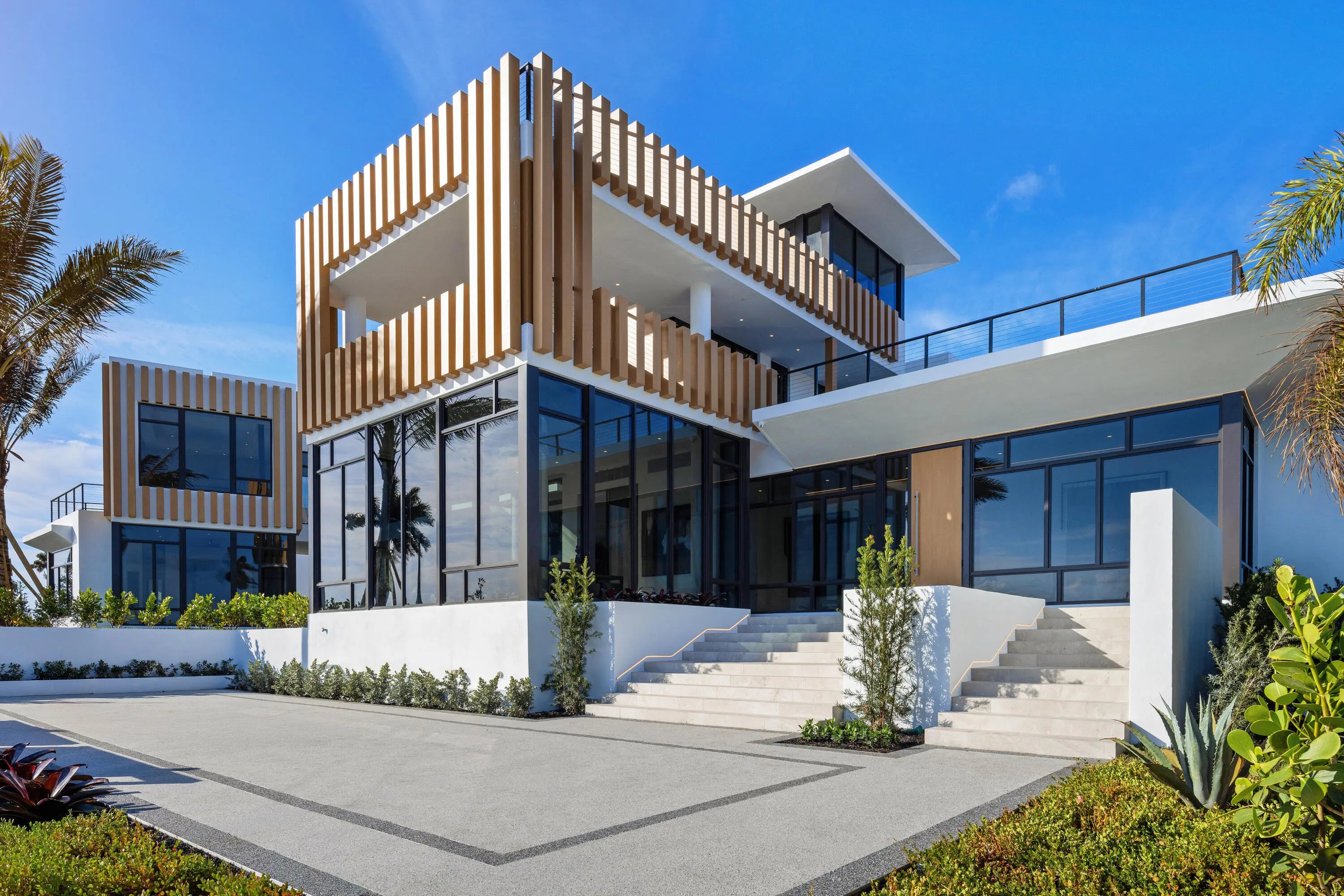 JUST COMPLETED! NEW PHOTOS. Perched on the Intracoastal Waterway overlooking Palm Beach Island's mega mansions, this BESPOKE waterfront new construction is one of the most exceptional homes ever brought to the market in West Palm Beach. Ideally located just minutes to Palm Beach Island and PBI airport, the residence offers approximately. 13,370 SF of full-blown luxury. Highlights include a second story-pool and spa with 180-degree water views, outdoor cocktail bar, multiple outdoor cooking areas, private cinema, wine room, spa and expansive indoor-outdoor living. Every room opens to breathtaking water views. A 100' deep-water dock accommodates large yachts, creating a true next-level waterfront lifestyle experience. Poltrona Frau custom kitchens, closets, and furnishings. 2 full kitchens.
