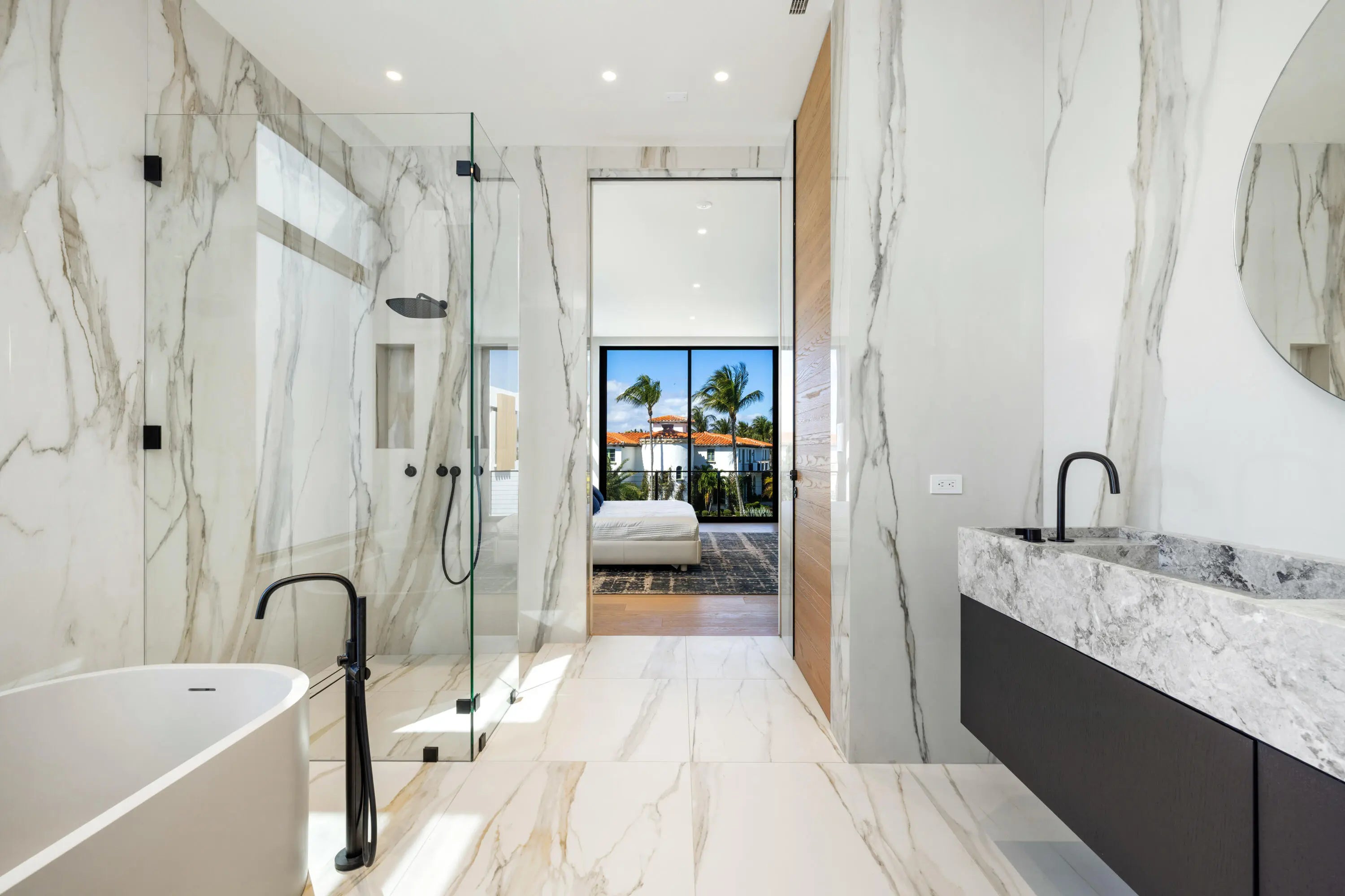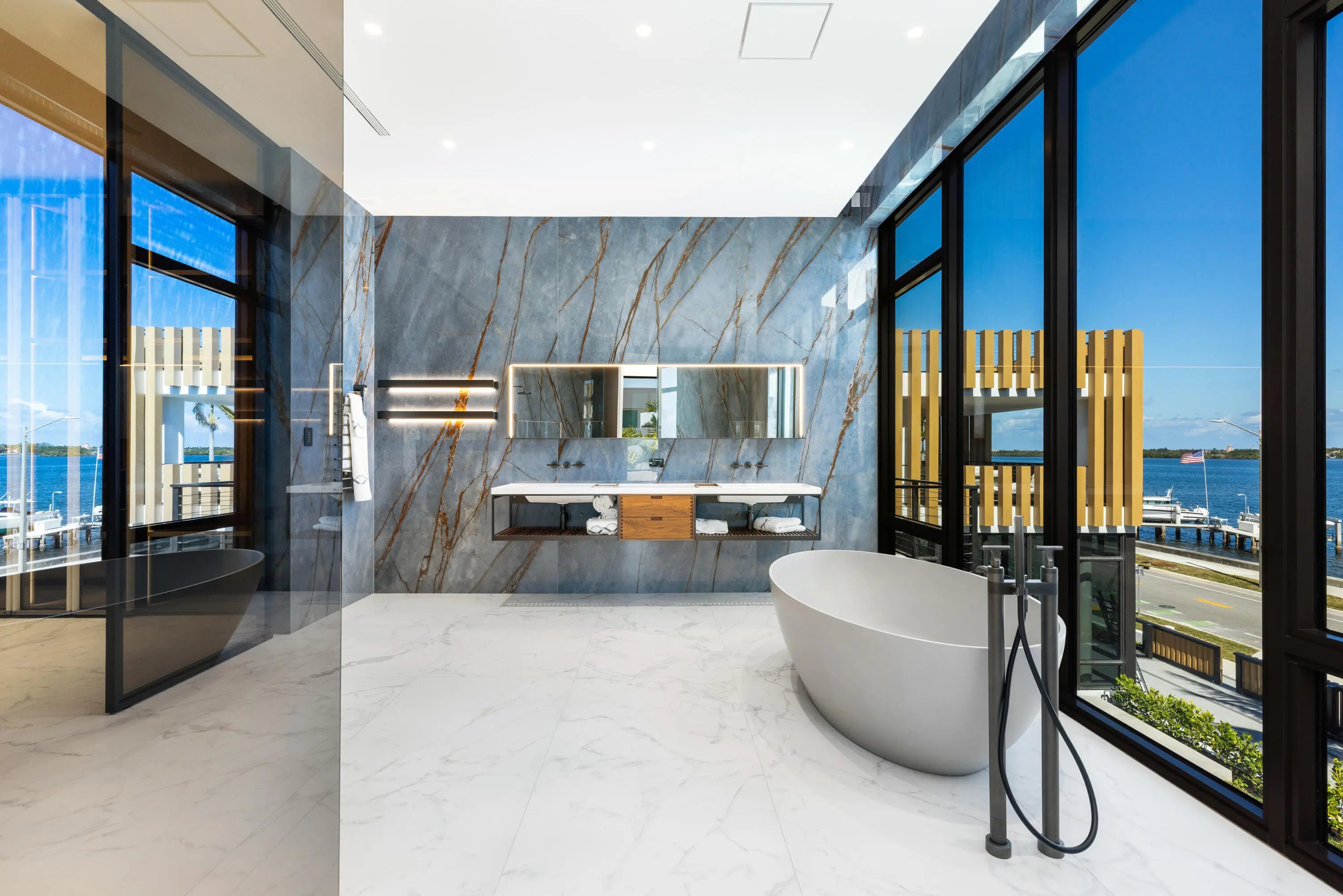 THIS HOME IS A LIFESTYLE. Perched on the Intracoastal Waterway overlooking Palm Beach Island's mega mansions, this BESPOKE waterfront new construction is one of the most exceptional homes ever brought to the market in West Palm Beach. Ideally located just minutes to Palm Beach Island and PBI airport, the residence offers approximately. 13,370 SF of full-blown luxury. Highlights include a second story-pool and spa with 180-degree water views, outdoor cocktail bar, multiple outdoor cooking areas, private cinema, wine room, spa and expansive indoor-outdoor living. Every room opens to breathtaking water views. A 100' deep-water dock accommodates large yachts, creating a true next-level waterfront lifestyle experience. Poltrona Frau custom kitchens, closets, and furnishings. 2 full kitchens.