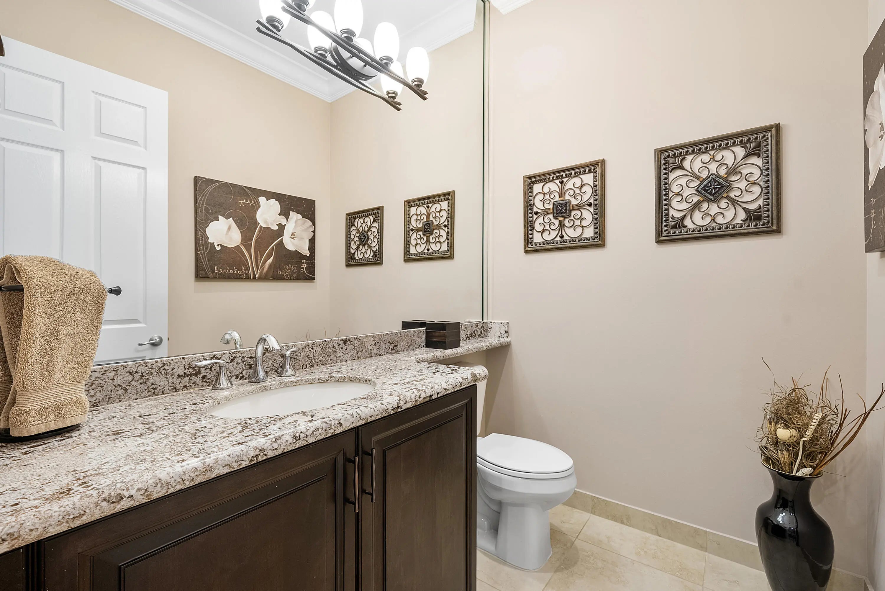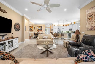 Beautiful 2/2.1+den Atlantic Grande model on lushly landscaped private lot. The home, with open concept plan, has impact windows, phantom screen, porcelain tile, crown moldings, plantation shutters, light fixtures, hi-hats, fans & upgraded baths. The gourmet kitchen has white wood cabinetry, pantry cabinet with drawers & pull-outs, granite countertops, tile backsplash, stainless steel appliances and all the bells & whistles! There is a large counter depth snack bar with pendant lights, separate breakfast area and a dining room. The great room sliders have Hunter Douglas luminettes. Master suite with tile floor, outfitted closets and luxurious bath. Ensuite guest suite. Den with glass French doors & built-in desk unit. You'll love the wraparound screened porch and extended open patio area. Valencia Cove is a premier 55+ lifestyle community featuring a spectacular 39,000 square-foot clubhouse and 10 acre outdoor recreational facility. Endless activities and opportunities for fun abound - there are activities, trips, shows, and clubs of all types. The clubhouse features an expansive foyer and lobby, grand ballroom with raised stage and dance floor, four spacious card rooms, Cafe with indoor/outdoor seating, Arts and crafts room with kiln, Internet/Billiards room, Office, Catering kitchen with separate demonstration cooking studio, Yoga & exercise studio with ping pong, fully equipped fitness center and men's and women's locker rooms with steam rooms, massage room and showers. There are four pools - a beautiful Resort-style pool and Shade Pavilions, Lap pool with Swimmers' Lap Lanes, Resistance walking pool, Grandchildren's wading pool, and an Outdoor whirlpool spa. There are eight har-tru tennis courts with shade pavilions and lighting for night play, tennis pro shop, tennis pro, league play, six pickleball courts, pickleball pro, league play, 2 bocce courts, league play, half-court basketball and walking/jogging/biking paths throughout and just outside the community. Valencia Cove is conveniently located near shopping, restaurants, houses of worship and major highways!