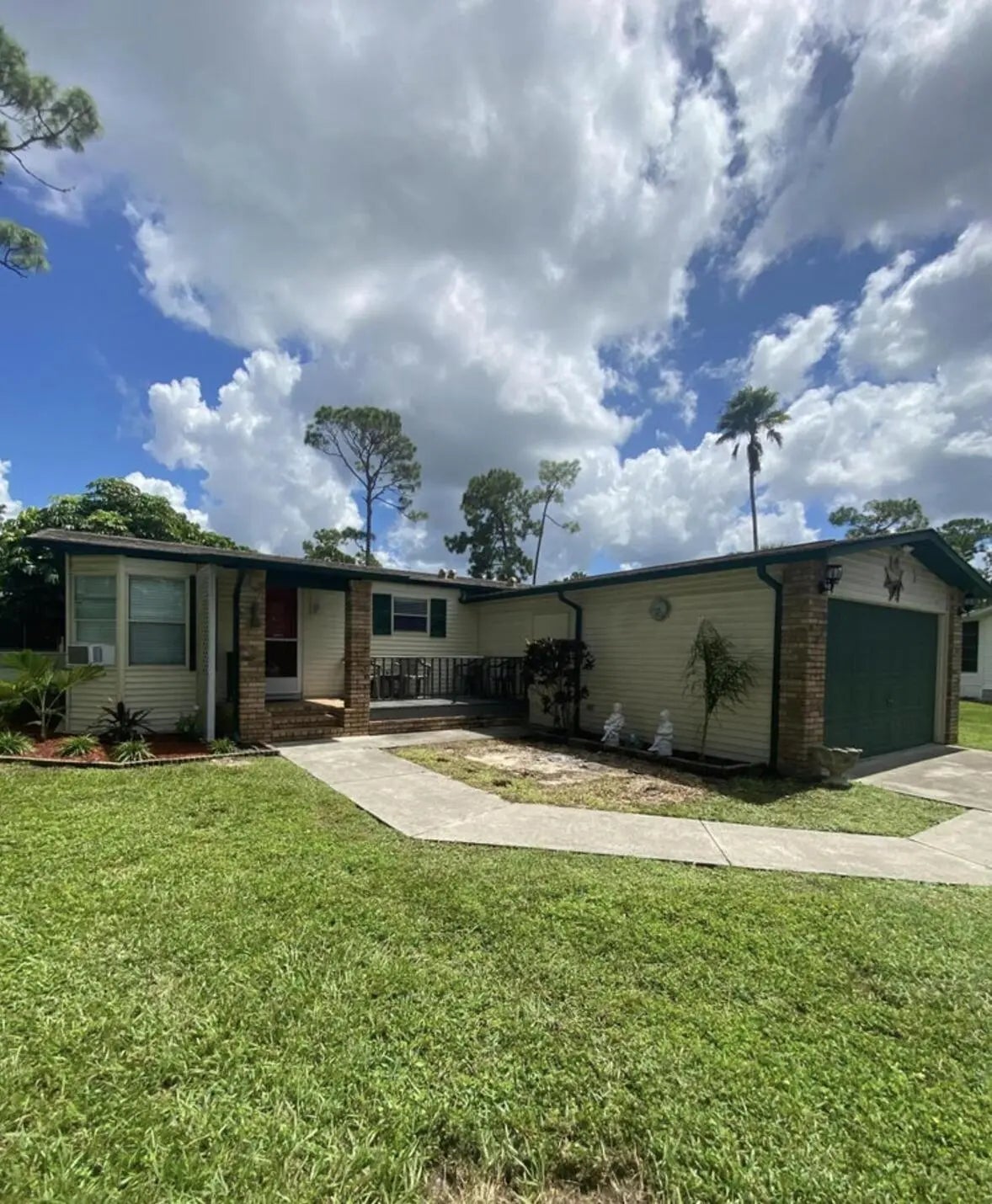 Experience the serene lifestyle of Pine Lakes Country Club in North Fort Myers! This fully furnished 2-bedroom, 2-bathroom home with a garage offers a peaceful retreat within a friendly, guard-gated golf course community. Enjoy over 40 acres of meticulously maintained resort-style amenities, including two executive golf courses, a spacious clubhouse, and breathtaking scenic views. Conveniently located near shopping, dining, places of worship, and medical facilities. Inside, you'll find new vinyl plank flooring, a king-sized owner's suite with a private bath (featuring a new shower with glass doors and an updated vanity), and a window AC unit in the second bedroom for added comfort. Currently AirB&B w/ 5 star rating.