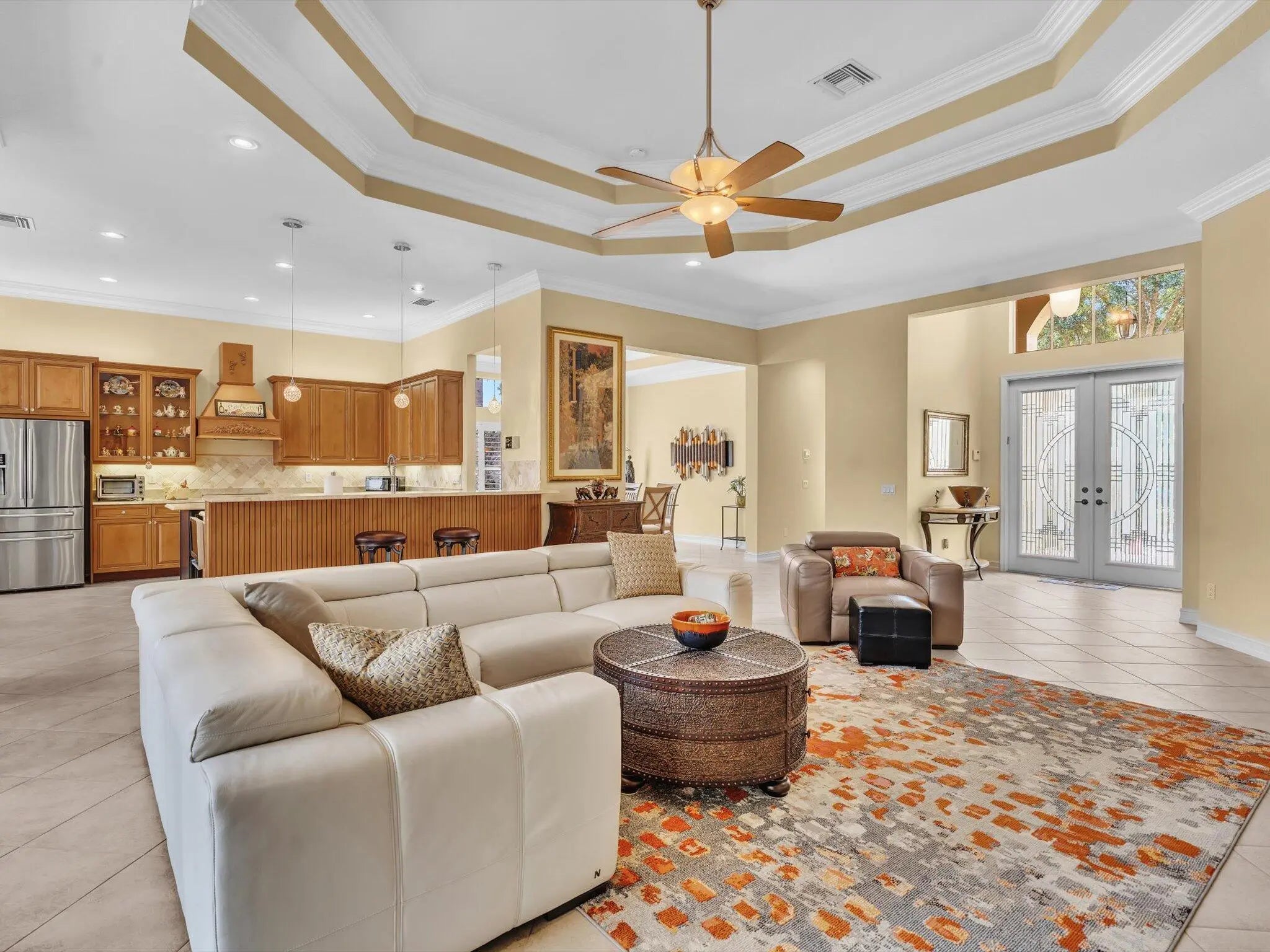 Desirable Pamplona model featuring two bedrooms plus a flexible third bedroom/den, 2.5 baths and an open-concept great room that creates an elegant flow for living and entertaining. The dedicated dining room offers a welcoming setting for intimate dinners or holiday gatherings. The screened covered patio extends the living space outdoors for year round enjoyment. A 2-car garage provides convenient parking and extra storage completing this beautifully designed home that combines comfort, style and South Florida ease of living. Live the Country Club lifestyle without paying Country Club fees. Valencia Pointe is a 690-home 55+ community in beautiful Palm Beach County, Florida. Acres of tranquil lakes and miles of walking paths set a lovely backdrop for the community's 35,000-square-foot clubhouse and lifestyle center. Staffed gated entry with 24-hour security. Two additional private entrances for VP Residents from both Publix Shopping Center and Hagen Ranch Road. Grand social hall with raised stage and dance floor, fitness center, aerobics studio, billiard room, poker room, VP Cafe, 3 card playing rooms and an arts & crafts room. Complimentary WIFI at Pool and Clubhouse. Resort-style pool and lap pool with separate walking resistance pool and outdoor whirlpool spa area. Pools are heated in winter and chilled in summer. Ladies' and mens' locker rooms are equipped with showers, saunas and massage rooms. 6 Har-Tru Tennis Courts, 4 pickleball courts (new 2023), 2 Har-Tru Bocce Courts, full-time social director and tennis pro.