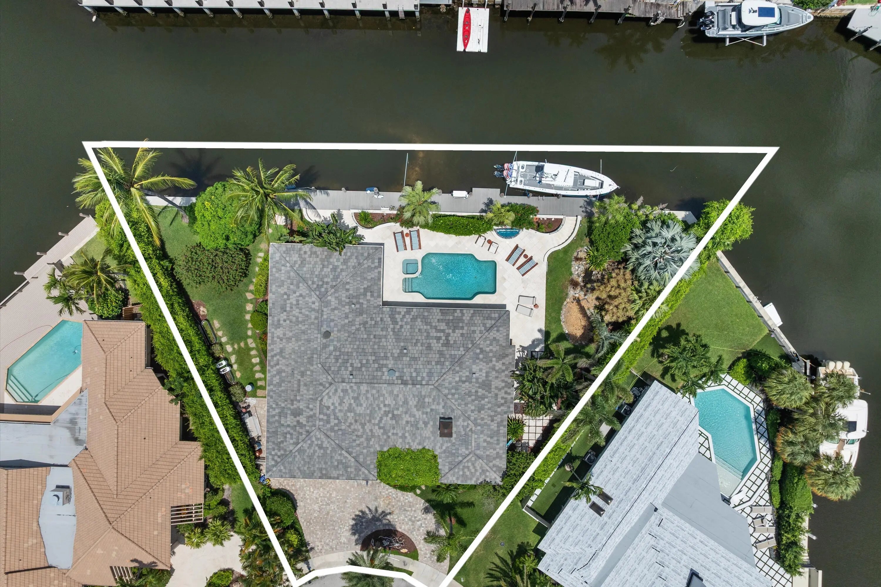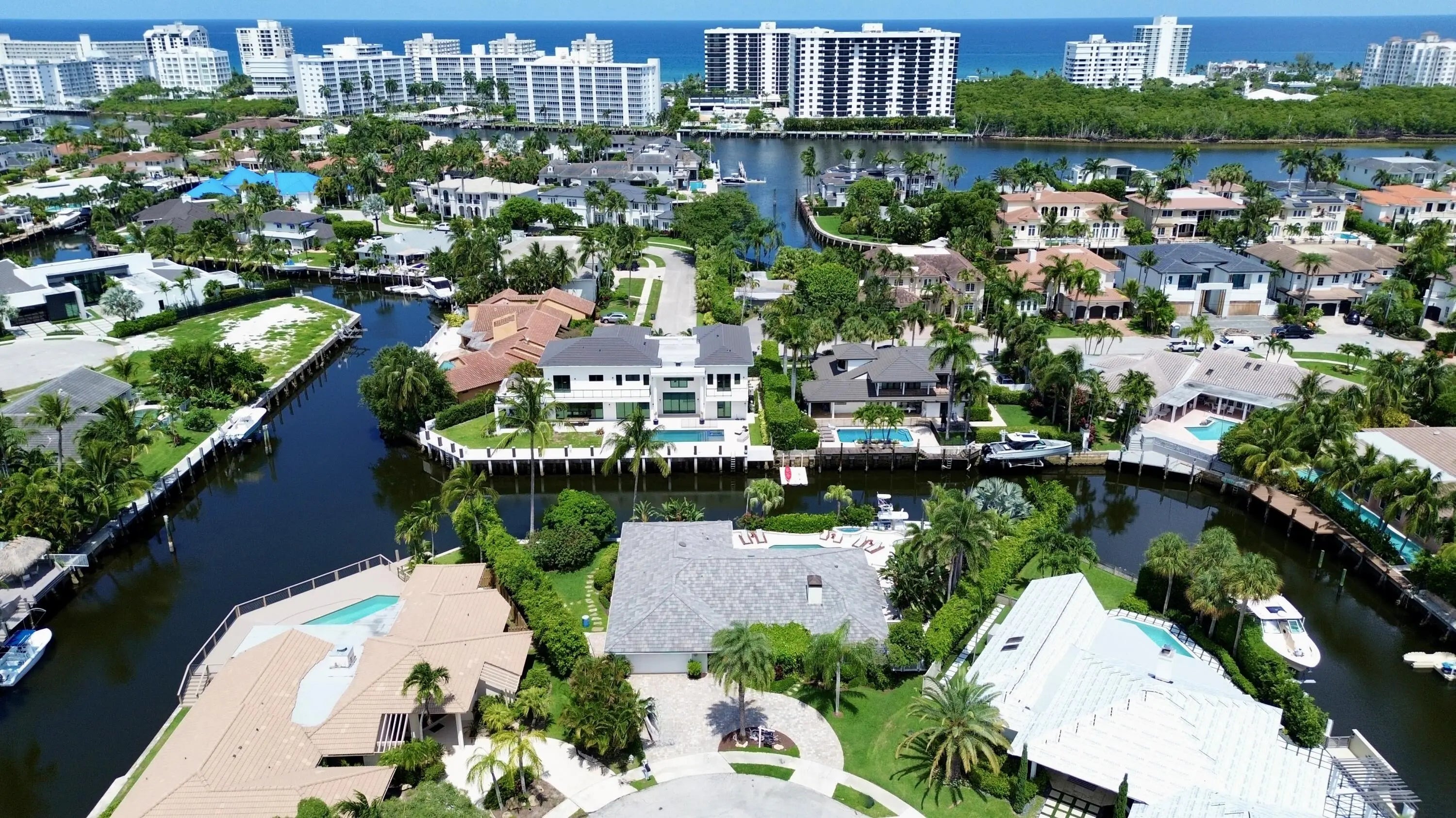 EXCEPTIONAL EAST BOCA RATON HOME WITH 180' OF STRAIGHT WATERFRONT WITH DEEP WATER ACCESS & NO FIXED BRIDGES! Perched at the end of a cul de sac peninsula, this coastal stunner is highlighted by a massive 100 foot dock (2015) capable of housing a fleet of boats! Complete impact windows & doors (2014), concrete tile roof (2014) & a massive 13,500 sq foot lot make this property a stunning South Florida value. Step into coastal breezes & island serenity perched above the water. Ideally located between downtown Boca Raton & Atlantic Avenue, Boca Bay Colony is quickly and quietly becoming a premier east Boca Raton boating destination. With newly-built custom estates, easy ocean access, massive lots, wide streets & buried power lines, see why this neighborhood is the secret no one knows about!
