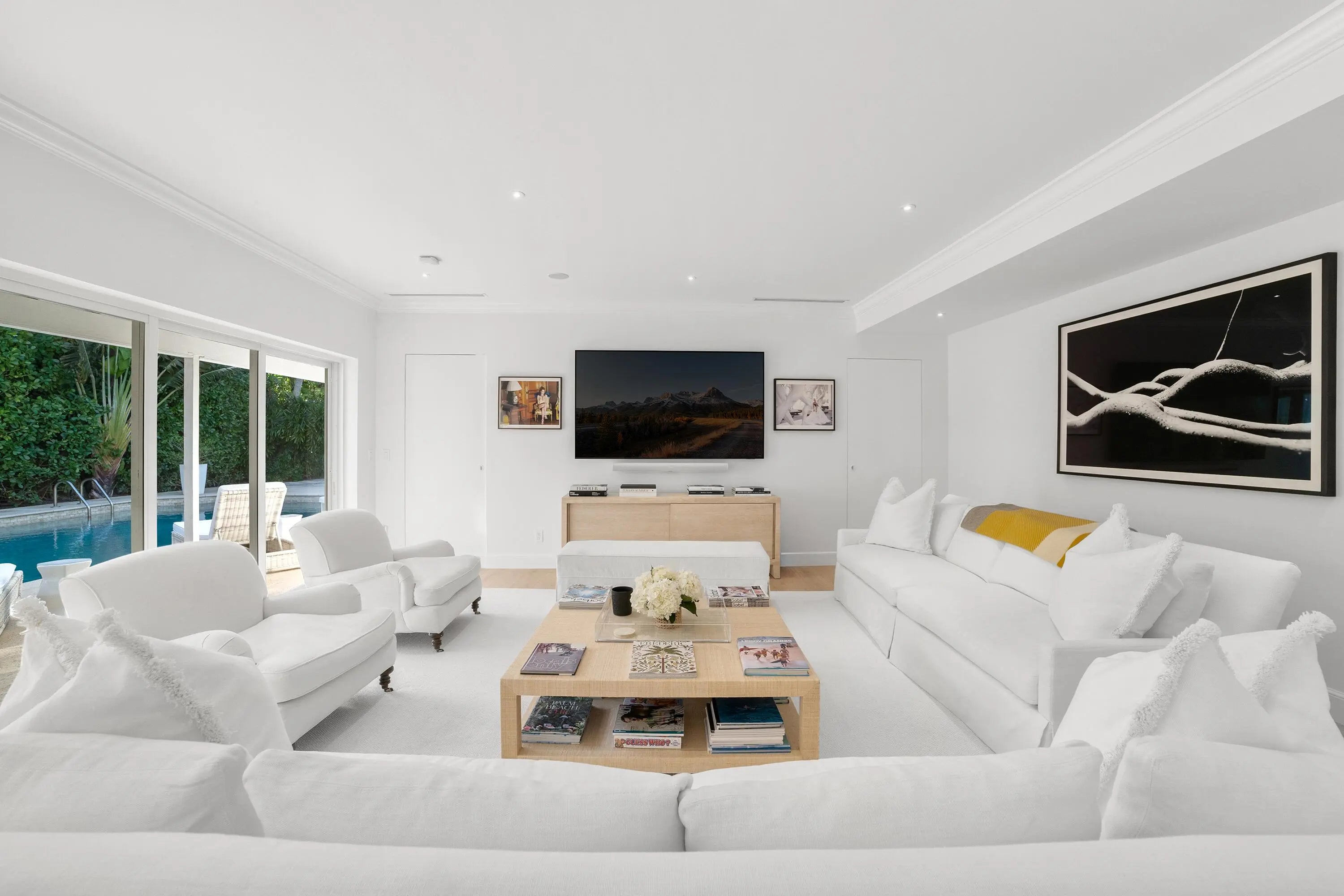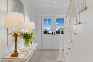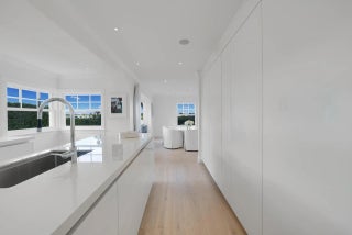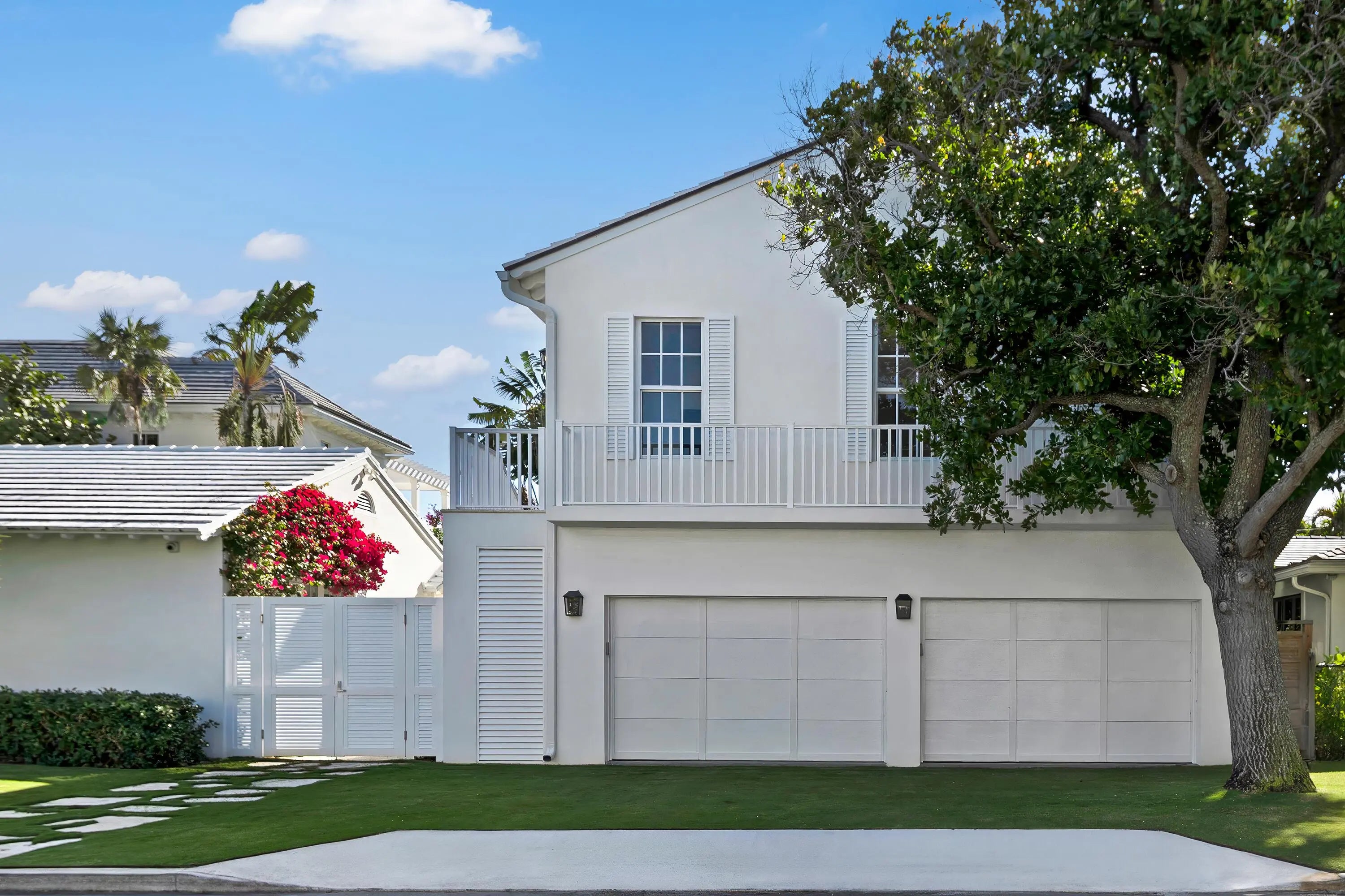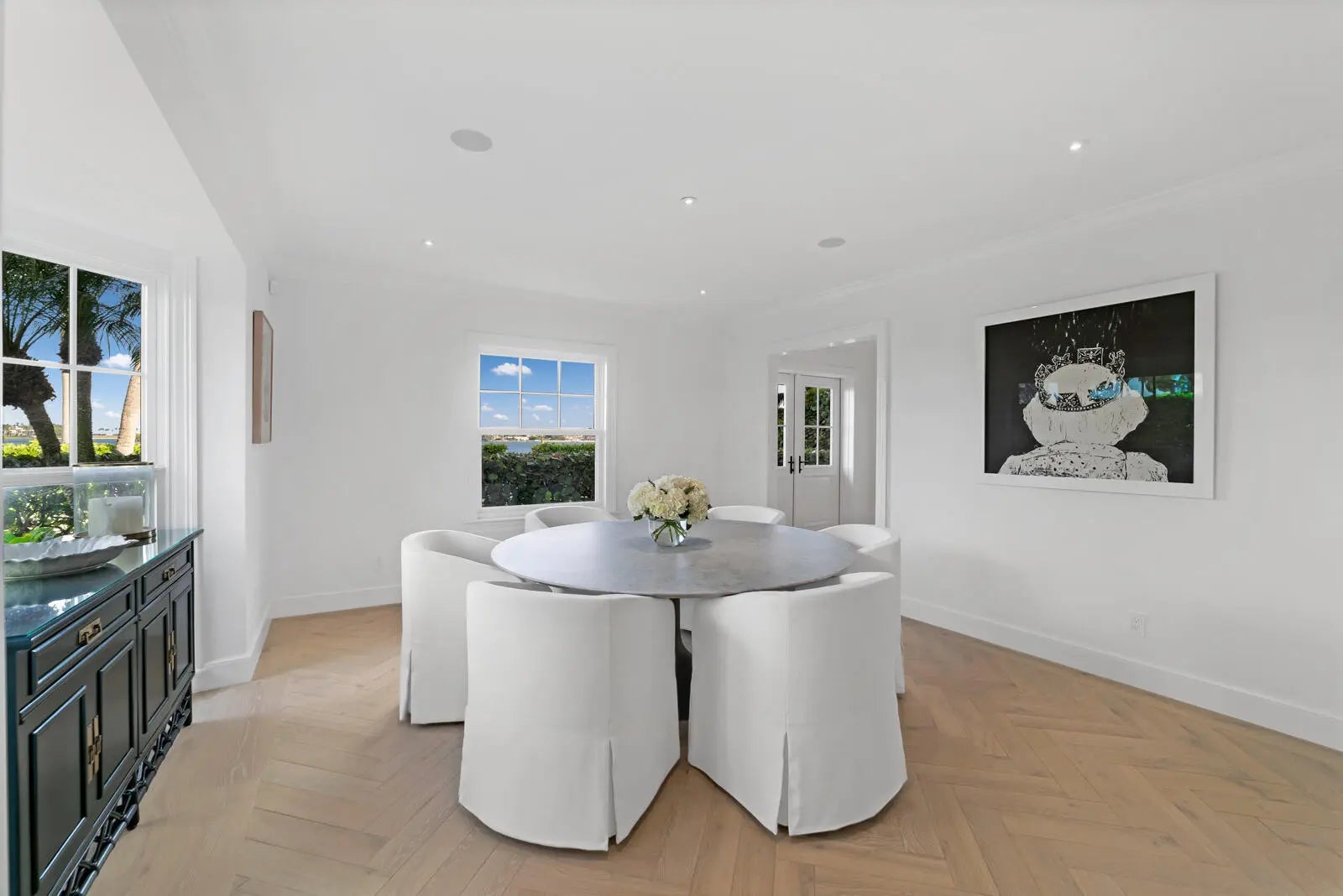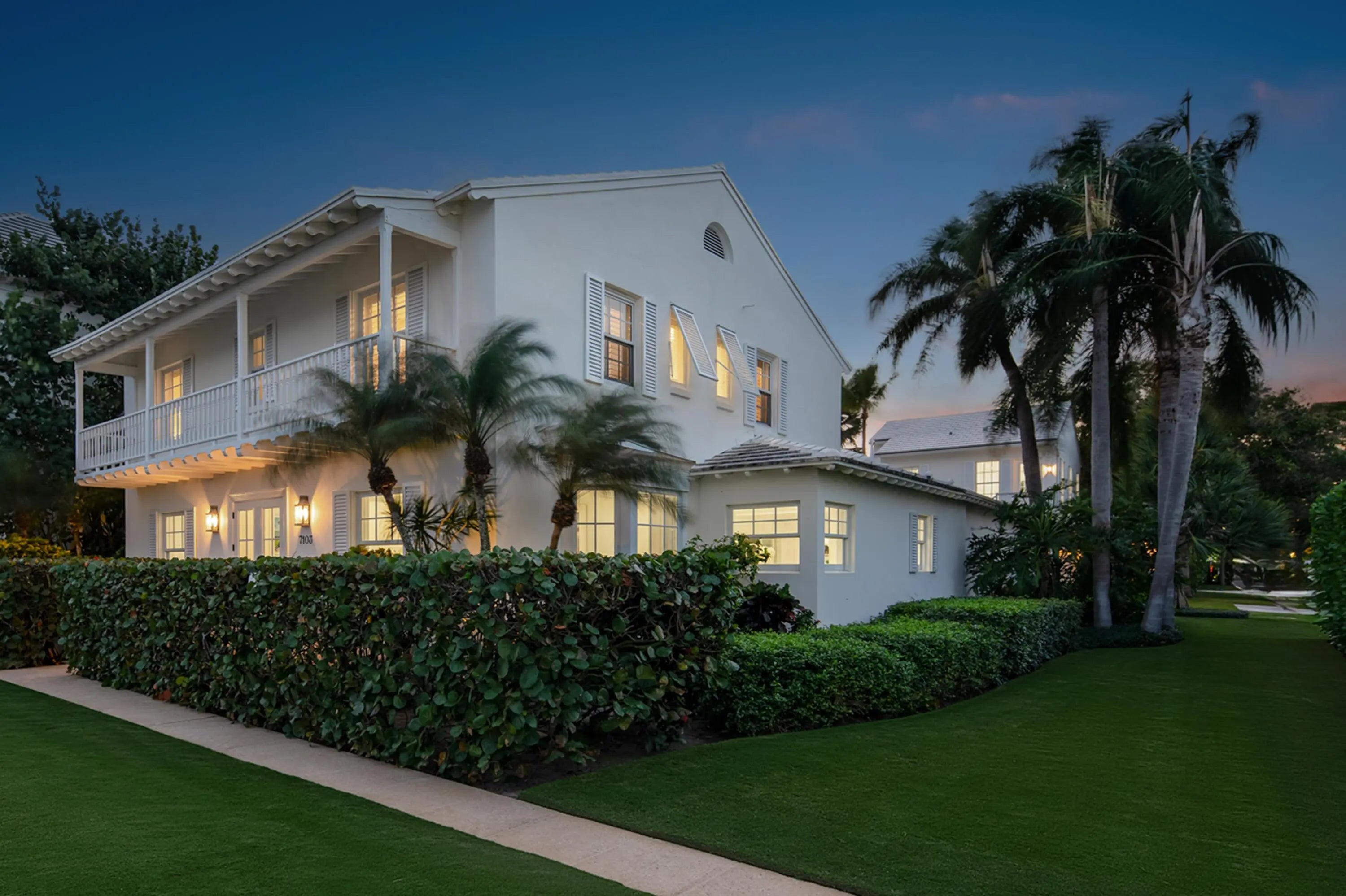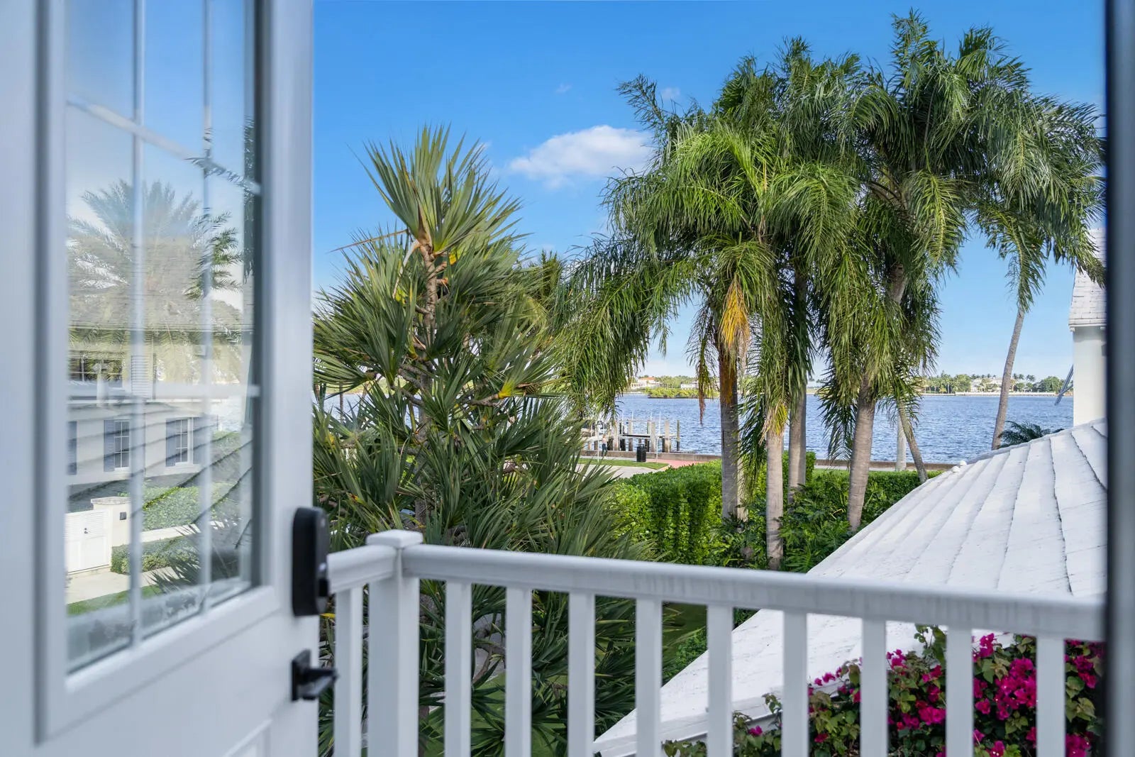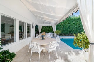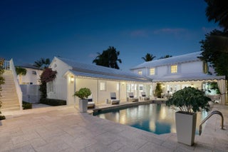Set on a corner lot along South Flagler Drive, this West Palm Beach residence offers 70 feet of Intracoastal frontage on a 12,197+/- square foot lot with a private dock and pool. A thoughtfully integrated addition and a newly constructed guest house with a two-car garage and apartment above further enhance the property's scale, flexibility, and waterfront lifestyle. The residence encompasses approximately 5,712+/- total square feet with five bedrooms, four full bathrooms, and two half bathrooms. From the moment of entry, the home is defined by natural light and sweeping water views. The living room captures the Intracoastal setting, with windows framing the water, and serves as a central gathering space for everyday living. Just beyond, a sunroom with a built-in bar overlooks the pool and loggia and is outfitted with two under-counter refrigerators and an ice maker, well suited for relaxed gatherings and evening occasions. The dining room, featuring herringbone wood floors and a bay window, is surrounded by water views and opens directly to the kitchen, allowing for a natural flow between spaces. The eat-in kitchen is both refined and highly functional, appointed with custom Poggenpohl cabinetry, an internationally recognized German brand known for its precision engineering, clean lines, and exceptional craftsmanship. Dacor appliances include an induction cooktop, large refrigerator and freezer, and two dishwashers, complemented by extensive integrated storage and a dedicated coffee bar. A substantial island, with additional storage, anchors the space and opens to the family room, creating a comfortable layout for daily living. The family room overlooks the pool and terrace, with sliding glass doors enhancing the connection to the outdoors. Also on this level are a full laundry room and a well-appointed guest suite, which features a walk-in closet and an en suite bath with dual sinks, a separate tub and shower, and a private water closet. The upper level is dedicated to the primary suite and additional guest accommodations. The primary bedroom enjoys commanding water views and includes a spacious walk-in closet and a serene bathroom with a separate tub and shower. Two additional guest bedrooms are also located upstairs, each with its own closet and sharing a thoughtfully designed bathroom with dual sinks and a walk-in shower. The guest house, located above the air-conditioned two-car garage, offers exceptional flexibility for extended stays. The apartment includes a living room with a full kitchen featuring an induction cooktop, oven, refrigerator and freezer, and a Bosch dishwasher. The guest bedroom includes closets, an en suite bath, and a washer and dryer. Outdoor living is a defining element of the property. The pool area is anchored by a covered loggia and coquina terrace, connected by a long covered breezeway. A generous gathering area on the western side of the pool includes a built-in grill, cabana bath, and outdoor shower, creating a private setting suited for both relaxation and hosting. The private dock is equipped with a 24,000 lb boat lift, electric, and water, providing convenient access to the Intracoastal and complementing the home's waterfront lifestyle. A rare opportunity to own a thoughtfully designed Intracoastal residence with dockage, guest accommodations, and refined interiors, ideally positioned along one of West Palm Beach's most desirable waterfront corridors.