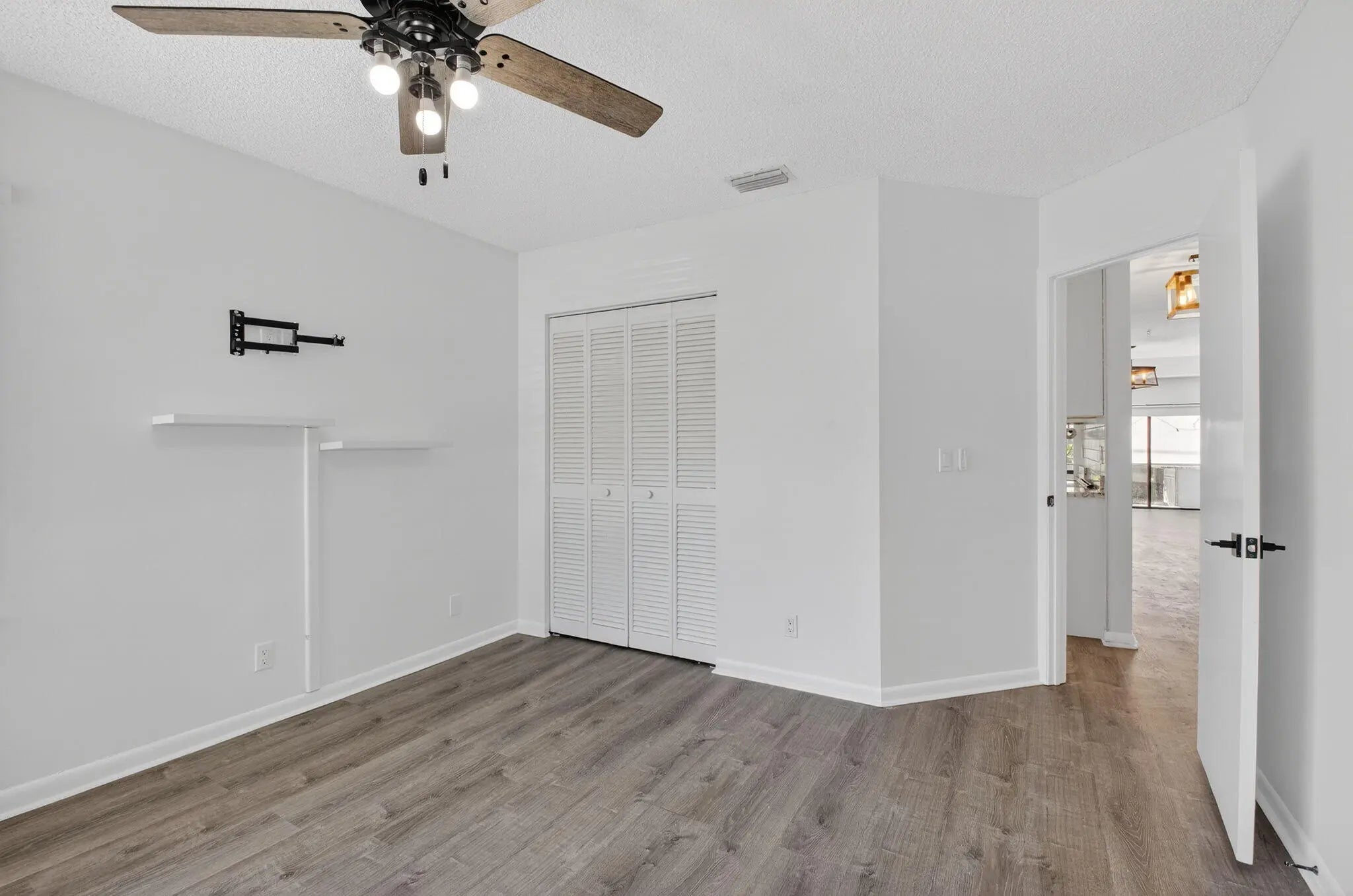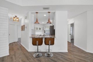 Welcome Home! Come see this beautifully updated 3 bedroom two bath home in Boca Fontana. Complete with wood-look luxury vinyl throughout, high tray ceilings and fresh paint. The beautiful home has white cabinets with a grey and white granite, stainless steel appliances and plenty of room. The open layout overlooks the outdoors and has an accent shiplap wall in the dining room. The primary bedroom overlooks the back patio and has a walk-in closet. The back patio has an area great for entertaining and turf in the backyard. Great schools. Convenient location makes it easy to get to restaurants, shopping or travel. Boca Fontana has tennis courts, pickle ball and two pools. Enjoy the luxury lifestyle Boca Fontana has to offer.