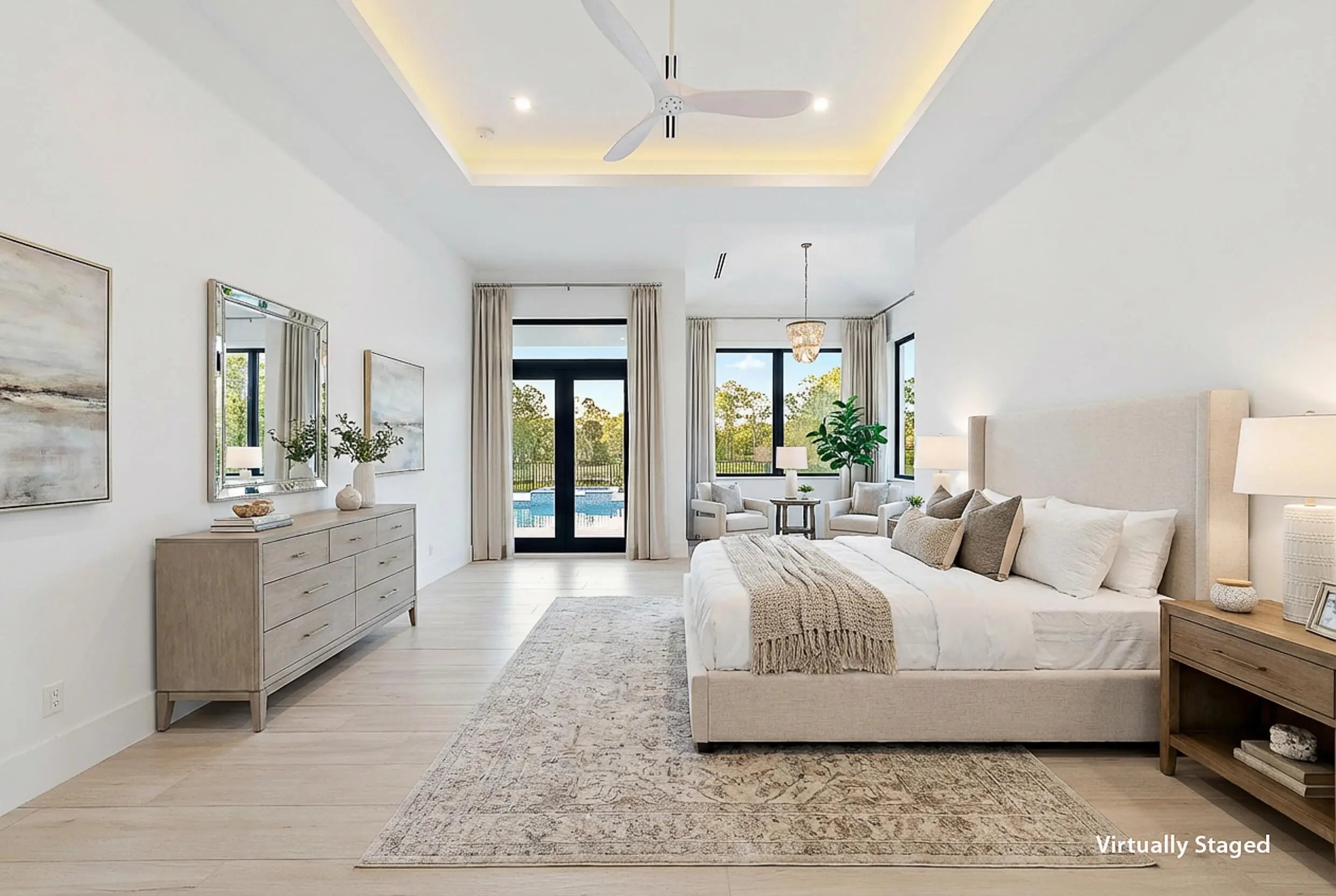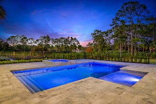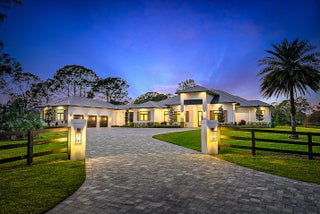 Set within a private estate community of spacious homesites and custom residences, this new construction home spans 6.51 acres, offering privacy, scale, and presence. The home features a modern floor plan with a clean, timeless design. Multiple interior spaces flow to a large covered and open-air outdoor patio with a summer kitchen, built-in speakers, and a heated saltwater pool & spa for seamless indoor-outdoor living. The rear grounds overlook a tranquil pond, with plenty of surrounding green space. A detached four-bay garage with lift-height ceilings connects via breezeway. Flexible for a full equestrian estate or private retreat, the property also allows for a guest quarters or private office. Short hacking distance to the 30-acre community equestrian park, 32 miles of bridle trails, and nearby stables, and just miles to shopping, dining, golf, and beaches. Additional features include full-house reverse osmosis (RO) water system, buried propane, generator hookup, spa-style primary suite, all ensuite secondary bedrooms, dedicated office, and a spacious media/recreation room. Full details list available.