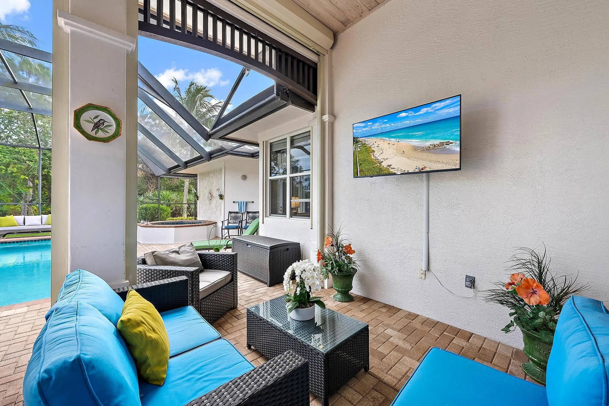 Very well maintained 4/4 courtyard pool home in the prestigious gated community of Medalist Village. Light, bright, with an open floor plan designed for gathering, spills out to a large screened lanai area with pool, spa & preserve views, making this home perfect for a year round or seasonal retreat! Upgrades include: primary suite with new bath/closet/floor, metal roof, spa heater, pool pump, washer/dryer, dishwasher & more - see documents for full list. This move in condition home is in a vibrant community with Greg Norman designed short golf course, Har-Tru tennis courts, fitness center, spa services, popular Pub and more! Close to Jupiter Island beach, restaurants, shopping, and dozens of golf courses. Make this stunning, low maintenance home in a luxury community yours today!