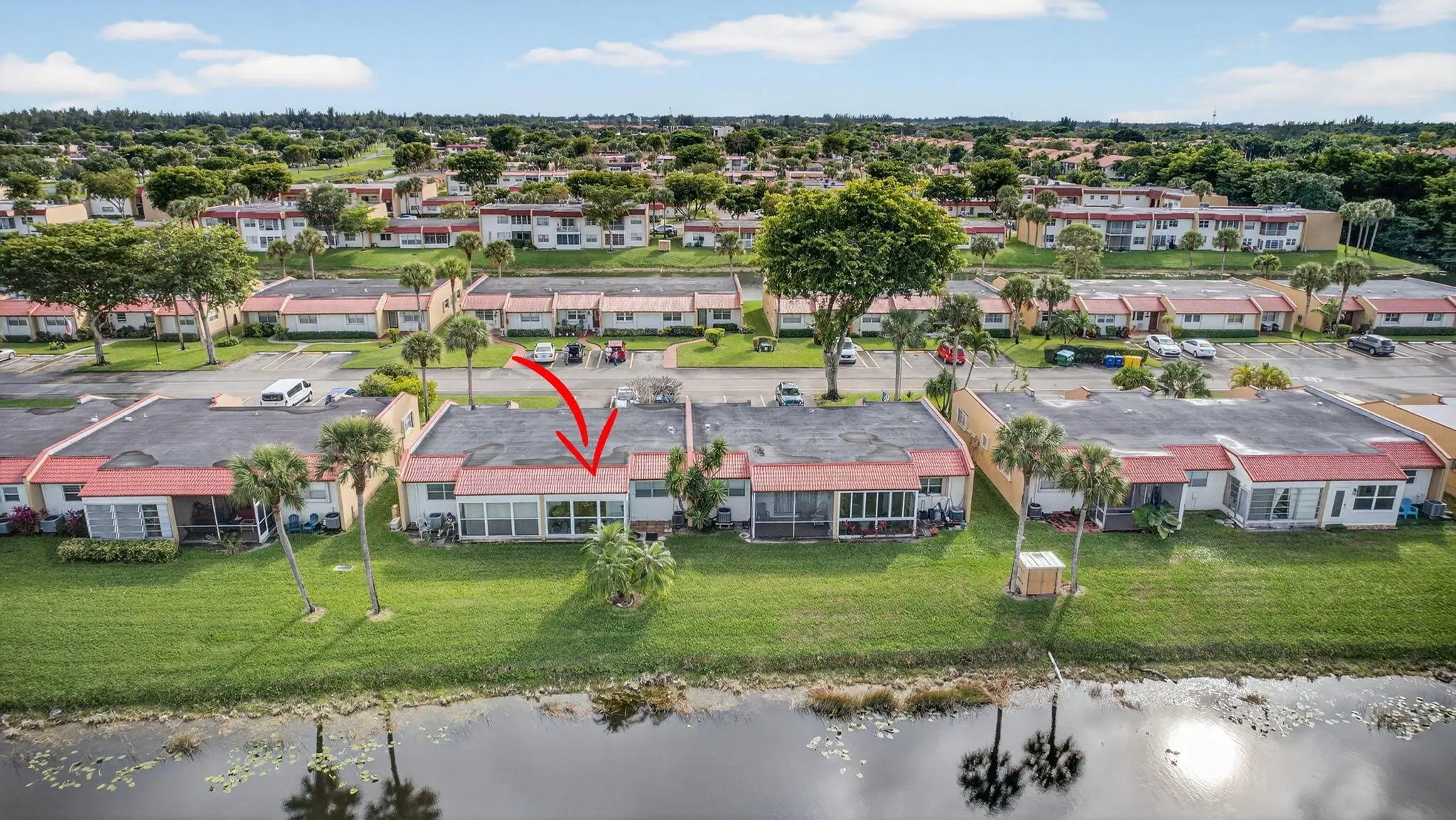 MOTIVATED! Gorgeous move-in ready 2-bedroom, 2-bath condo with serene water view. Brand new GE All-In-One ventless washer/dryer, new dishwasher, new microwave, new garbage disposal Freshly painted throughout with brand-new carpet in bedrooms & beautiful laminate flooring and a beautiful new decorative front door and newly painted walk way for added curb appeal. Enjoy peace of mind with impact French doors and back windows that open to a screened patio overlooking a beautiful, serene water view to relax or unwind. Residents enjoy access to a private satellite pool and benefit from lower-than-average condo fees within this active, well-maintained community. Ideally located near the Turnpike, shopping, dining, and everyday essentials. Roof replaced in 2023. Fitness ctr, private satelite poo Assigned Parking Space, BBQ/Picnic Area, Clubhouse, Computer Room, Guest Parking Space, Gym, Laundry Facilities, Ponds, Arts/ & Craft Room, Game Room, Spa, Swimming Pool.