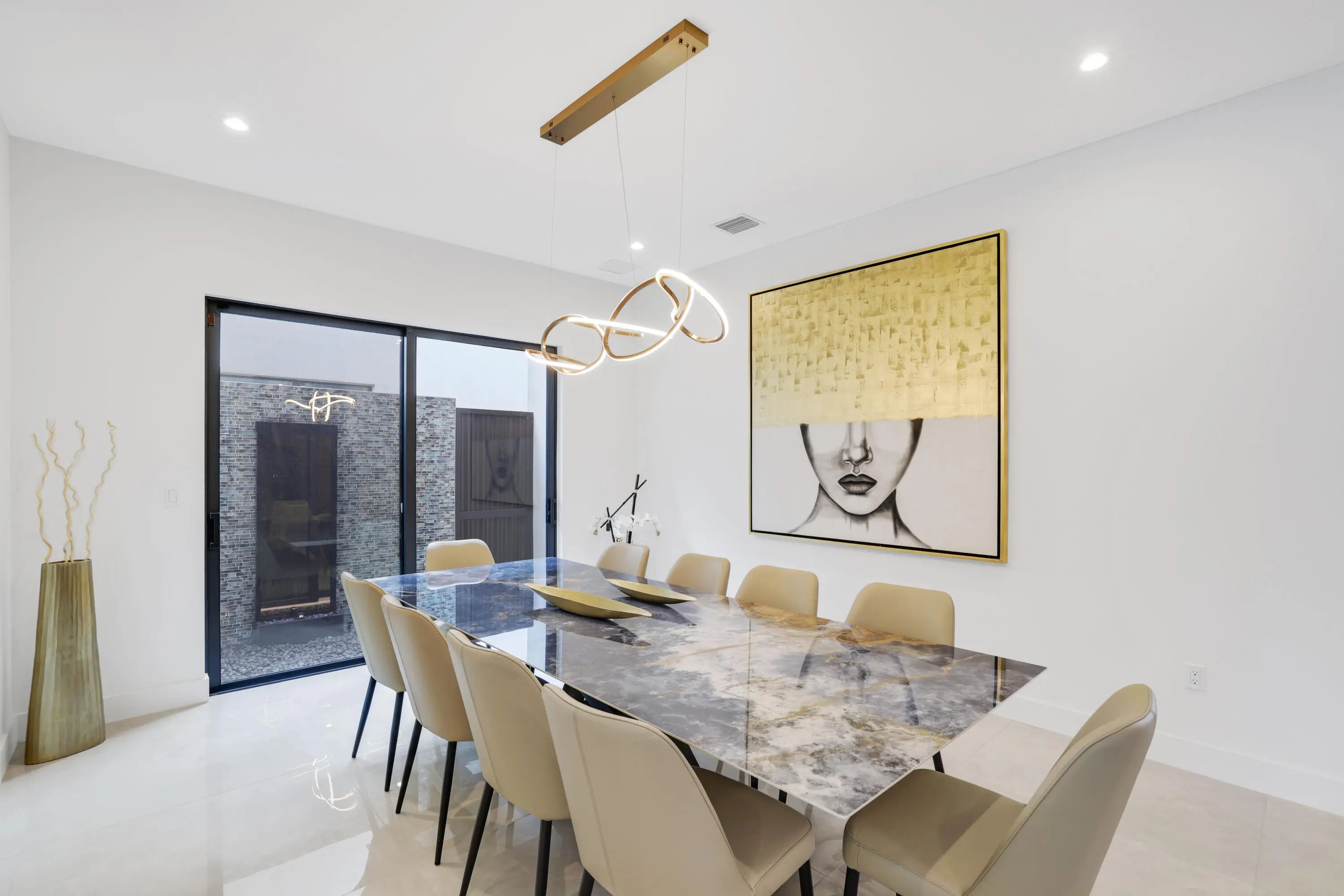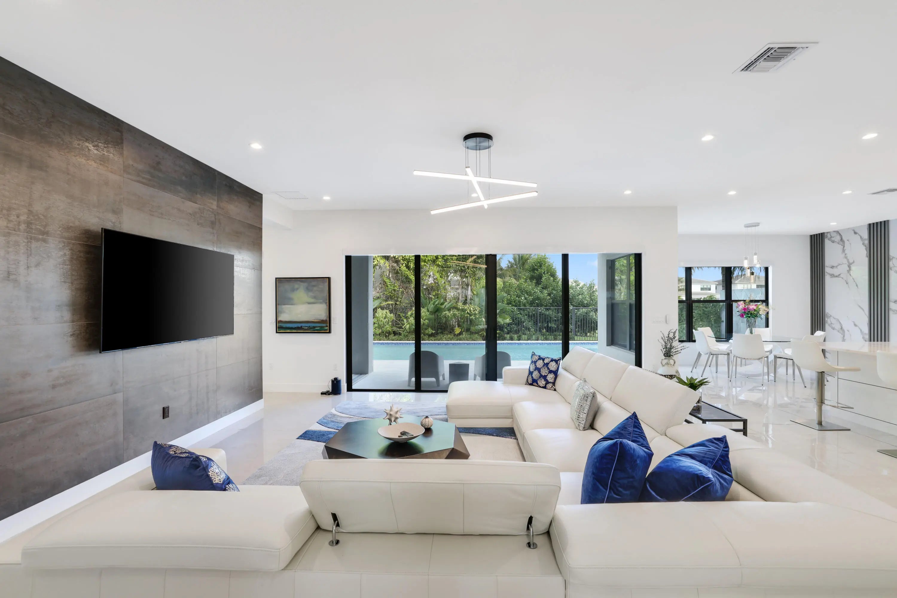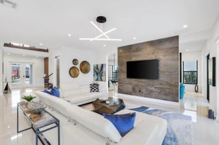 AN ENTERTAINER'S DREAM! The $50,000 state-of-the-art media room is INCLUDED in the sale! Experience turnkey luxury in Boca Raton's most prestigious community, Lotus by GL Homes, featuring the highly sought-after Maldives model. This exceptional residence offers 7,246 total square feet (5,378 under air) with premium designer upgrades throughout. The gourmet kitchen impresses with Wolf appliances, upgraded cabinetry, and an expansive center island. Italian porcelain tile enhances the first floor, while refined wood flooring elevates the upper level. The spa-inspired primary bath features a soaking tub and frameless glass shower. Showstopping highlights include a glass wall Club Room, glass wine closet, and sleek glass banisters, crafted for elevated living and lasting impressions. Included with the purchase of the home! The state of the $50,000 art media room comes fully equipped with all media equipment and designer furnishings, delivering a private theater experience that will amaze! Electric shades, upgraded lighting, and designer wall treatments complete this must see home. The property features a 400-amp electrical service, and a decorative fireplace. All bathrooms have been upgraded with premium fixtures and countertops, and extended mirrors add a touch of luxury. Outdoor living is highlighted by a saltwater pool measuring 17 by 34 feet, a cabana bath, and tropical landscaping, with a 2-foot garage extension featuring finished floors and a parking lift, as well as widened driveways for enhanced curb appeal and guest parking. This residence sits in one of Boca Raton's most prestigious neighborhoods, known for luxury living, with access to a state-of-the-art 30,000+ square foot clubhouse that offers a resort-style pool, a fitness center, tennis and pickleball courts, a children's splash park, and versatile spaces for gatherings and fitness classes. This home blends luxury finishes, modern comfort, and resort-style living in a premier Boca Raton setting, making it a turnkey showcase ideal for entertaining and everyday living alike.