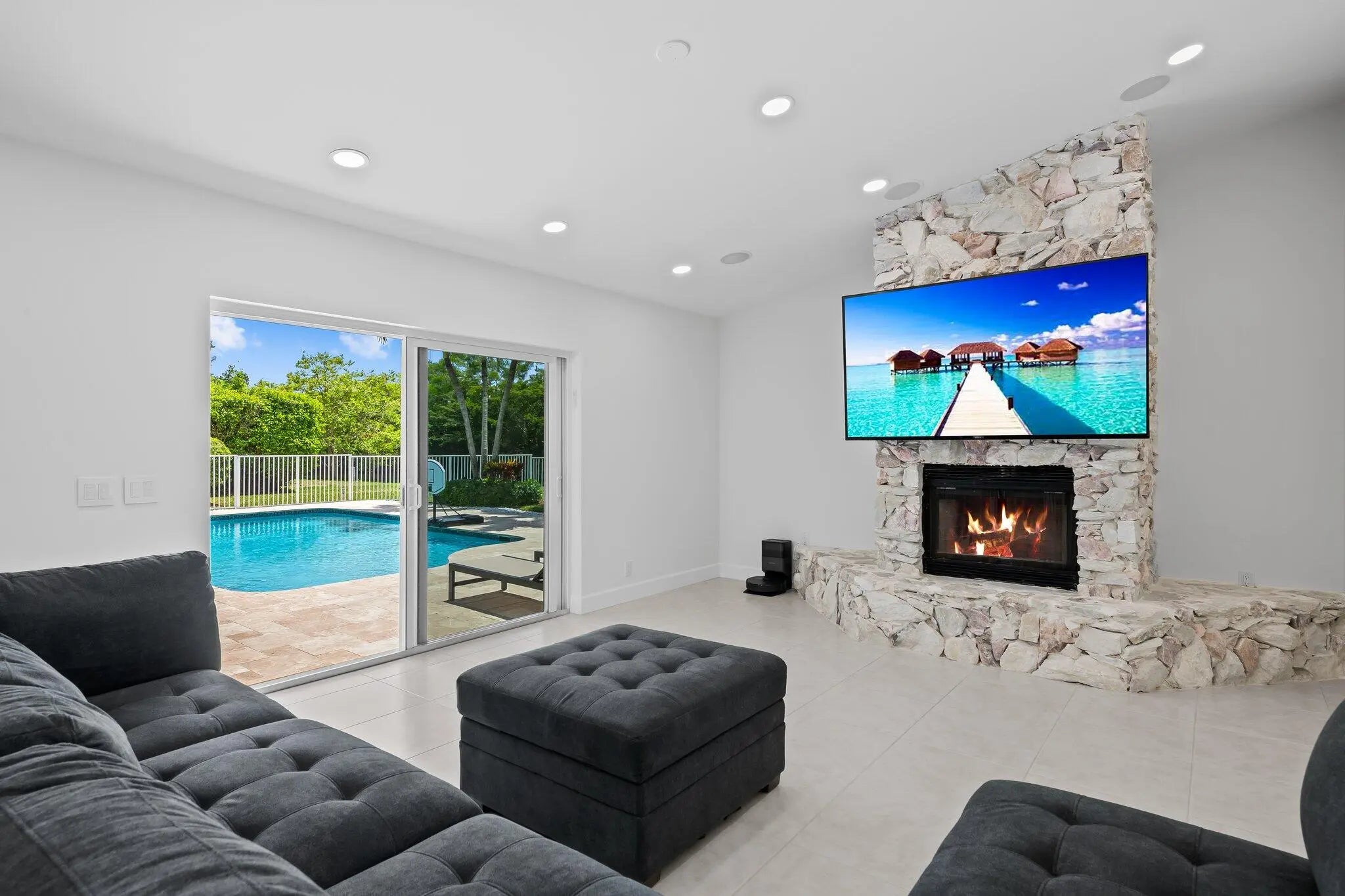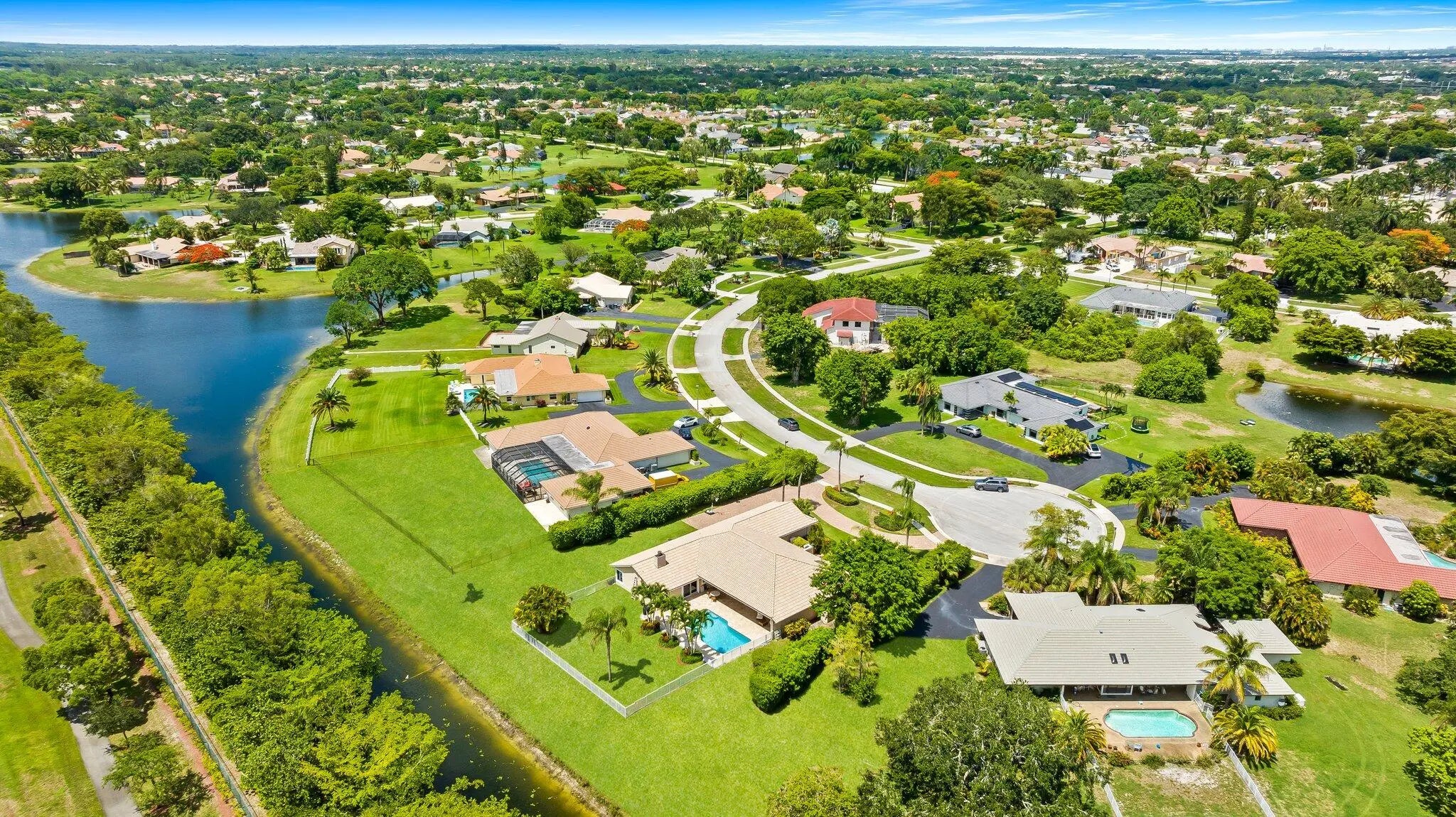 Recently renovated entire home. 5 large bedrooms with four fully renovated Bathrooms. Brand new MDF kitchen with granite counter tops, island and backsplash . New top of the line kitchen appliances with xl 33'' each stand alone fridge and freezer. additional freezer and fridge in the garage. Very large laundry room and new LG washer/dryer. Gigantic secluded master bedroom with his and her closets. Large living room and dining room overlooking pastoral backyard / pool deck. Cozy den and fireplace Quiet river running in the back, a private oasis . Beautiful greenery and palm trees surrounding home, privatizing it from all neighbors. Calmest place to enjoy life Lots of potential and land to expand. Walking distance to nearby places of worship. Developing and growing Area. Last area of Boc growing Area. Last area of Boca with large plots of land.
