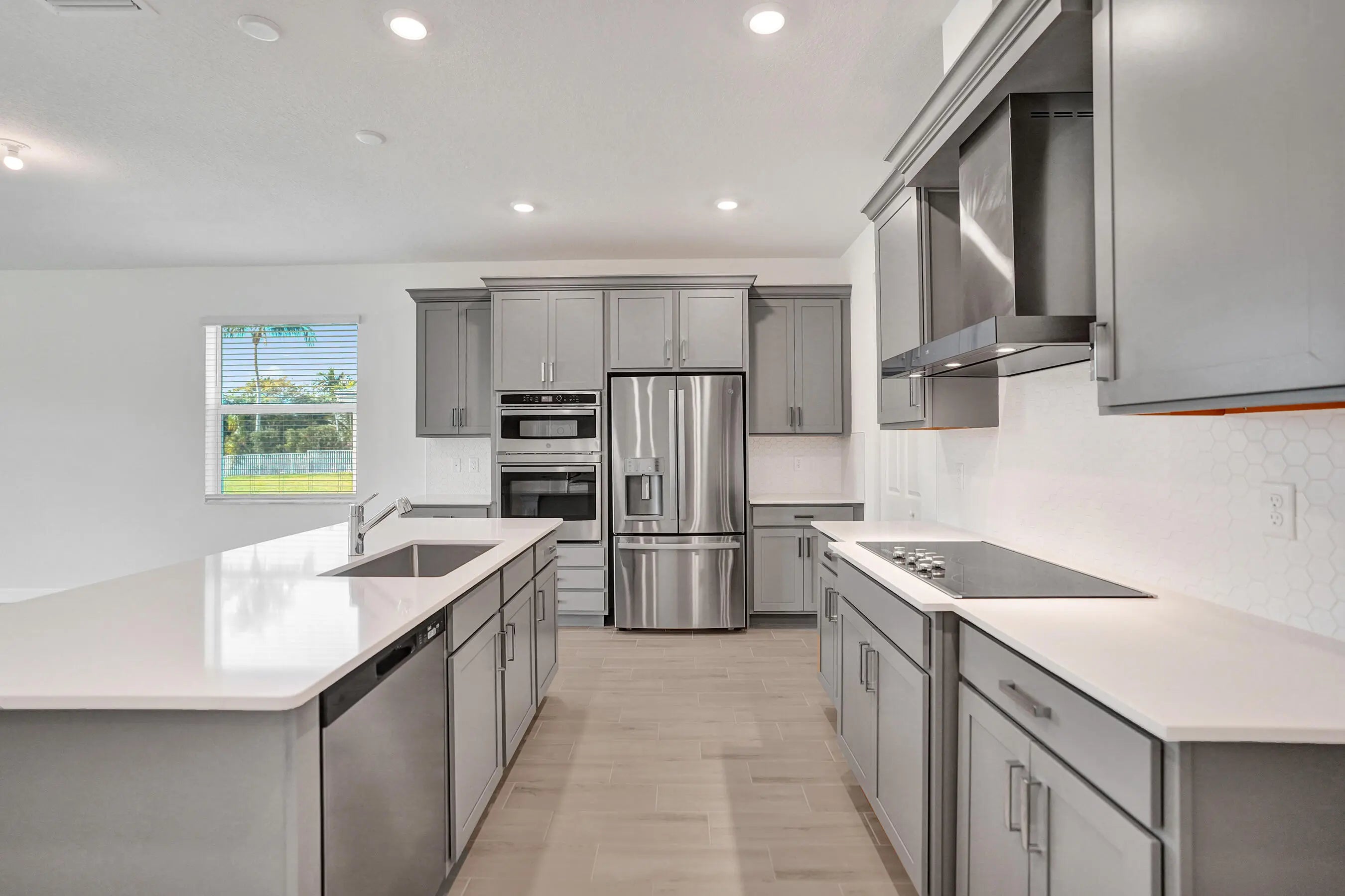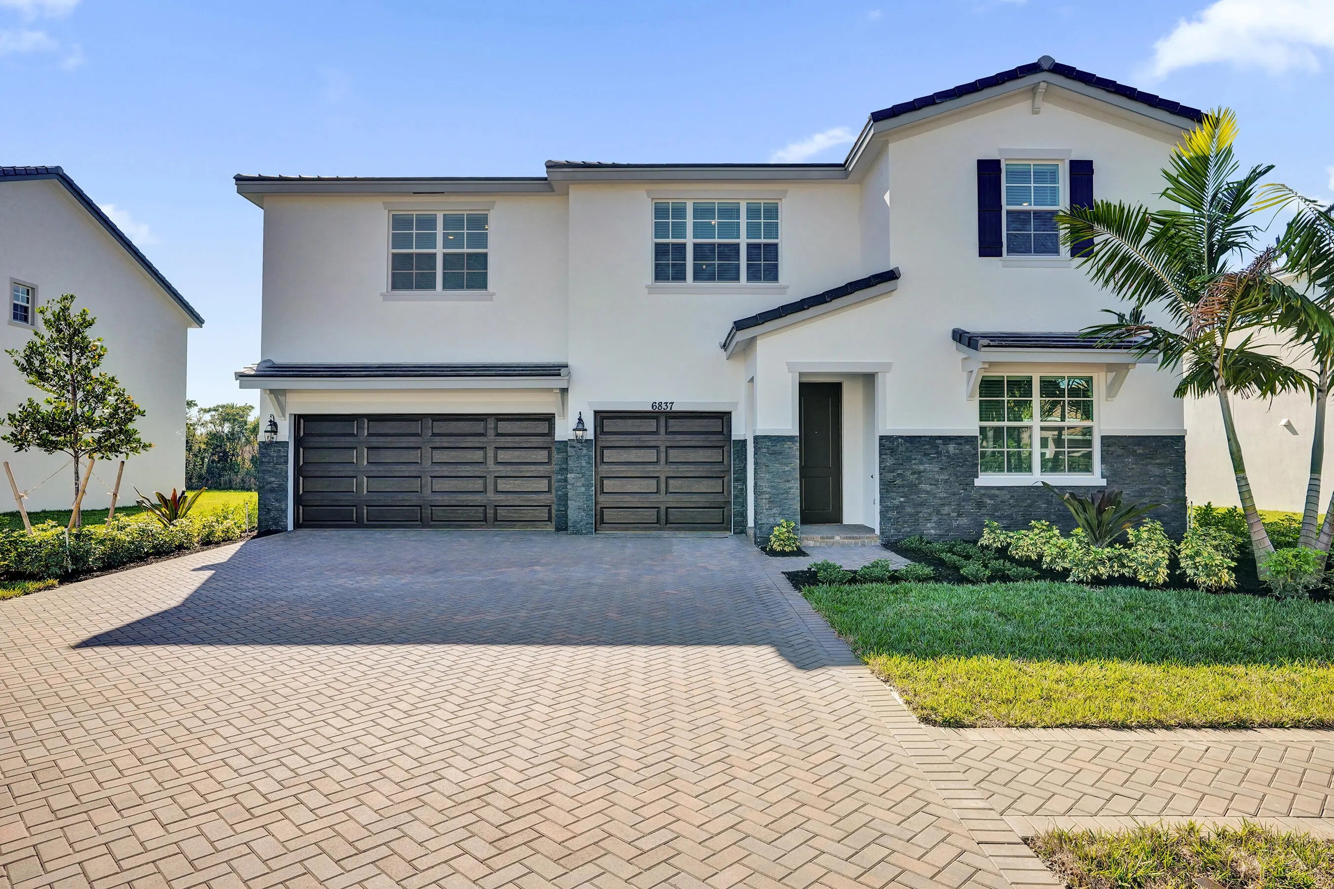 Welcome to 6837 Cobia Circle, a brand-new, never-lived-in lakefront residence in the gated community of Boynton Waters, available now for immediate occupancy. This spacious and modern home offers a rare opportunity to live in a pristine environment, combining comfort, functionality, and a peaceful waterfront setting. Designed with today's families in mind, the home features an open, sun-filled layout with large-format tile flooring, neutral tones, generously sized living spaces that adapt easily to your lifestyle, a ground floor master bedroom, and a large loft upstairs. The chef's kitchen is equipped with quality cabinetry, quartz countertops, and a large island perfect for gathering. Enjoy lakefront living from the covered outdoor patio, perfect for relaxation or entertaining. Additional highlights include a three-car garage and professionally landscaped surroundings. Ideally located near prime shopping, top-rated schools, dining, and major highways, this home offers move-in-ready living in one of Boynton Beach's most desirable communities.
