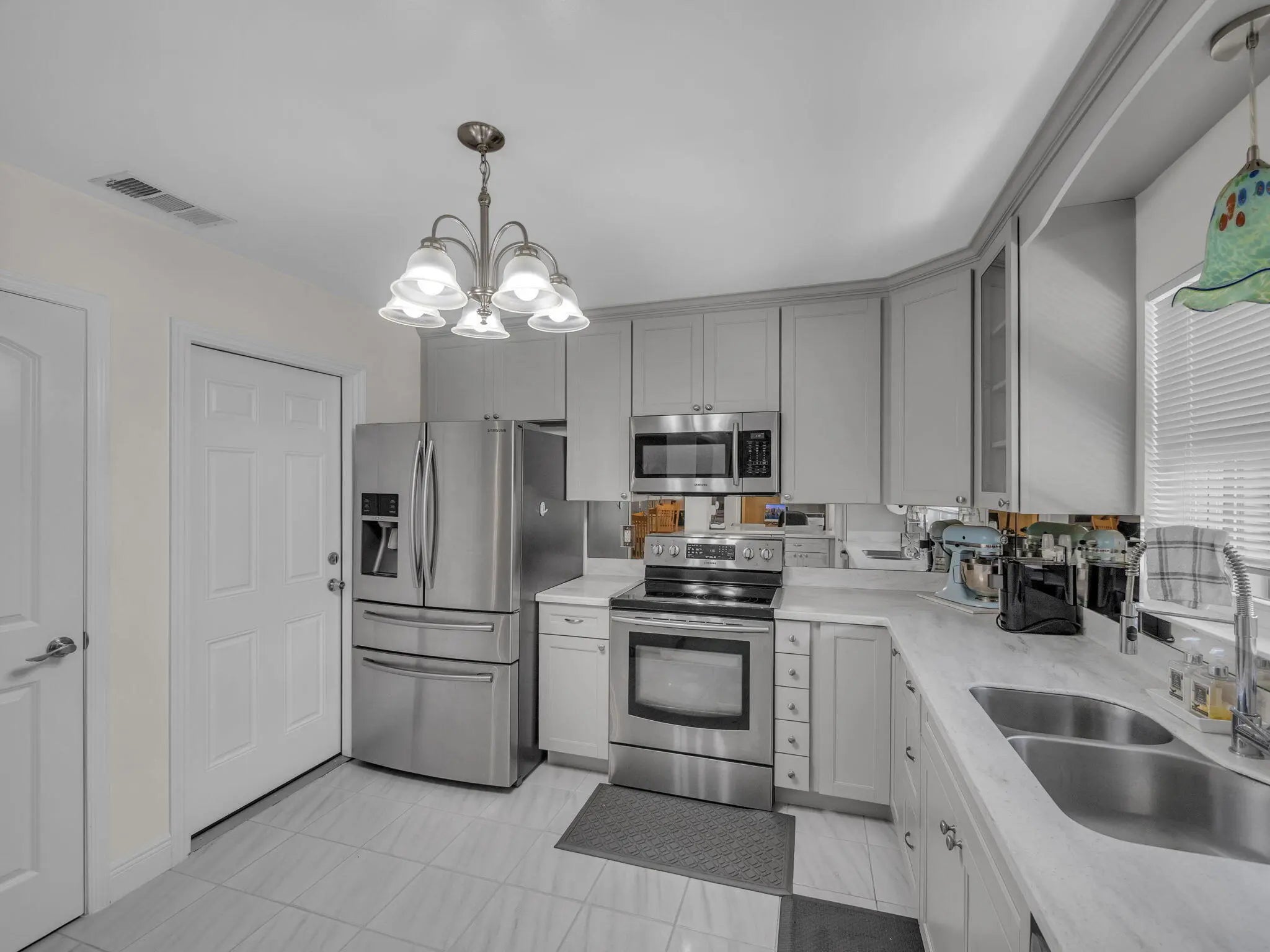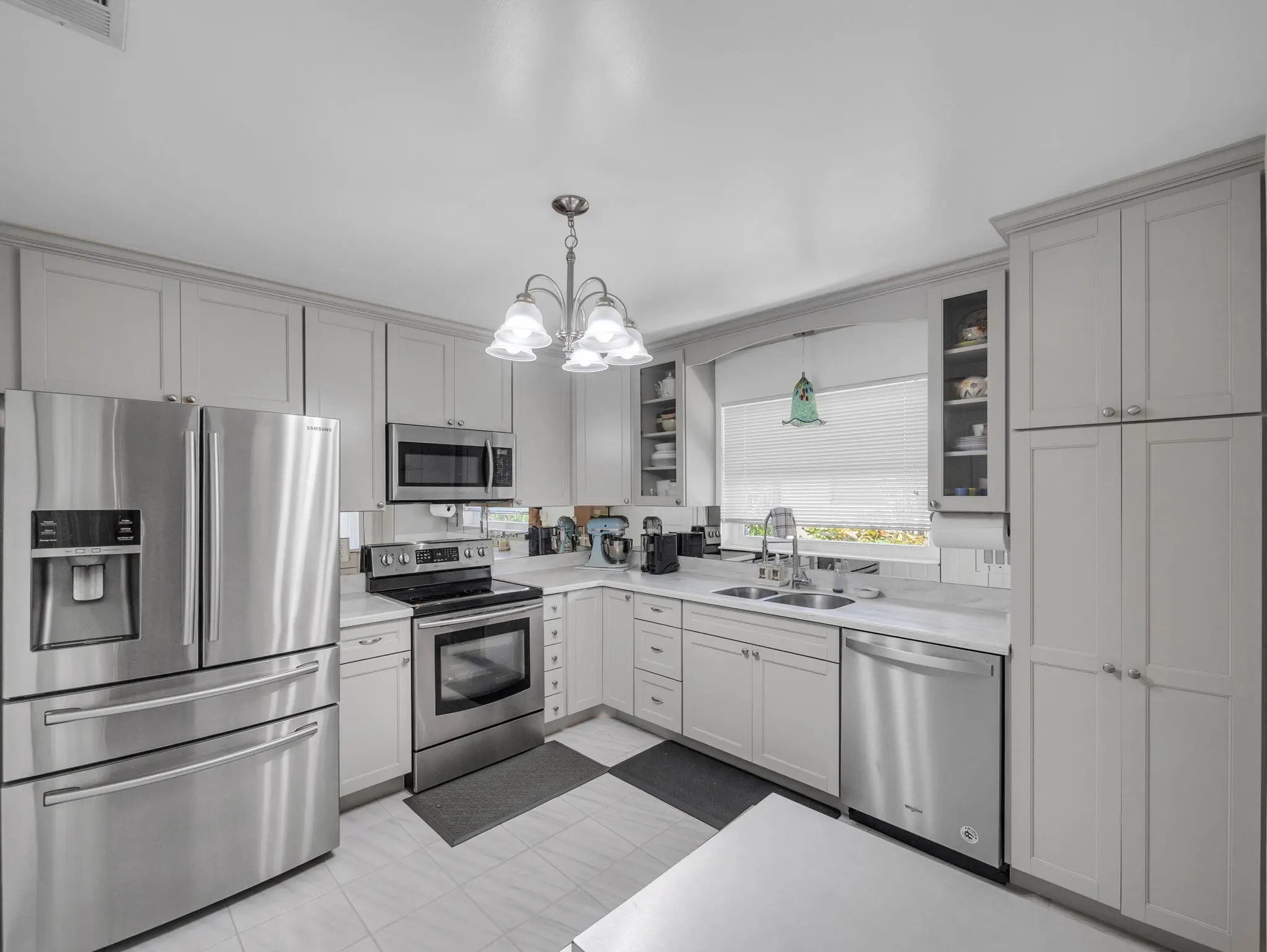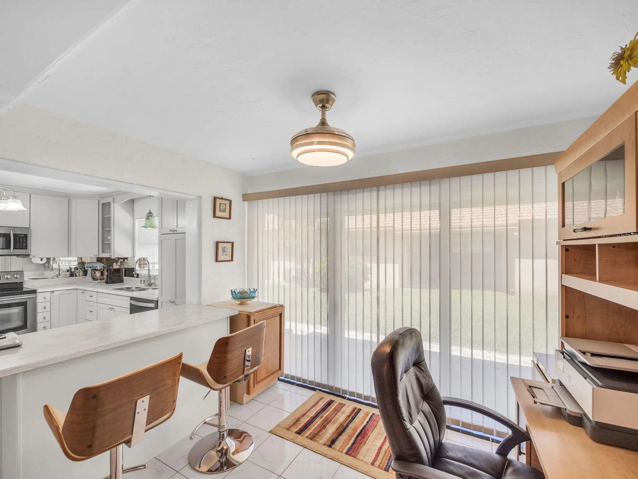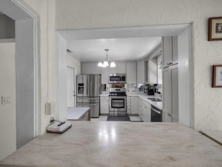 Step into this beautifully updated home featuring a redesigned kitchen with new appliances and a convenient pantry closet. The home boasts hurricane-impact windows throughout, ensuring both safety and peace of mind. Enjoy the convenience of a 1-car garage complete with additional pantries and closets, plus a garage refrigerator, washer, and dryer that may convey. Freshly painted interiors create a move-in ready feel, while thoughtful upgrades like ceiling fans with lights and a built-in breakfront add both comfort and character. The primary suite offers a stunning walk-in closet with built-ins and an updated walk-in shower with ADA grab bars. Outside, relax or entertain on the pavered and leveled patio, perfect for gatherings. All Furniture is negotiable! Located just steps from the community pool, this home blends comfort, function, and style.