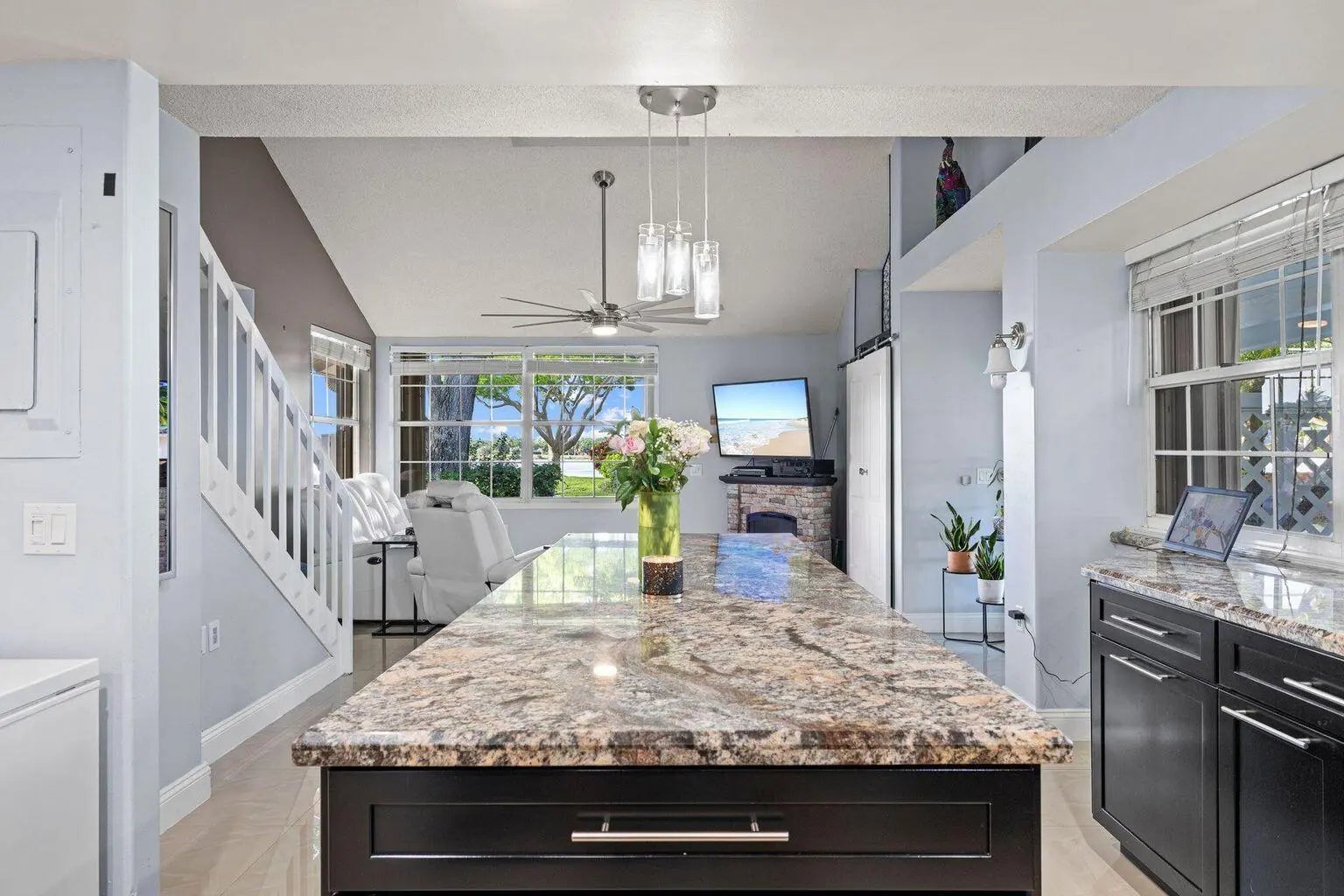 Impeccably updated 3-bedroom, 2-bath townhouse offering modern upgrades and low-maintenance living. Features include a durable metal roof (2019), new A/C unit (2020), and water heater (2024). The redesigned kitchen boasts custom KraftMaid cabinetry, granite countertops, a spacious island, farmhouse sink, and modern appliances—ideal for everyday living and entertaining. Both bathrooms have been tastefully renovated (2023 & 2025). Additional upgrades include hardwood stairs, ceramic tile flooring, accordion storm shutters, and a new washer/dryer. HOA ($545/month) covers roof replacement, exterior maintenance, gated security, landscaping, pest control, pressure washing, pool service, and more. Stylish, turnkey, and move-in ready.