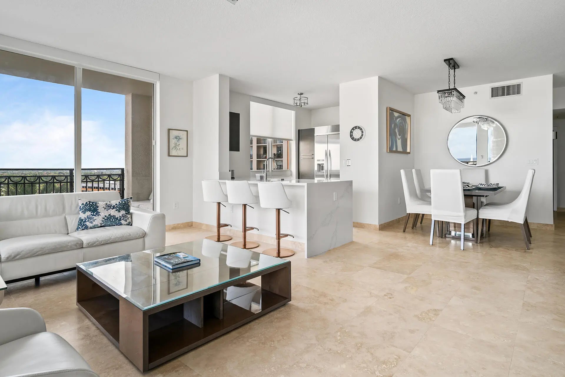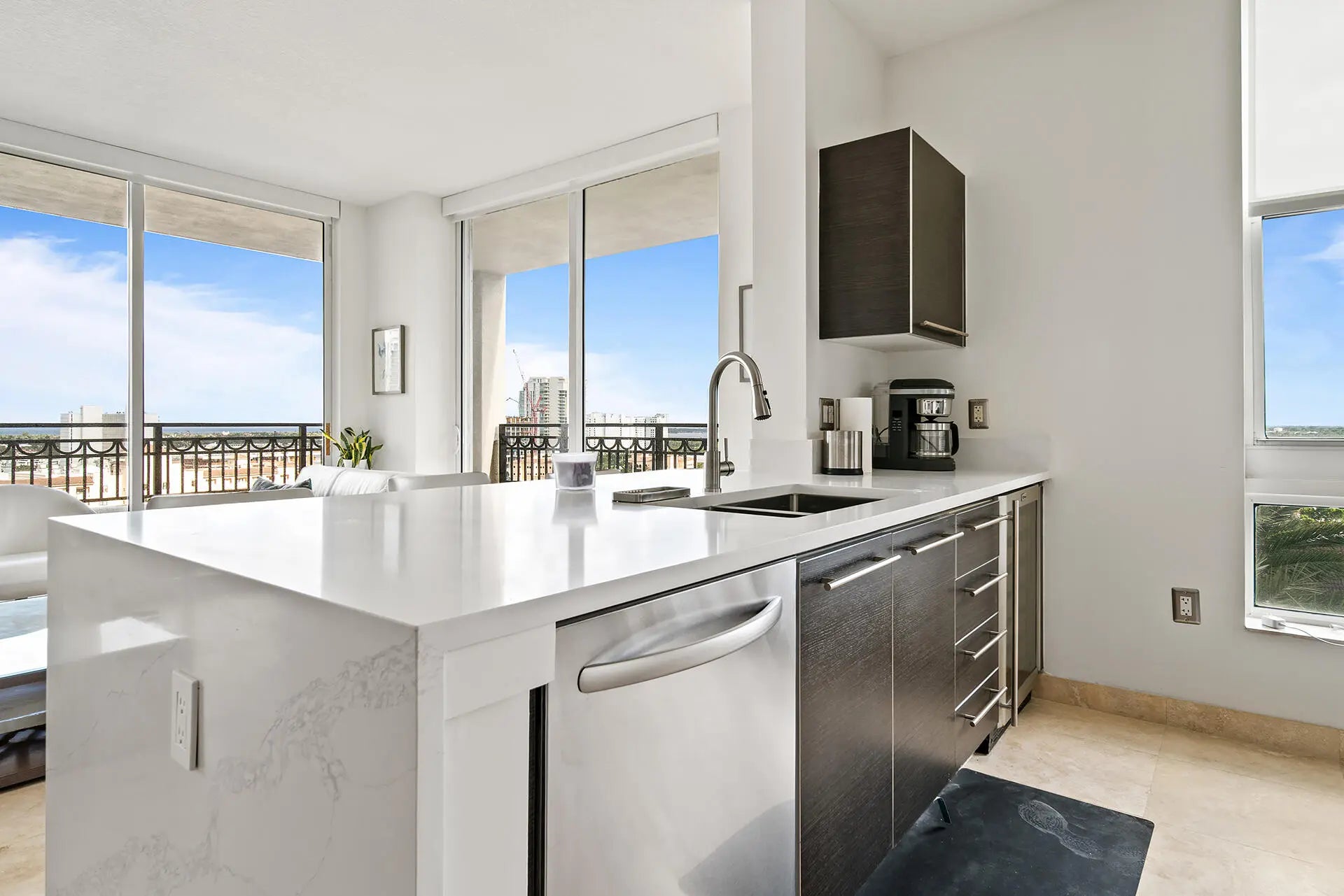 Breathtaking Intracoastal and Ocean views from this modern, updated, 14th floor Southeast Corner 3 bedroom unit at Cityplace South Tower. Offered furnished turnkey, just bring your toothbrush! All new Quartz countertops, sinks, and hardware in Kitchen and Bathrooms. Tile Floors throughout. Motorized blinds in every room. Huge wraparound terrace. Includes two premier lower level parking spaces and a double wide storage cage. CityPlace South Tower is a full service luxury building in the heart of Downtown with 24 hour doorman, valet, resort pool, gym, club room, and spa facilities. Beautifully refreshed new building common areas with NO assessment. Located across from City Place with an Equinox coming soon, RH, and walkable to countless restaurants, shops, the waterfront, Clematis st, Brightline Station, and Palm Beach Island just over the bridge.