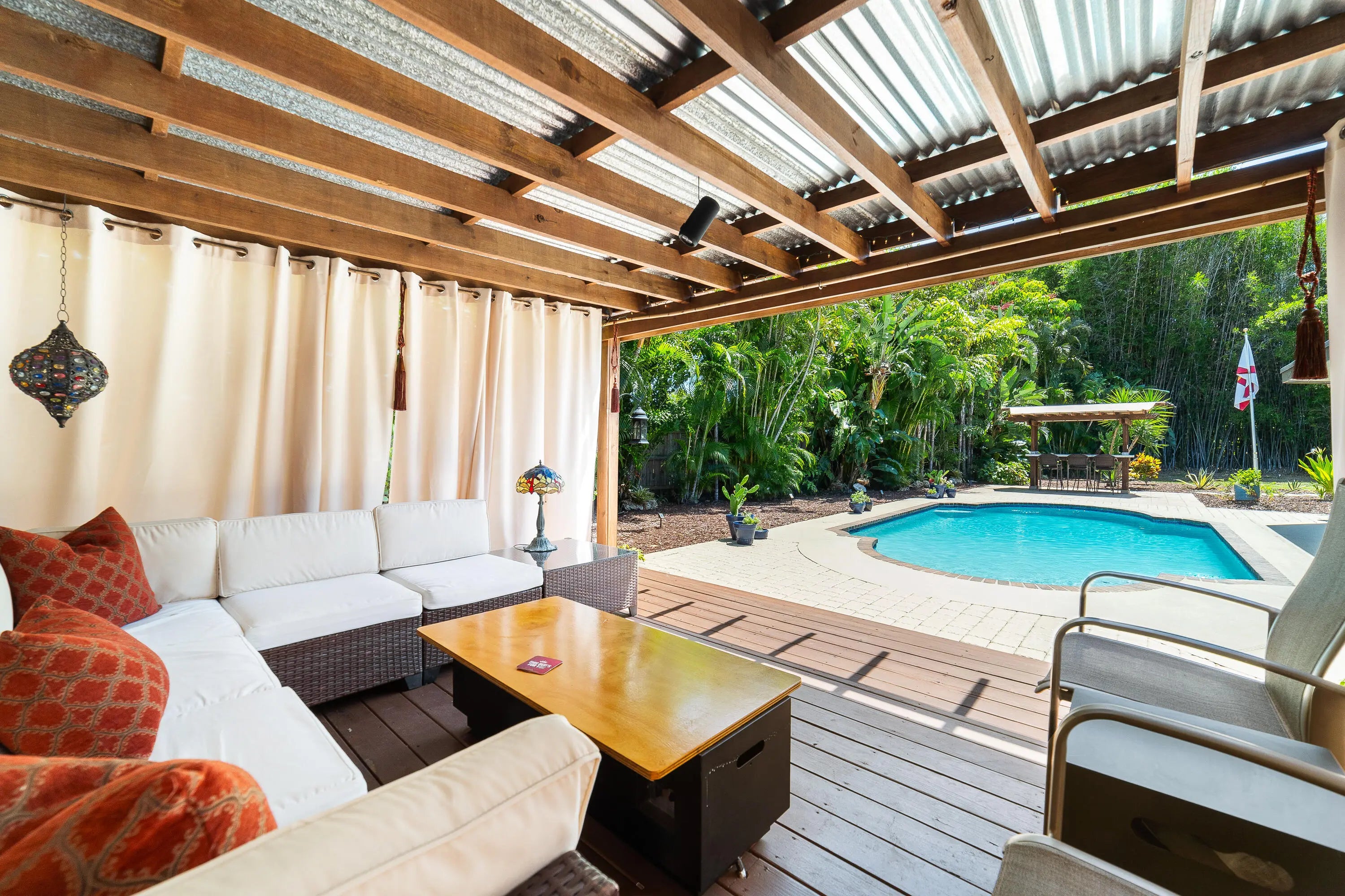 Tucked away at the end of a quiet cul-de-sac, this beautifully updated 4-bedroom, 2-bath home in Boca Raton Square offers comfort, privacy, and style. Set on a generous 1/3-acre lot, the property has been thoughtfully remodeled over the years, including updates to the kitchen, roof, porcelain tile flooring, and AC. The backyard is made for relaxing and entertaining, featuring a Roman-style Diamond Brite pool, spacious sun deck, and a custom-built tiki bar under an enclosed patio. A barrel tile roof and 2-car garage add to the home's value and curb appeal. Inside, the layout is functional and inviting, with natural light flowing throughout. Whether enjoying quiet evenings or hosting gatherings, this home offers the space and features to enjoy every day.