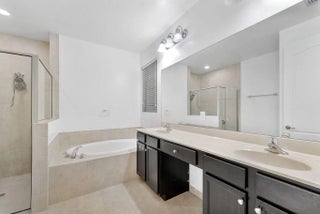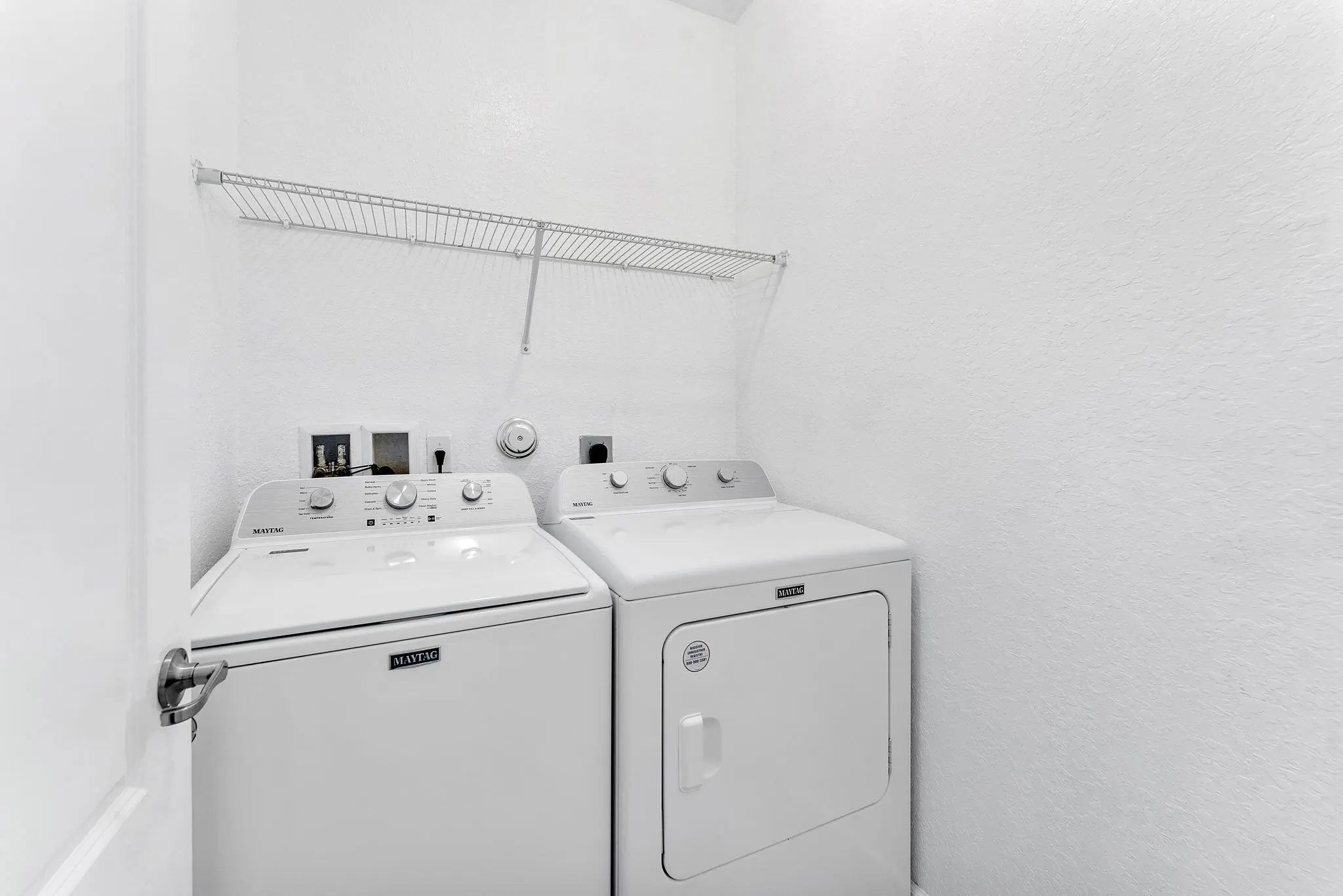 Welcome to this spacious two-story residence featuring a grand entrance with soaring ceilings and easy-to-maintain tile flooring throughout the main level. The modern kitchen is equipped with granite countertops, a large center island, and stainless steel appliances. Upstairs, you will find brand new luxury vinyl plank flooring in all bedrooms--offering a clean, carpet-free living environment. The primary suite offers a private retreat with a dual sinks and a separate soaking tub. This home is designed for convenience with an included washer and dryer and a spacious backyard perfect for entertaining. With a charming paver driveway and manicured landscaping, this property offers both style and comfort.