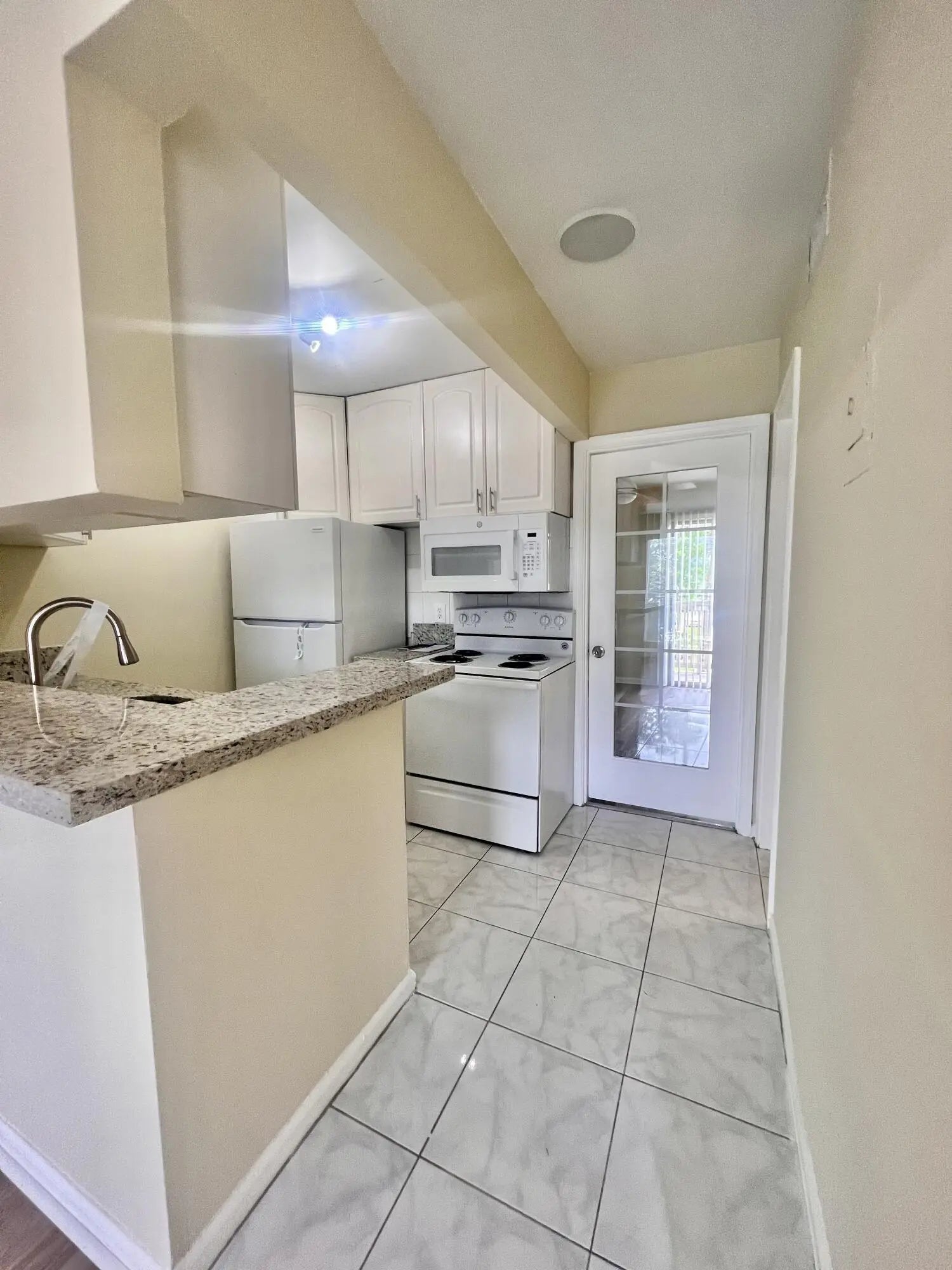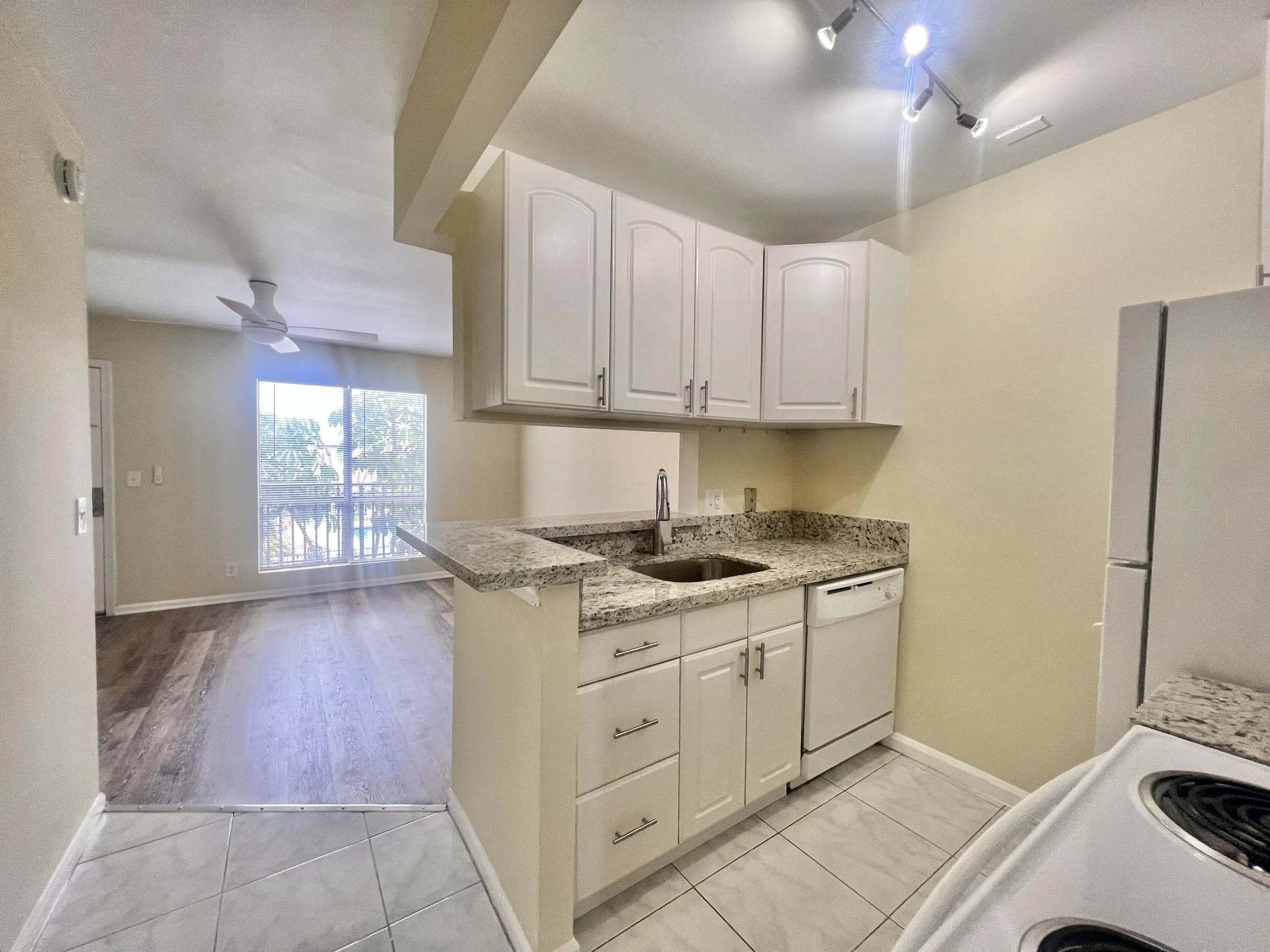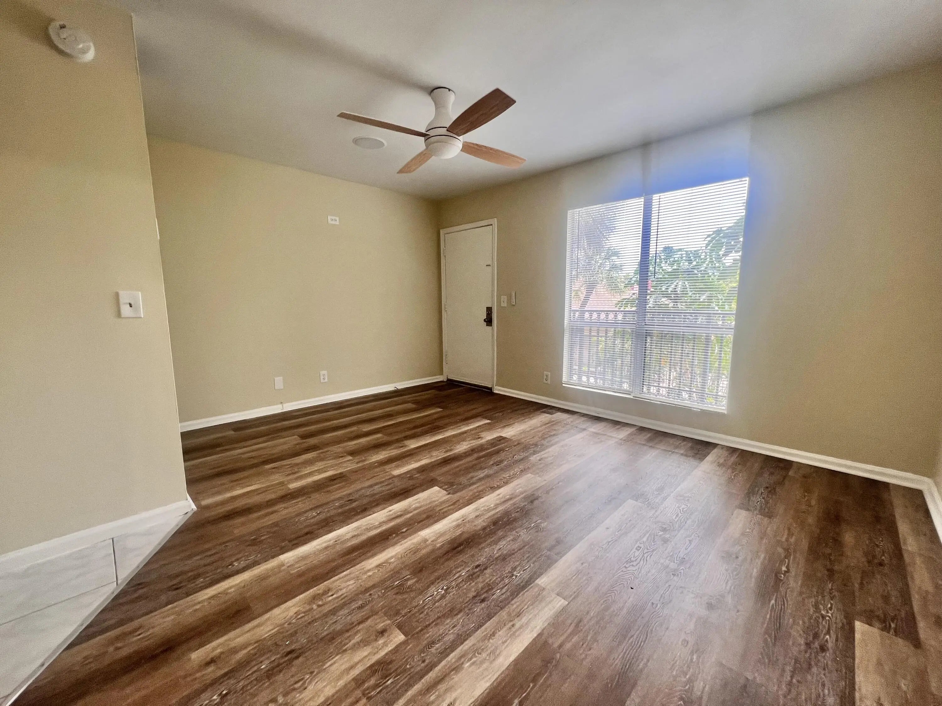 FOR RENT- Cozy, bright second-floor 1BR/1BA. Granite Countertop- Spacious layout with a separate dining area- Updated kitchen. Laundry facilities just steps away. Convenient location near I-95 and Palm Beach Outlets. All ages. No pets per Association. 600+ credit score- WATER included in the rent !