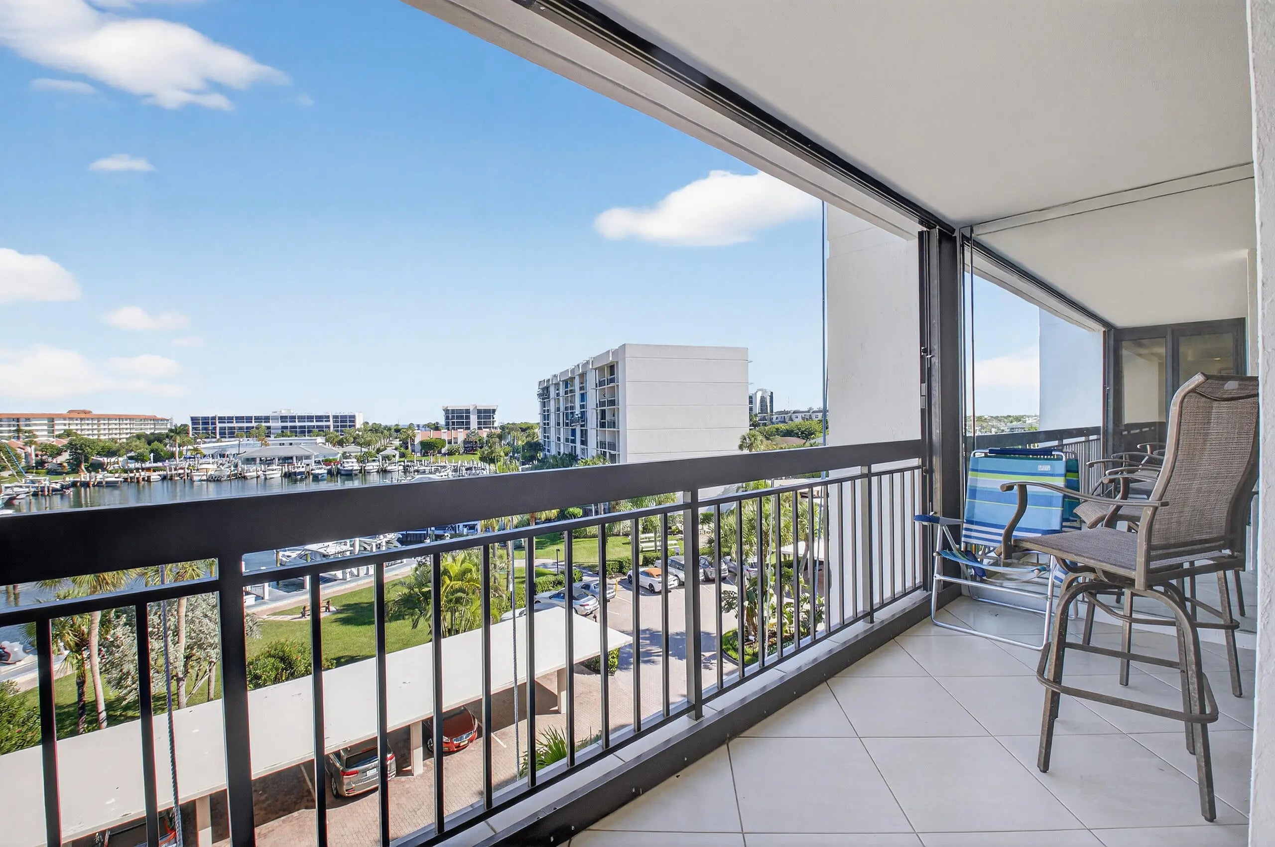 2 BEDROOM - 2 BATH FACING THE GORGEOUS MARINA AND OCEAN FROM THIS 5TH FLOOR CONDO - 1,305 SQ. FT. - HIGHLY SOUGHT AFTER INDOOR GARAGE PARKING SPACE - NEUTRAL COLOR PALETTE THROUGHOUT - RENOVATED KITCHEN AND BATHROOMS - TILE FLOORING - IMPACT GLASS WINDOWS - THE YACHT & RACQUET CLUB IS A RESORT STYLE COMMUNITY WITH THE ONE AND ONLY RESTAURANT AND BAR ON THE BEACH - OPEN 6 DAYS A WEEK - 3 HEATED POOLS - 2 JACUZZI'S - 4 HAR-TRU TENNIS COURTS - 12 PICKLE BALL COURTS - TENNIS AND PICKLE BALL PROS - PRIVATE LESSONS - CLINICS - TRAVELING TEAMS - BOAT DOCKAGE AVAILABLE - PLEASE INQUIRE - NEWLY RENOVATED CLUBHOUSE WITH NEW FITNESS ROOM AND EQUIPMENT - DAILY EXERCISE CLASSES - CARD ROOM - MULTI-PURPOSE ROOM - MEETING ROOMS - ART GUILD - BOOK CLUB - PARTIES AND ENTERTAINMENT AND SO MUCH MORE