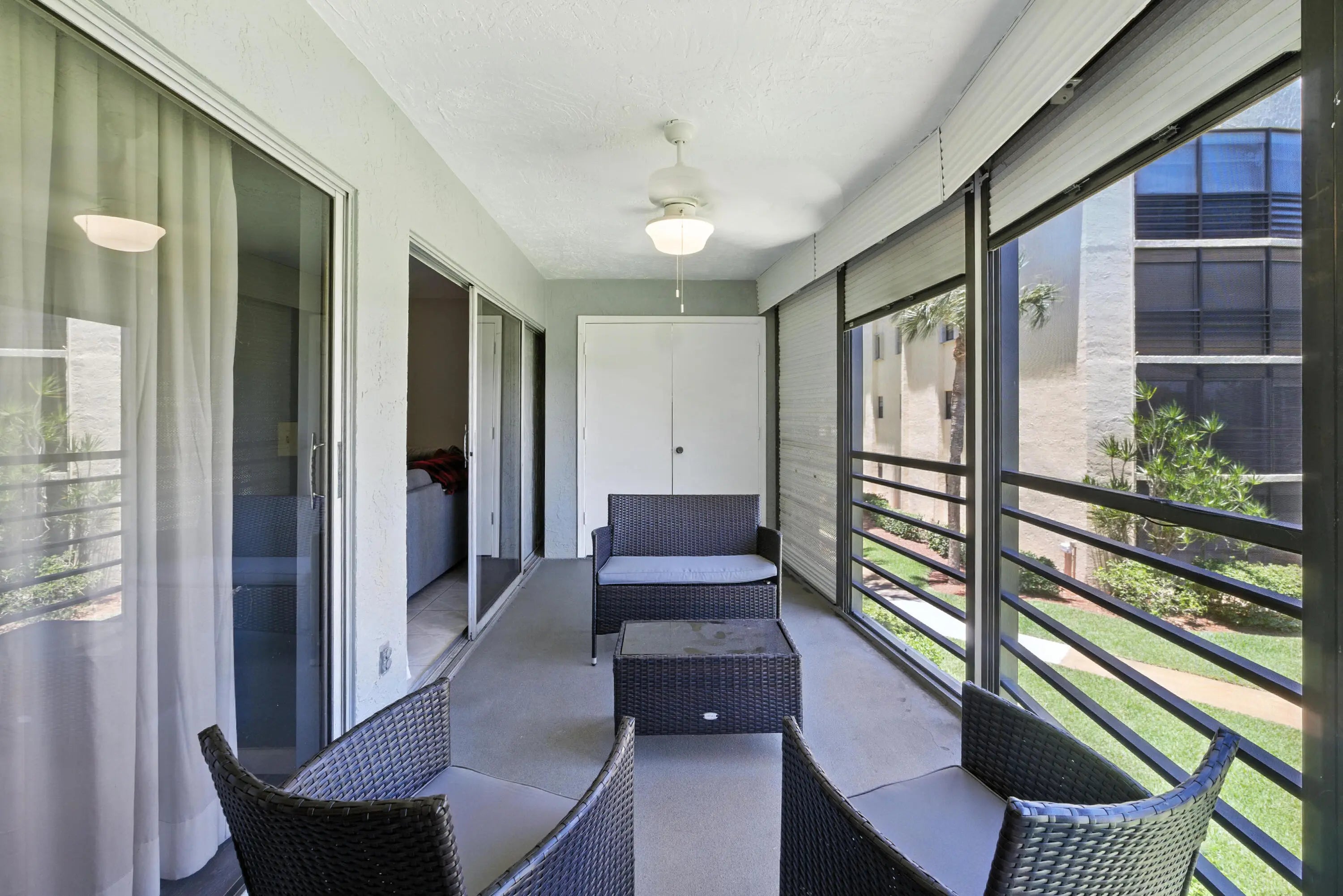 An All‑Age Building! Step into this beautifully maintained 2‑bedroom, 2‑bath condo an exceptional opportunity! Features: a bright, elegant kitchen with white cabinetry and gorgeous granite countertops A welcoming dining area perfect for gatherings, Newer A/C and water heater (only 2 years old) A spacious primary suite with an oversized custom walk‑in closet, Updated bathrooms with modern vanities and stylish lighting, a generous guest bedroom with its own private bath ideal for visitors or a home office, an enclosed, screened balcony overlooking the pool and garden, offering a peaceful place to unwind. Convenient in‑unit washer and dryer tucked away in the utility closet. This home offers comfort, style and conveniently located to beaches & shopping!