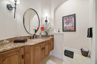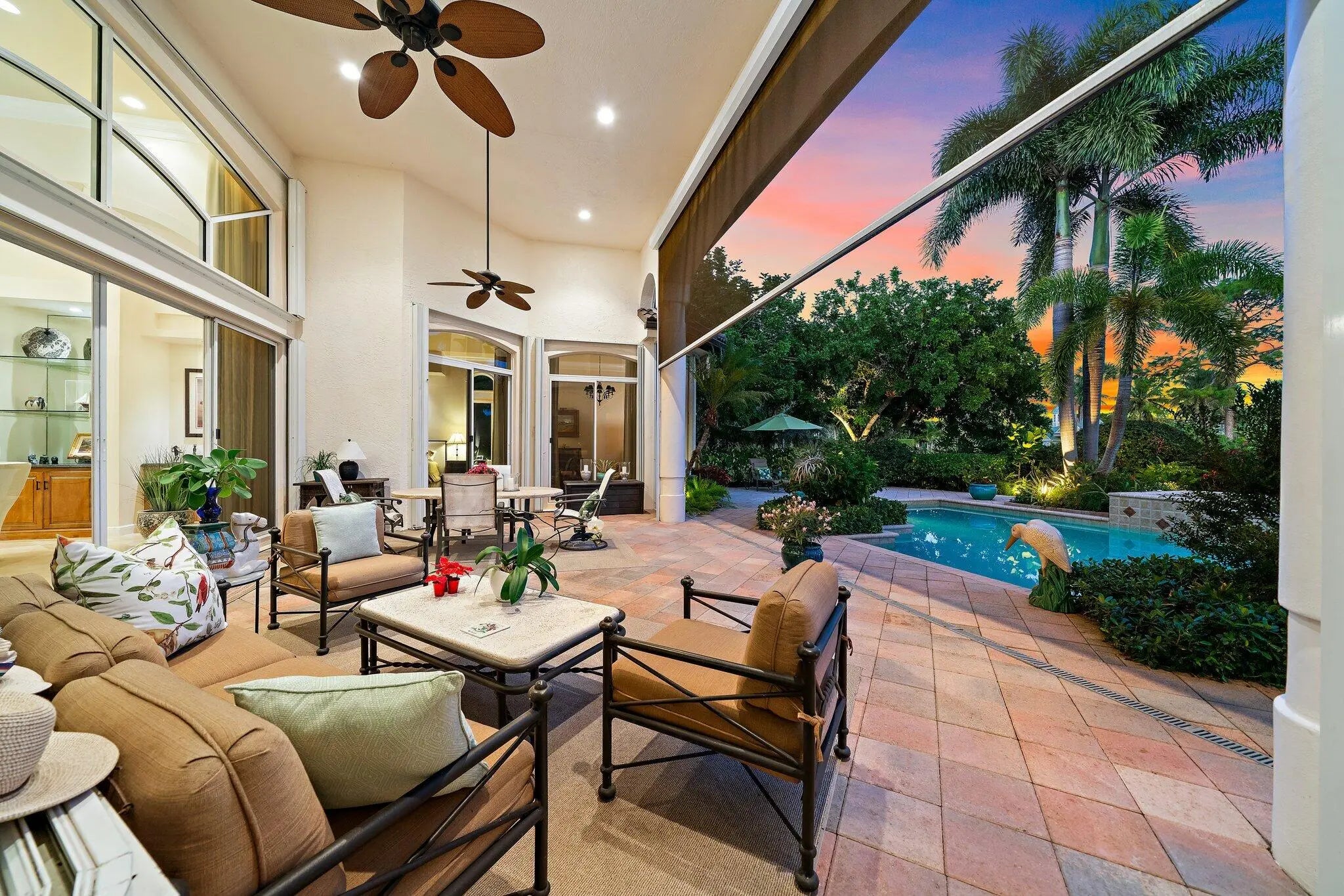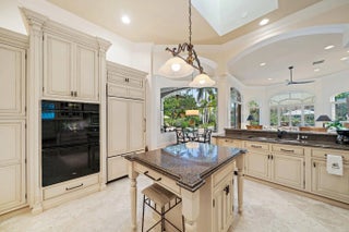 Located at the end of a cul-de-sac street on a .71 acre lot with amazing views of the Ironhorse golf course, this signature estate home personifies warmth, charm, and timeless elegance. The expansive primary suite has a cozy sitting area with views of the pool and golf, an oversized walk-in closet, and the primary bath with a separate bath and shower, plus two water closets. Nearby is the den/office with two built workstations and custom cabinets with shelves. Complementing the flow of the home for entertainment, the living room has a wet bar, and easy access to the formal dining and powder room. Just off the kitchen is the family room, breakfast room, and access to the pool and patio areas. This split plan positioned the guest suites, laundry and garages along a separate wing of the home. The roof was installed in 2023, and a whole house generator was installed in 2021. All window and door openings have accordian shutters, except the dining room window which is impact glass. Ironhorse is a community where three levels of membership (golf, sports, or social) are all available, but none are required. Please refer to documents for more information. Other amenities include: 24/7 manned and gated security, tennis, fitness, swimming, and fine dining.