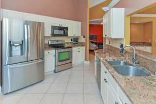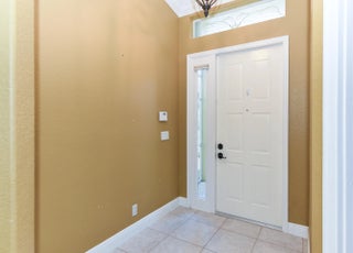 Generous split-plan single-family home featuring volume ceilings in the main living area and a tray ceiling in the primary suite. French doors open to a flexible den/third bedroom, perfect for a home office or guest suite. Granite countertops grace both the kitchen and bathrooms, with kitchen cabinets featuring rollout drawers and under-cabinet lighting. Crown molding throughout and 6'' baseboards add architectural detail. Relax on the lanai with peaceful garden views from a private setting. Additional highlights include a 2024 A/C, newer water heater, 2026 garage door opener and new springs. Community amenities include three pools, tennis, pickleball, top-rated boccee, and security guard at gate.