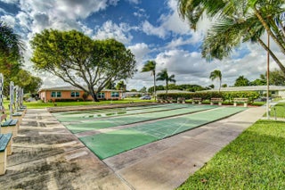 Welcome to this beautifully maintained 2-bedroom, 2-bath corner villa located in the highly desirable 55+ community of High Point in Boynton Beach. Set at the end of a quiet street, this residence enjoys exceptional privacy with lush lawn space on three sides and peaceful surroundings—ideal for year-round living or a seasonal retreat. A brand-new roof in 2025 adds long-term value and peace of mind. The interior is spotless and move-in ready, featuring tile flooring throughout the main living areas and neutral carpeting in the bedrooms. The spacious open living and dining area is filled with natural light, enhanced by hurricane-rated windows and additional awnings on all openings for comfort and protection. The tastefully updated kitchen offers sleek finishes with white cabinetry, granite counters and stainless appliances, ample cabinet and counter space, and a functional layout perfect for everyday living and entertaining. Both bedrooms are generously sized. The primary suite features a walk-in closet and a private ensuite bath with a convenient step-down shower and a separate sink/vanity area. The second bedroom offers two wall-to-wall closets, providing abundant storage for guests or a home office setup. Step outside through the rear door to your own private patio, surrounded by tropical landscaping, an ideal spot to relax or entertain. A retractable awning offers shade when desired while still allowing you to enjoy Florida's sunshine. Parking is effortless with an assigned space directly in front of the unit and convenient guest spaces nearby. High Point is a vibrant and socially active community offering an array of amenities, including a clubhouse, two pools, bocce, shuffleboard, billiards, and more. Perfectly located just 15 minutes from the airport and a short drive to the beach, this corner villa combines comfort, convenience, and low-maintenance living in one of Boynton Beach's most sought-after communities.