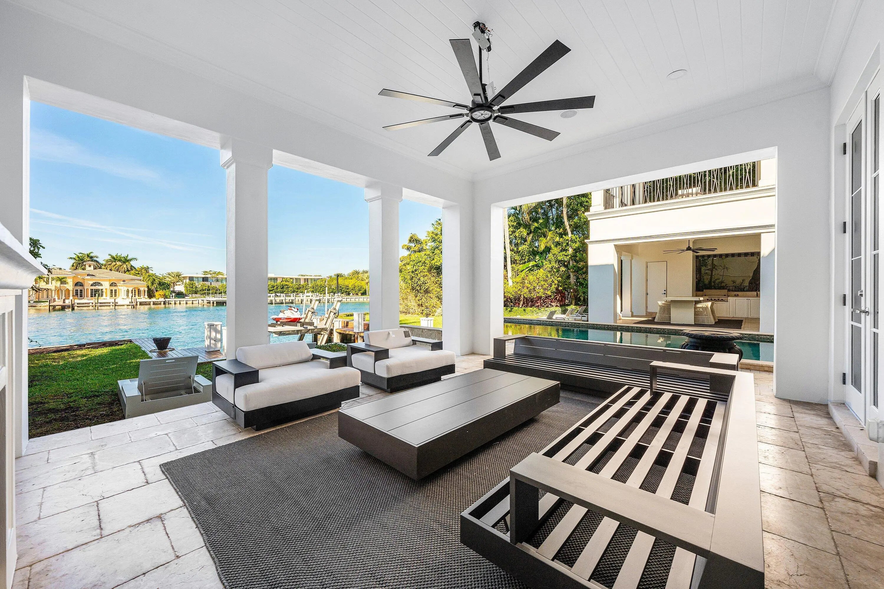 Welcome to an extraordinarily renovated, private, gated waterfront estate, just completed with brand-new Restoration Hardware furnishings, and set within one of Boca Raton's most prestigious enclaves. Offering flexible lease terms with a 90-day minimum, this one-of-a-kind custom residence delivers an elevated South Florida lifestyle with 90± feet of direct frontage on the Intracoastal Waterway, providing sweeping water views and exceptional privacy. Spanning a grand scale, the home features 5 bedrooms, 6 full baths, and 3 half baths, thoughtfully designed for refined living and effortless entertaining. Elegant interiors are complemented by a chef-caliber gourmet kitchen, a private elevator, and expansive, light-filled living spaces that flow seamlessly from indoors to out. Outdoors, experience true resort-style living. An infinity-edge pool overlooks the tranquil waterway, while a private dock accommodating two vessels makes this estate a boater's dreamperfect for cruising, entertaining, or simply enjoying the serenity of waterfront living. This rare offering represents the pinnacle of luxury waterfront leasing in Boca Ratonan exceptional opportunity defined by exclusivity, sophistication, and turnkey elegance.