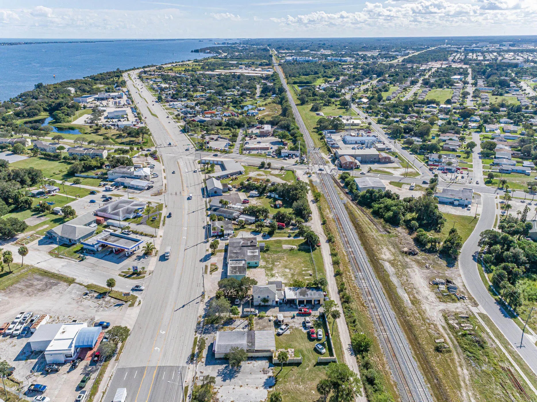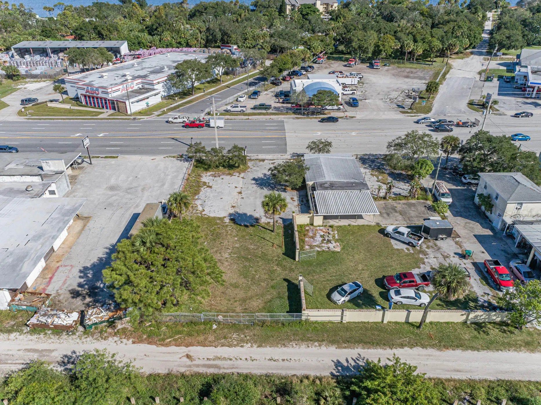 Amazing opportunity to own this 1400 sq ft CBS building with newer roof, Terrazzo floors, great lighting, vaulted ceiling/wood trim...located on thriving continuation of US Highway 1/S Harbor City Blvd --high traffic count! Nearly 200 feet of highway frontage --and plenty of side and rear parking. Access building from highway or alley/Irwin Street just behind. Completely fenced, back of building has thick concrete pad --enough to expand --and CBS wall enclosure. Located in an up and coming Opportunity Zone. Building has large open front room --2 separate office/storage areas, and 2 bas.