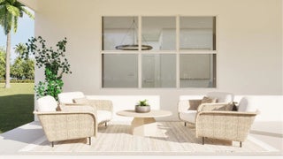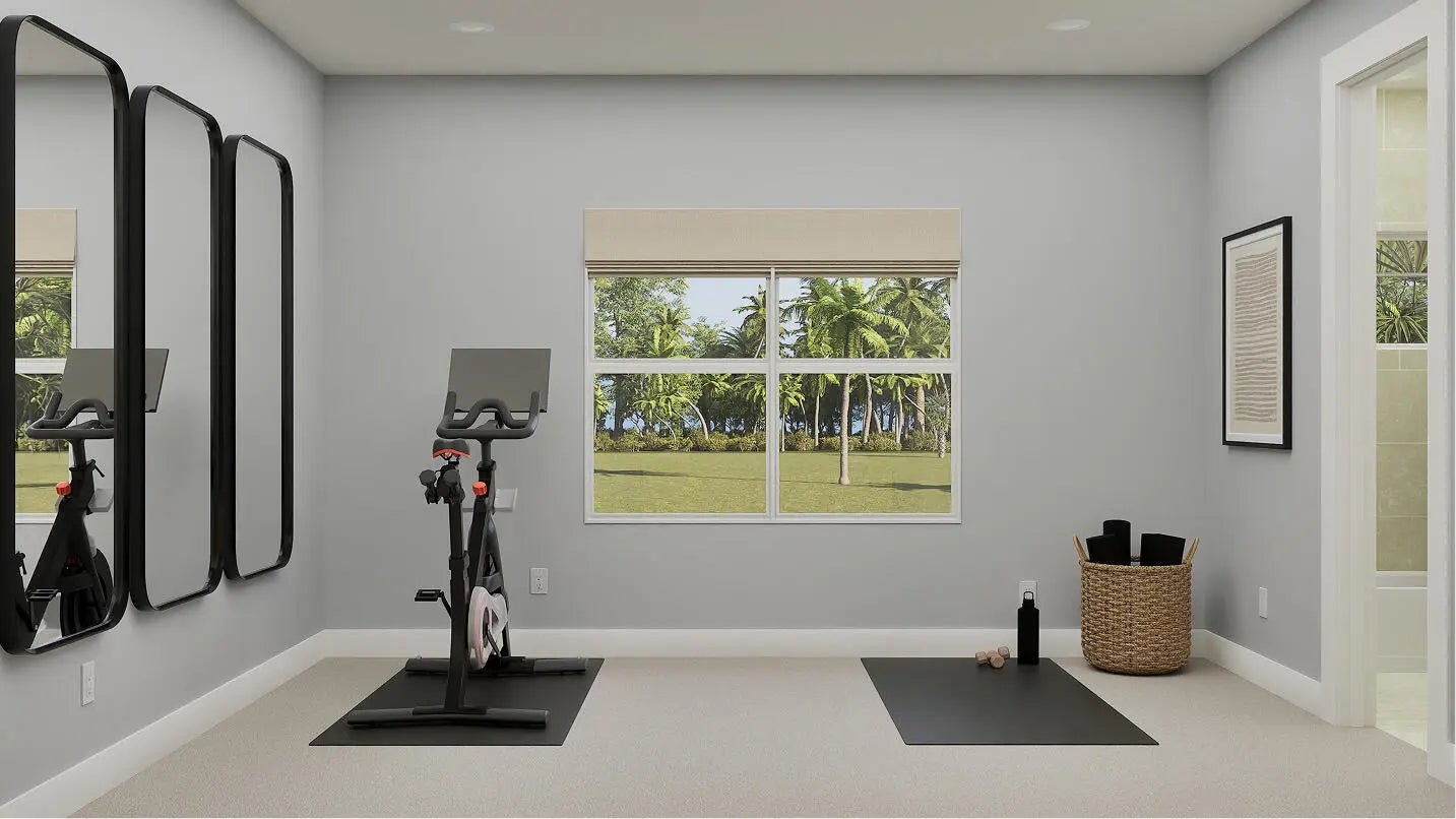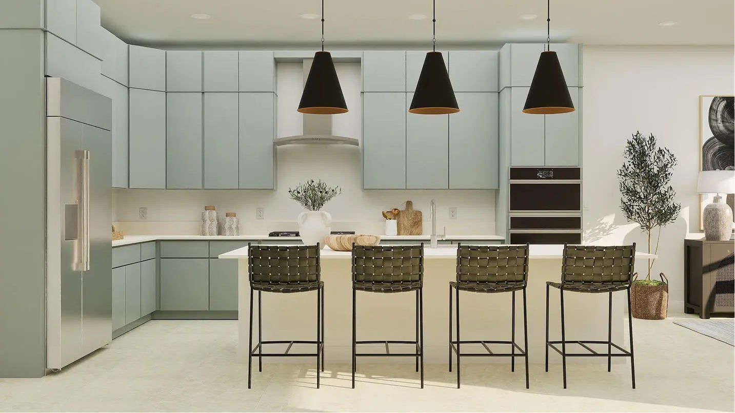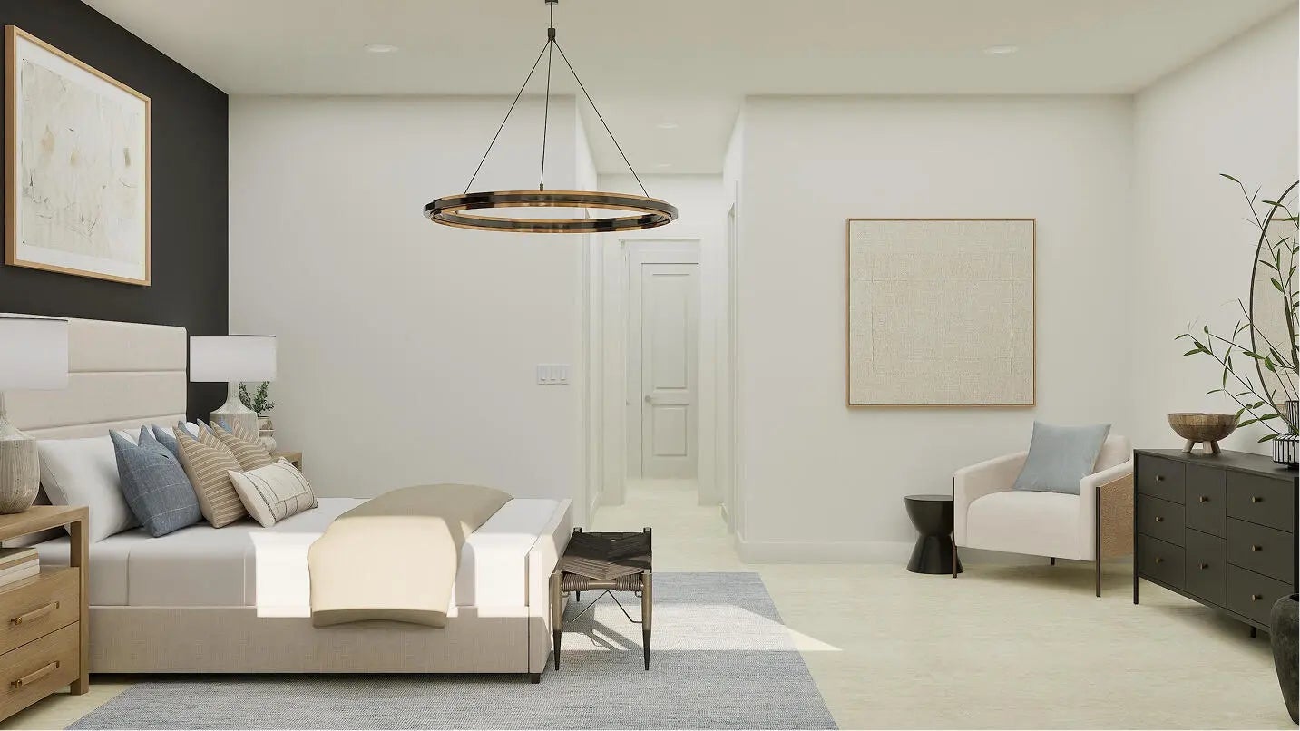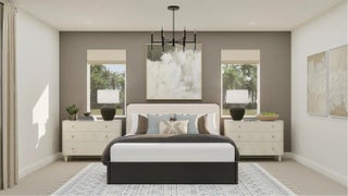 The largest plan in this collection is a sophisticated two-story home. Off the double-height foyer is a secluded flex space. Down the hallway is a free-flowing layout shared among the kitchen, dining room and a sprawling Great Room with a lanai . On the same level is a lavish owner's suite with a spa-style bathroom. Upstairs are the remaining four bedrooms, each with a private en-suite bathroom, along with a spacious media room and loft Prices, dimensions and features may vary and are subject to change. Photos are for illustrative purposes only.